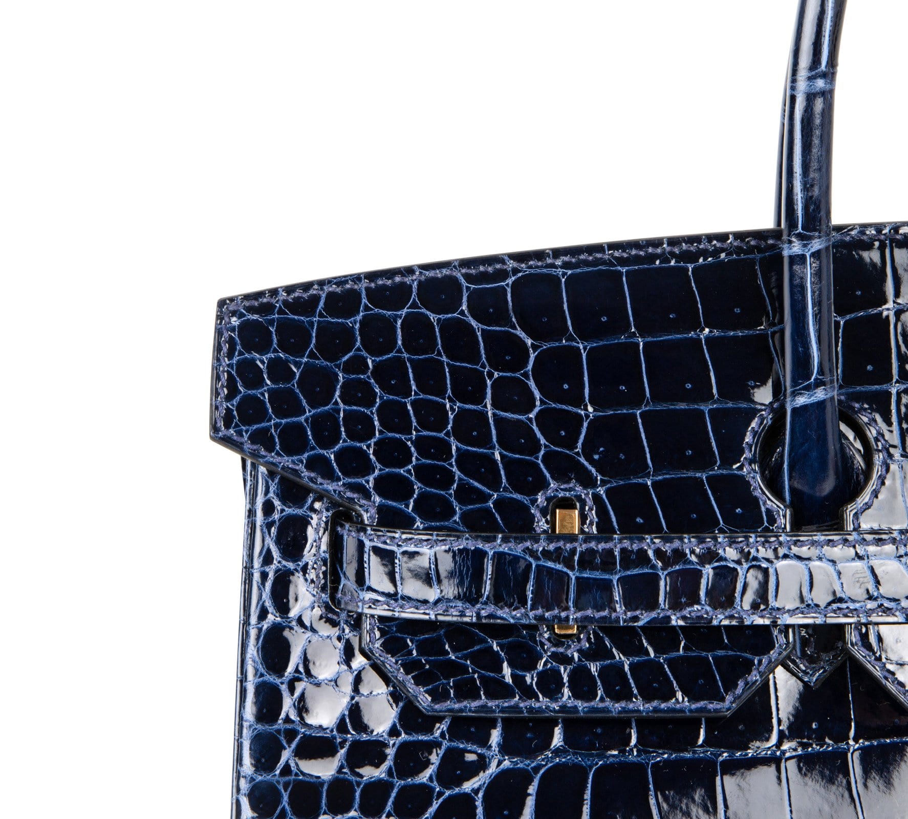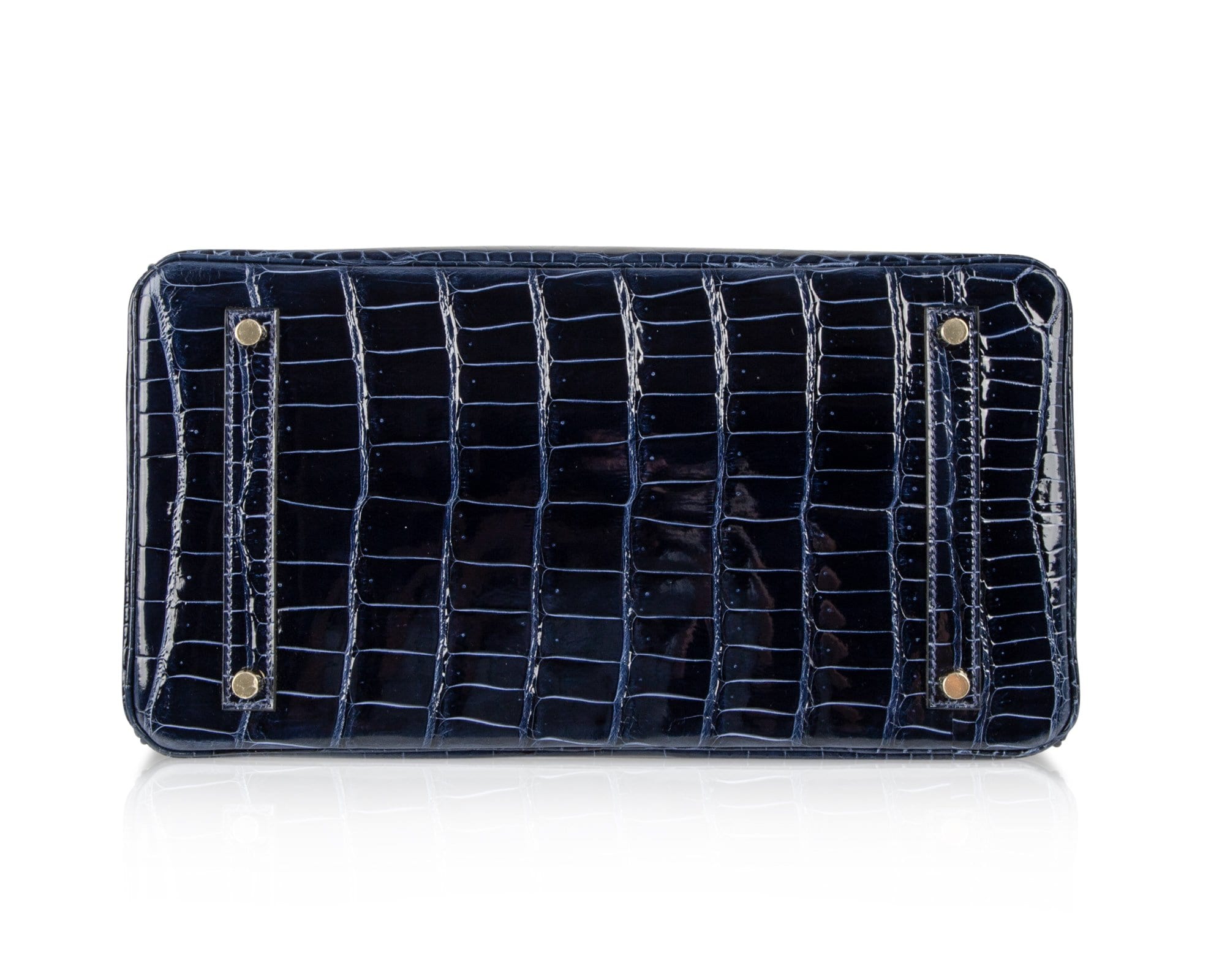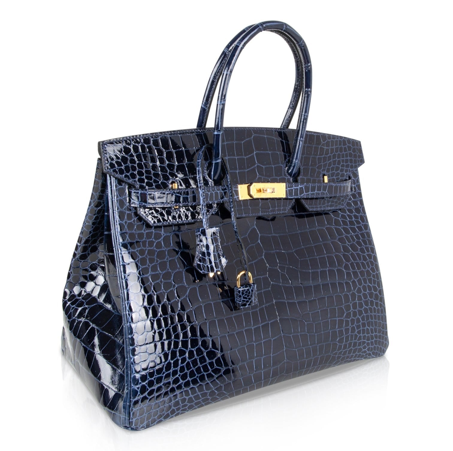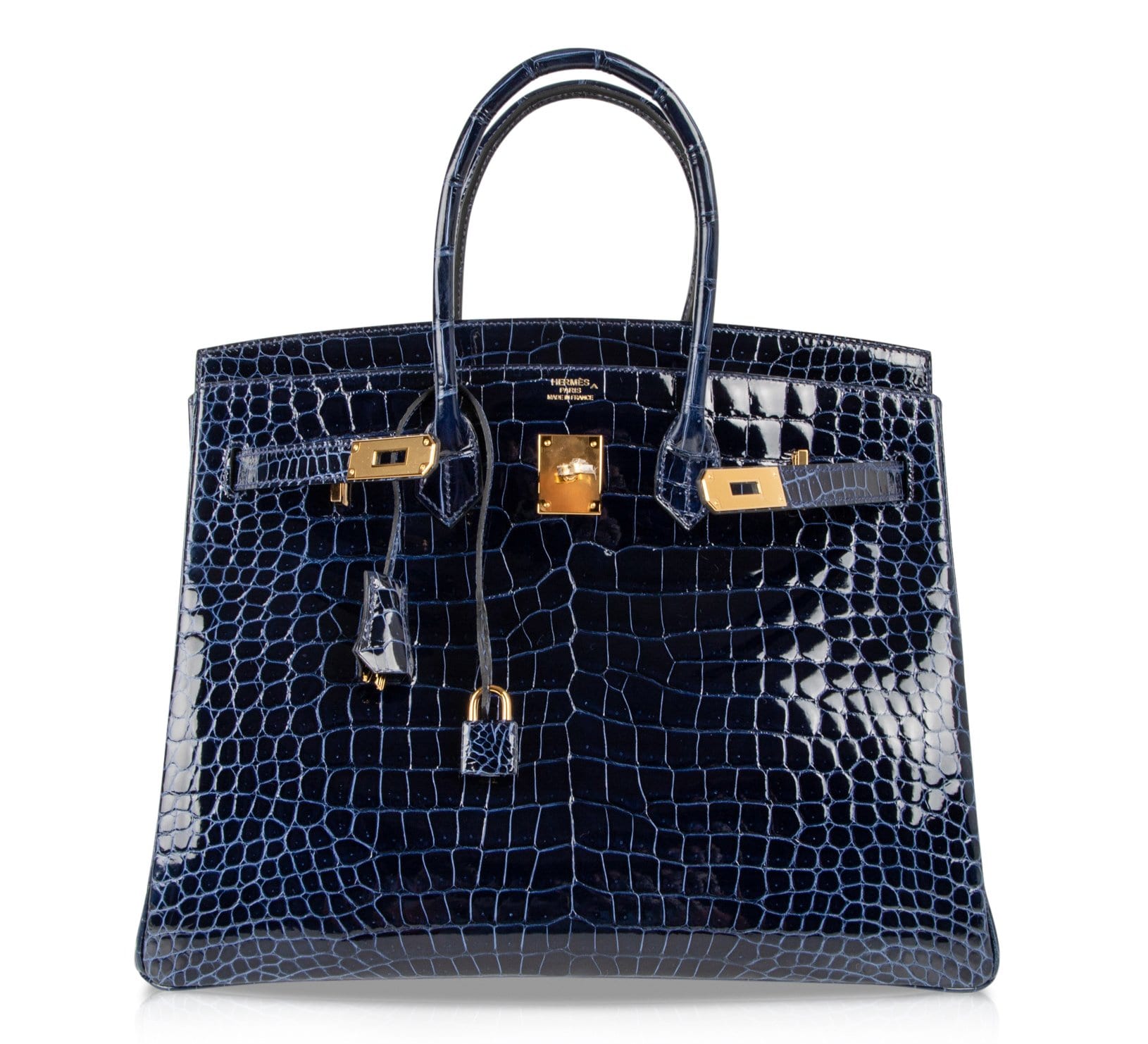 Hermes Birkin 35 Bag Blue Sapphire Porosus Crocodile Gold Hardware New