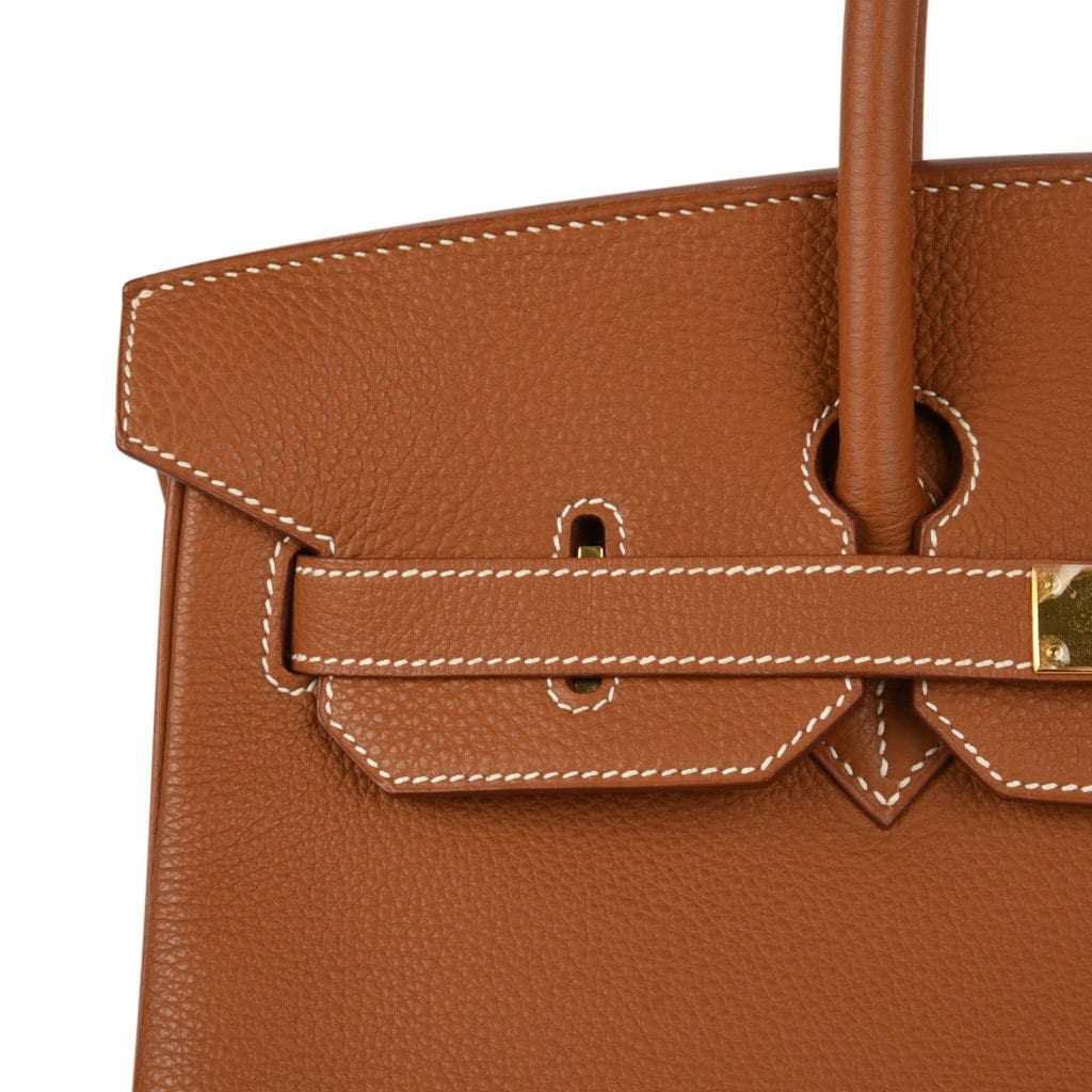 Hermes leather in iconic gold Togo is soft and scratch resistant.