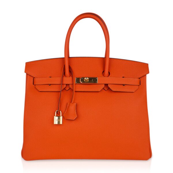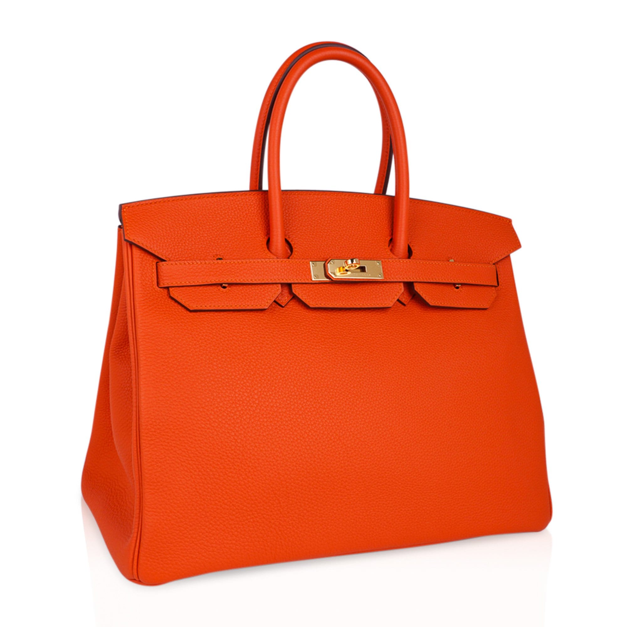 Guaranteed authentic Hermes Birkin 35 bag featured in Feu Orange – a fresh take on the the iconic classic.