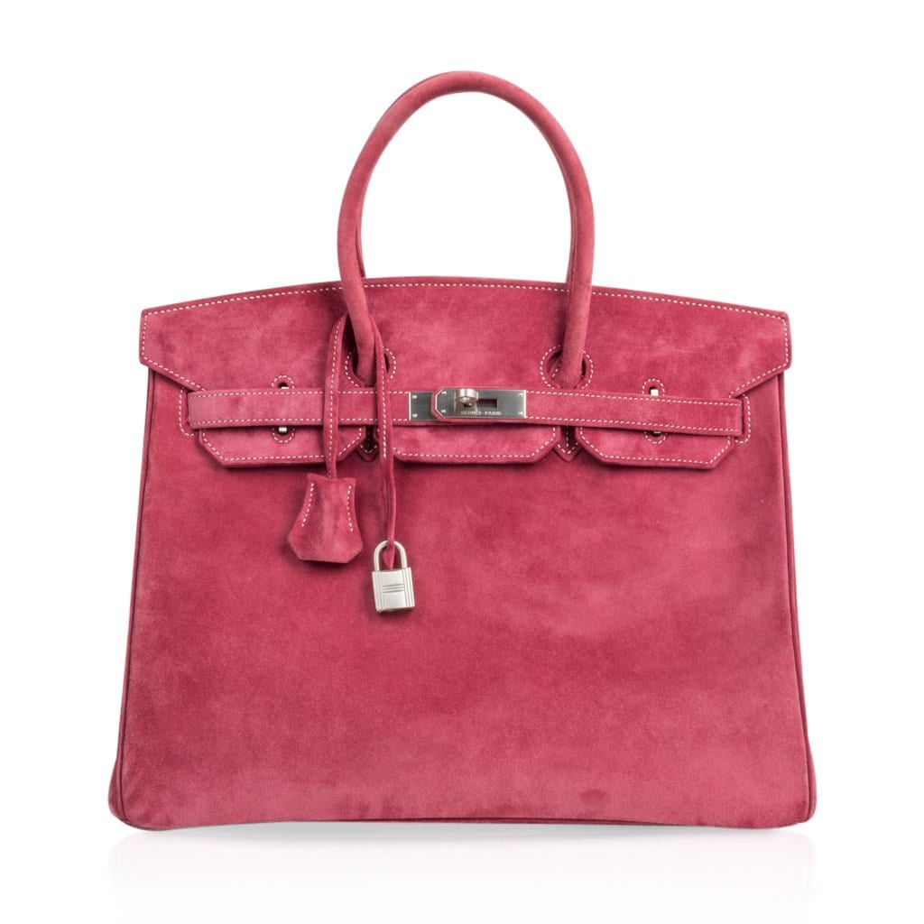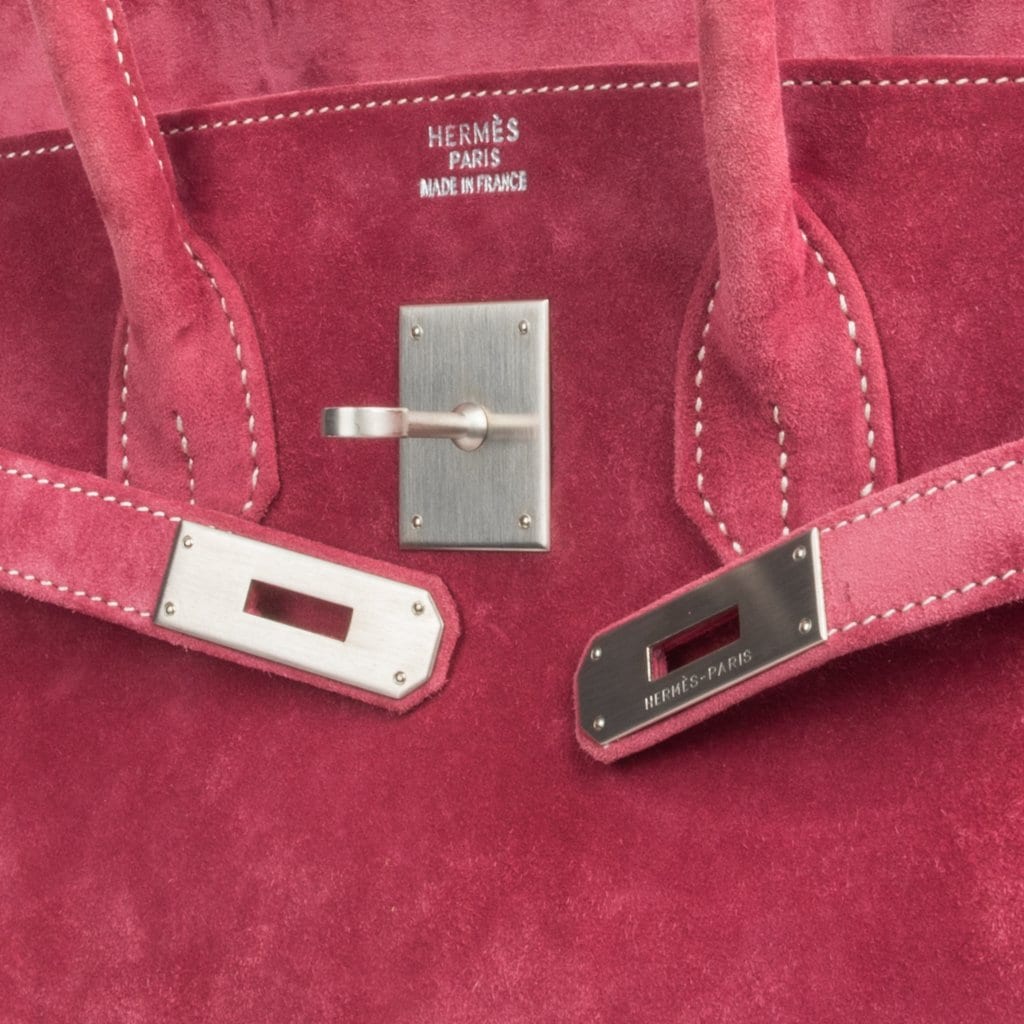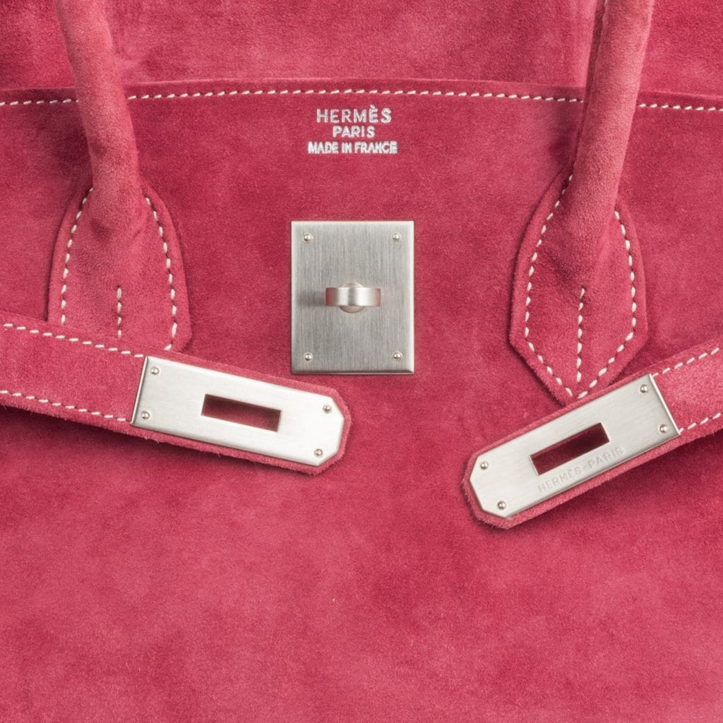 Guaranteed authentic Hermes Birkin 35 bag features rare limited edition Fuchsia Doblis.