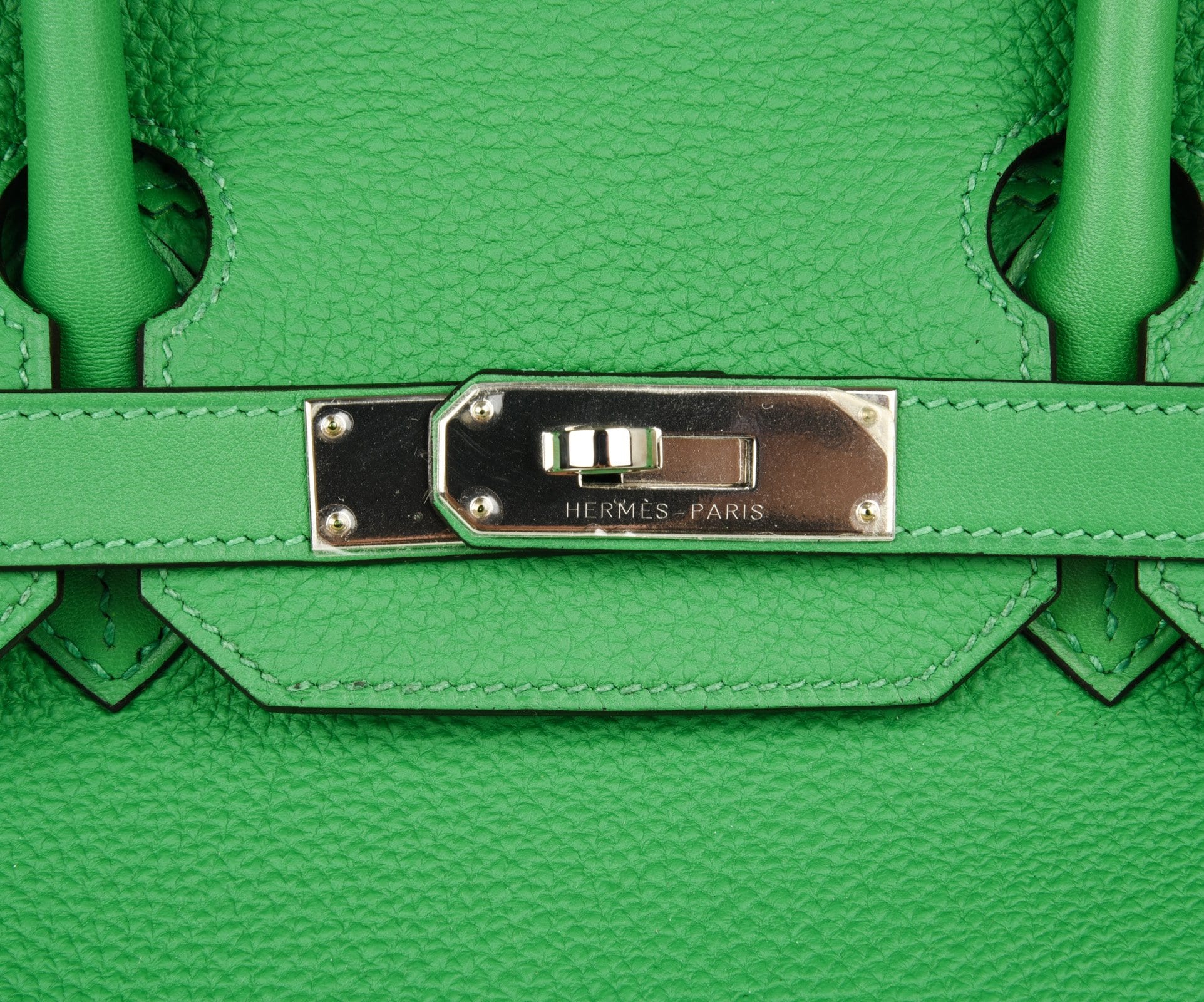 A rare Bamboo green Birkin bag to add to your Hermes handbag collection.