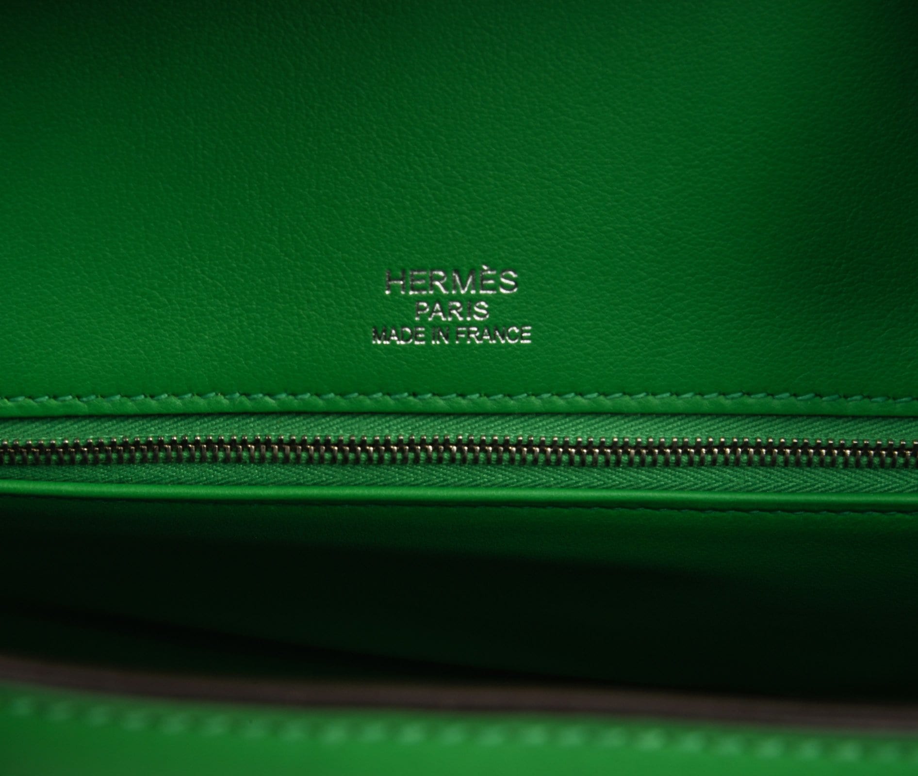 Features Togo and Swift Hermes leather with palladium handbag hardware.