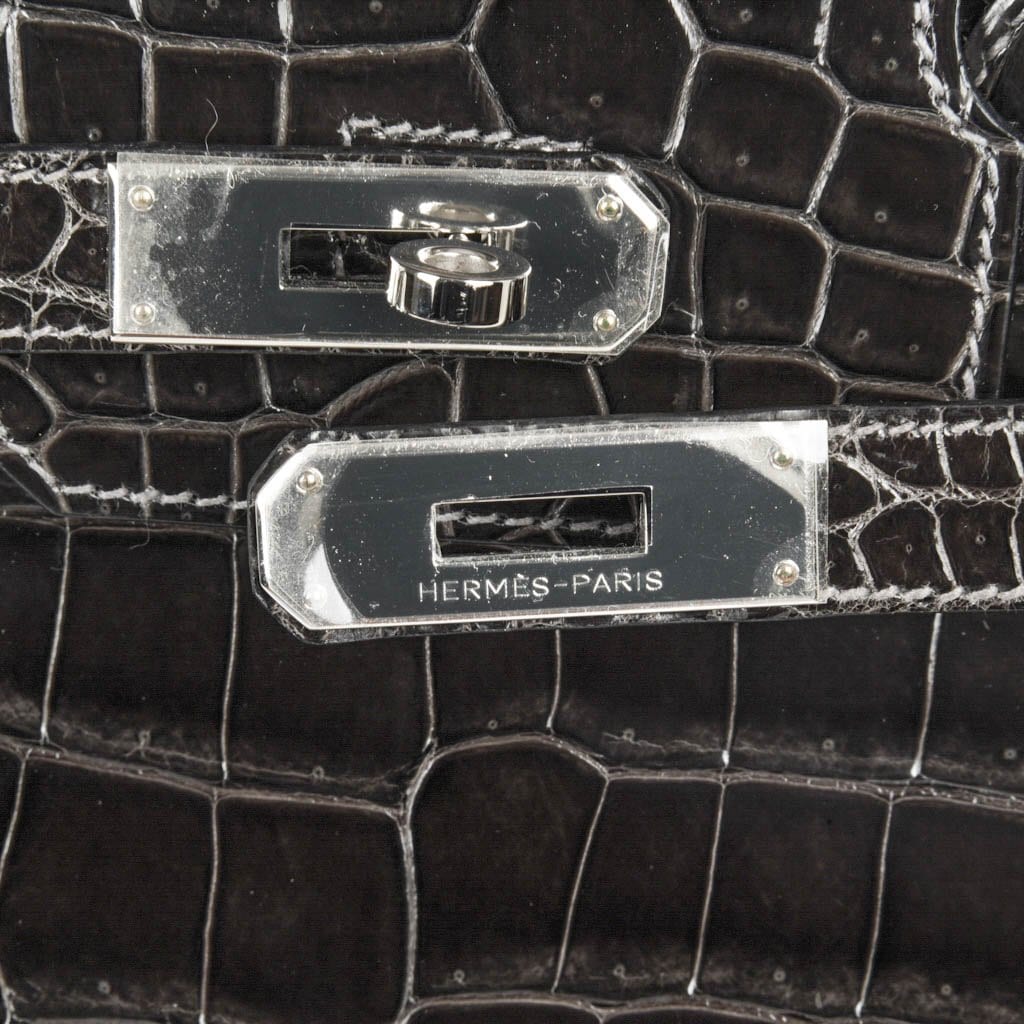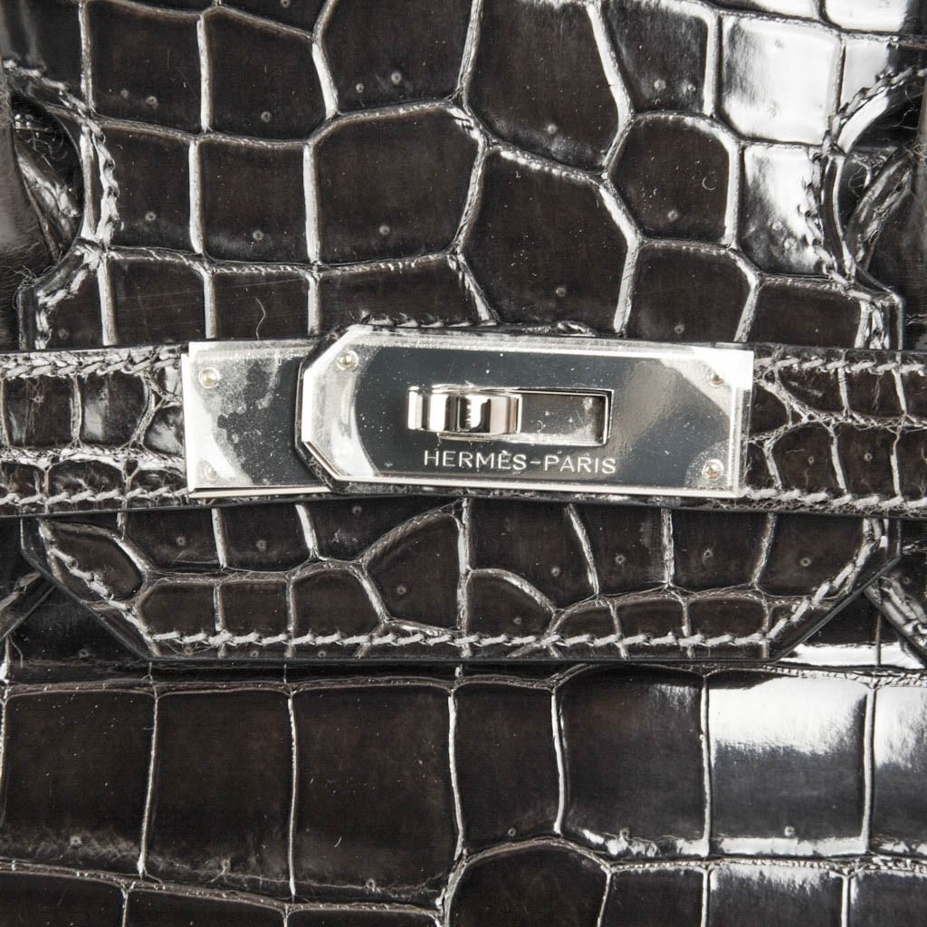Hermes Birkin 35 Bag Graphite Gray Porosus Crocodile Palladium Pure Chic