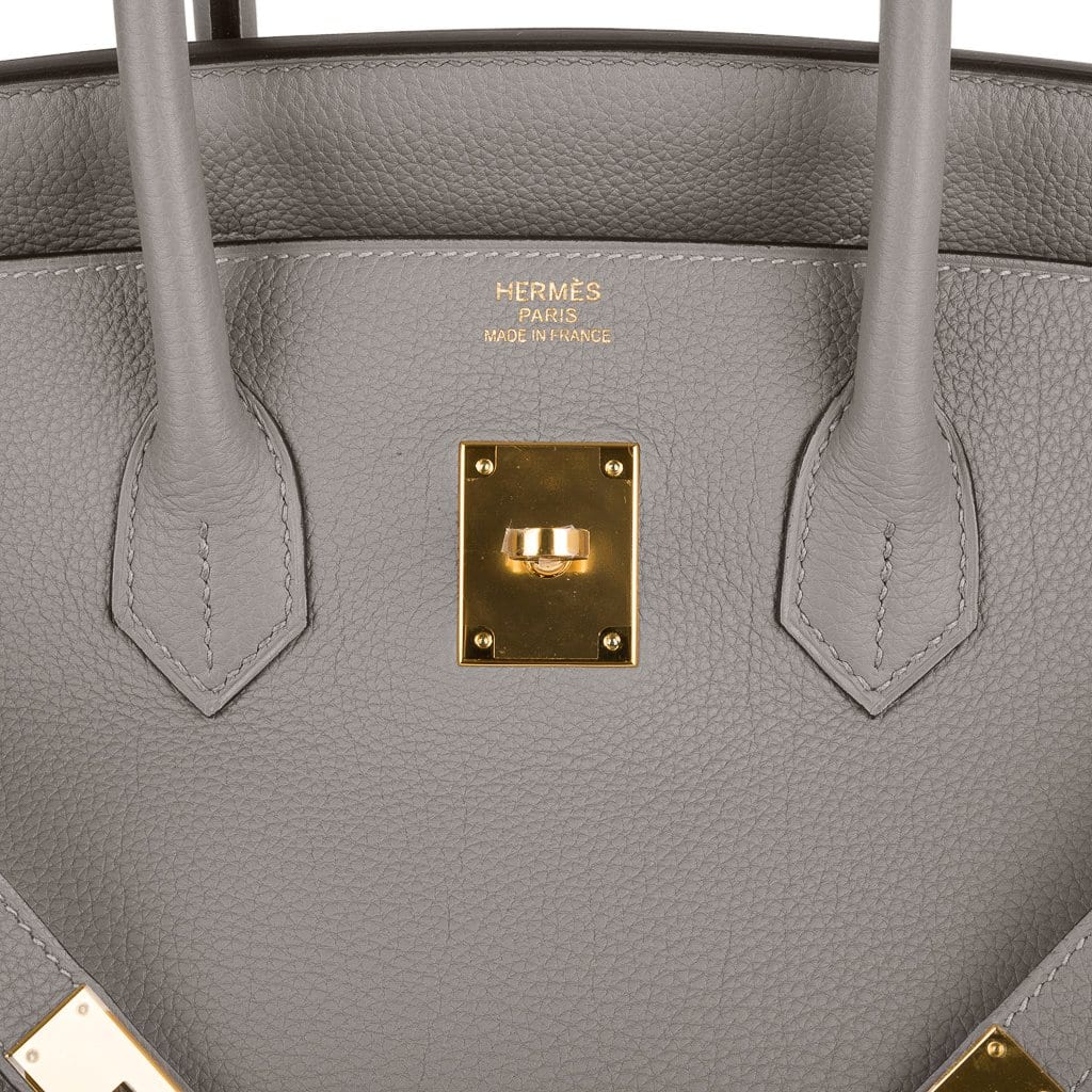 This gray Birkin bag is a classic addition to any Hermes handbag collection.
