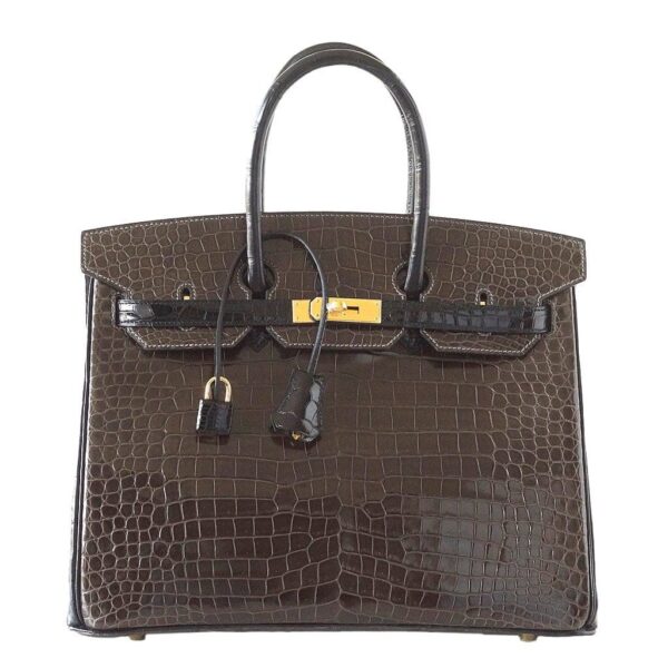 Be the first to review “Hermes Birkin 35 Bag HSS Porosus Crocodile Gris Elephant / Black Gold Hdw”