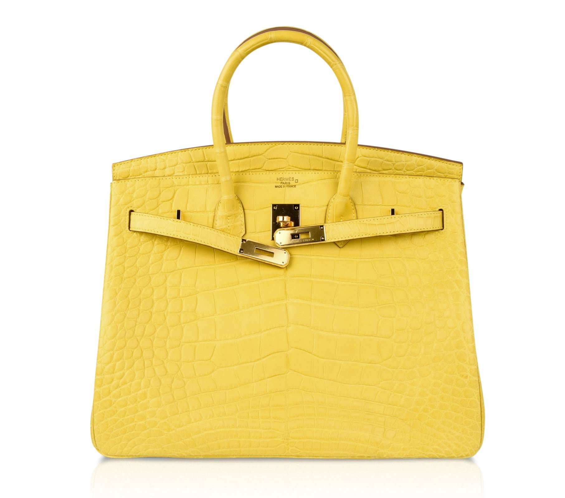 Guaranteed authentic divine Hermes Birkin 35cm Mimosa in matte Alligator.