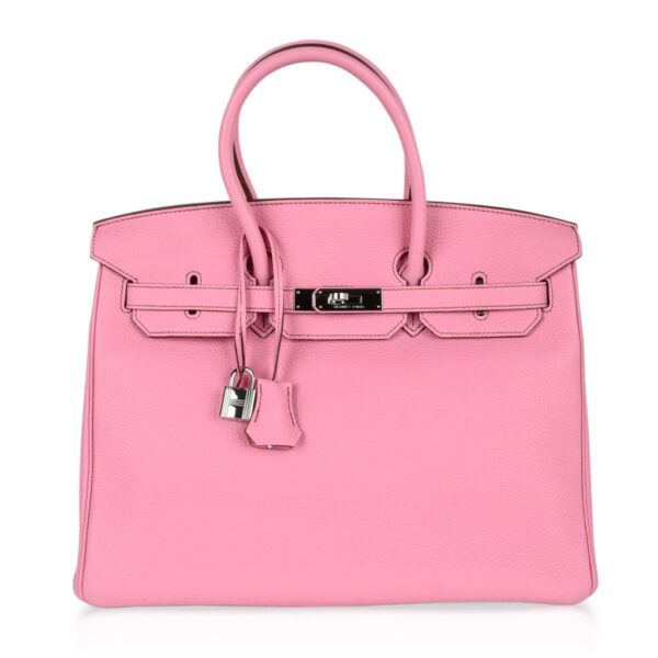 Guaranteed authentic Hermes Birkin 35 bag features the coveted and very rare 5P Pink.