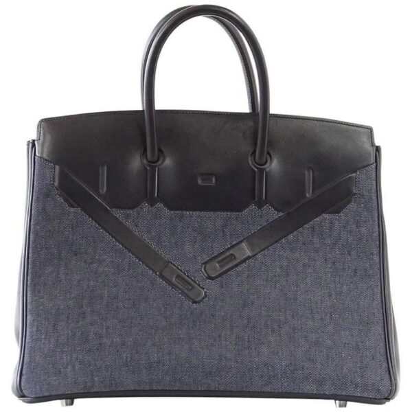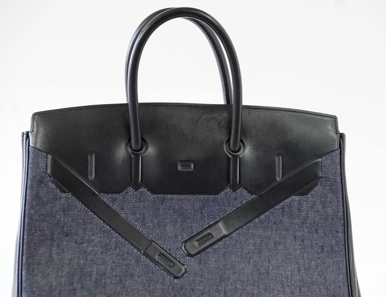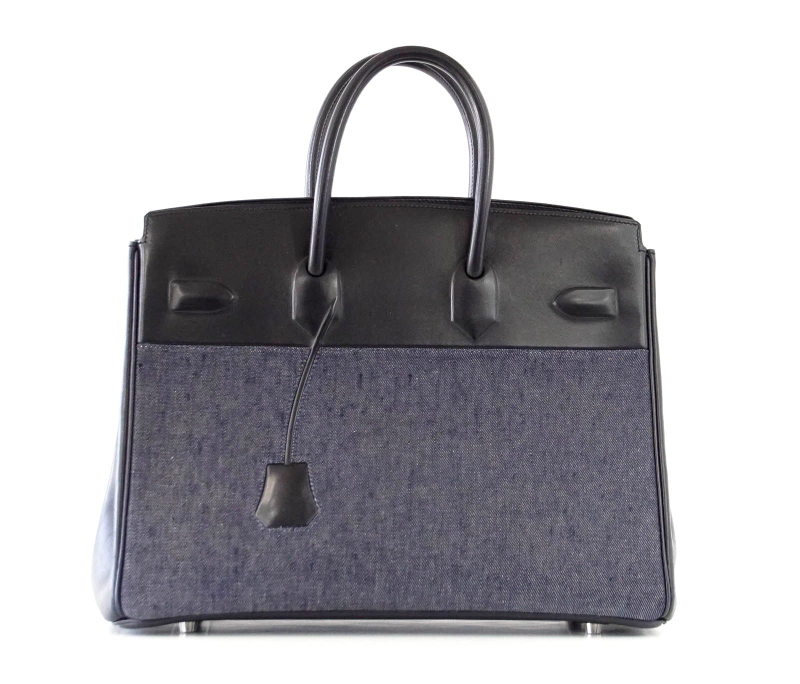 Guaranteed authentic very rare limited edition Shadow Denim Hermes Birkin 35cm bag.