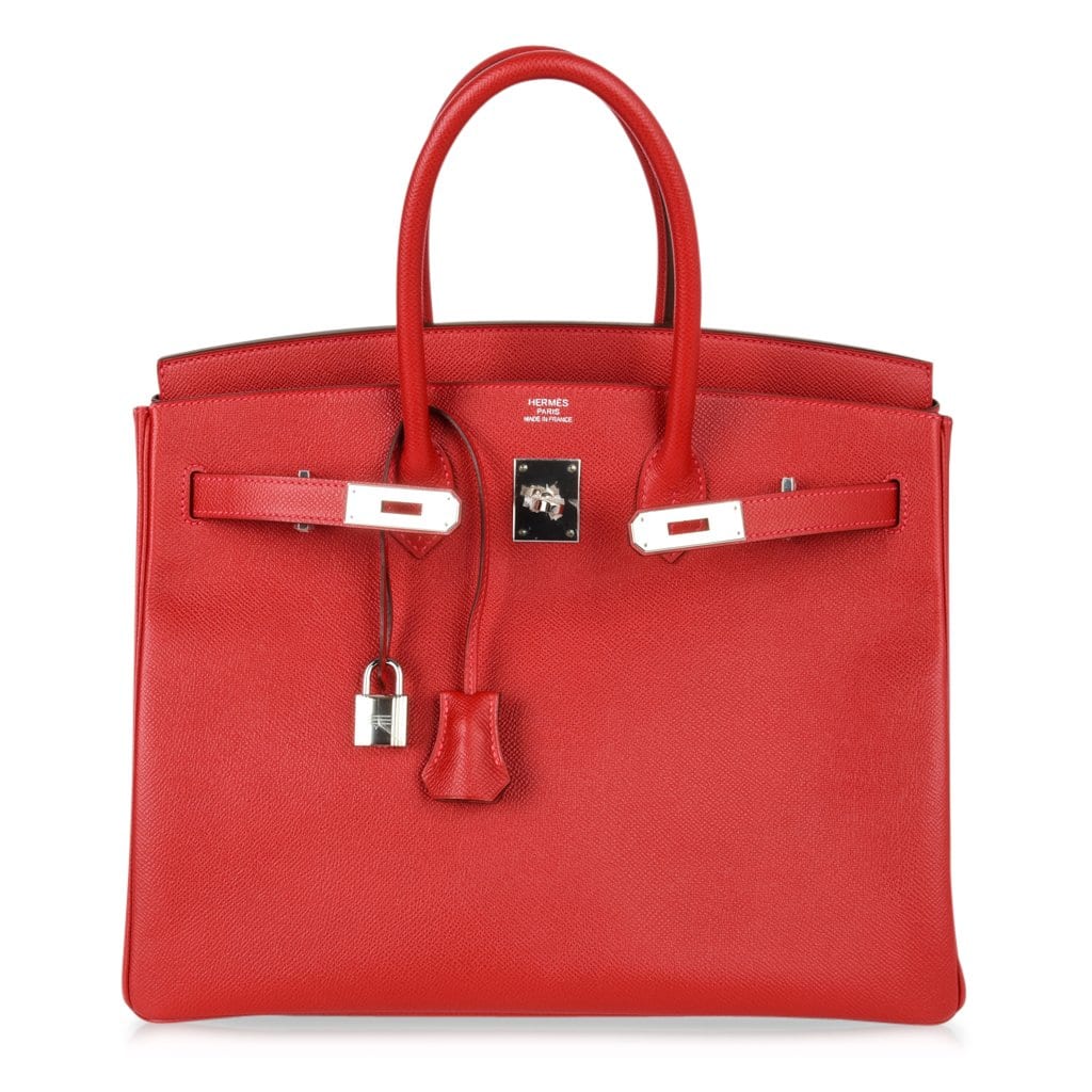 Guaranteed authentic Hermes Birkin 35 bag features Rouge Casaque.
