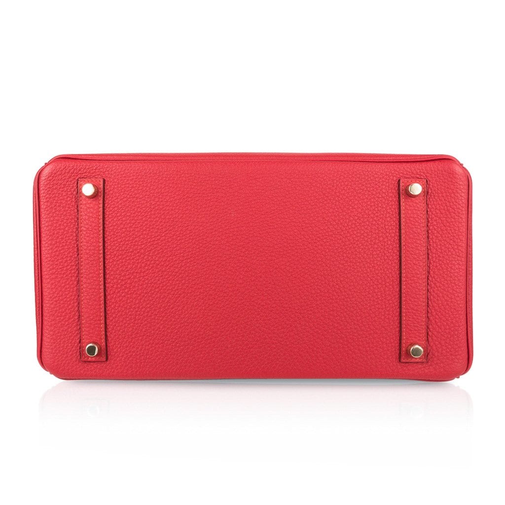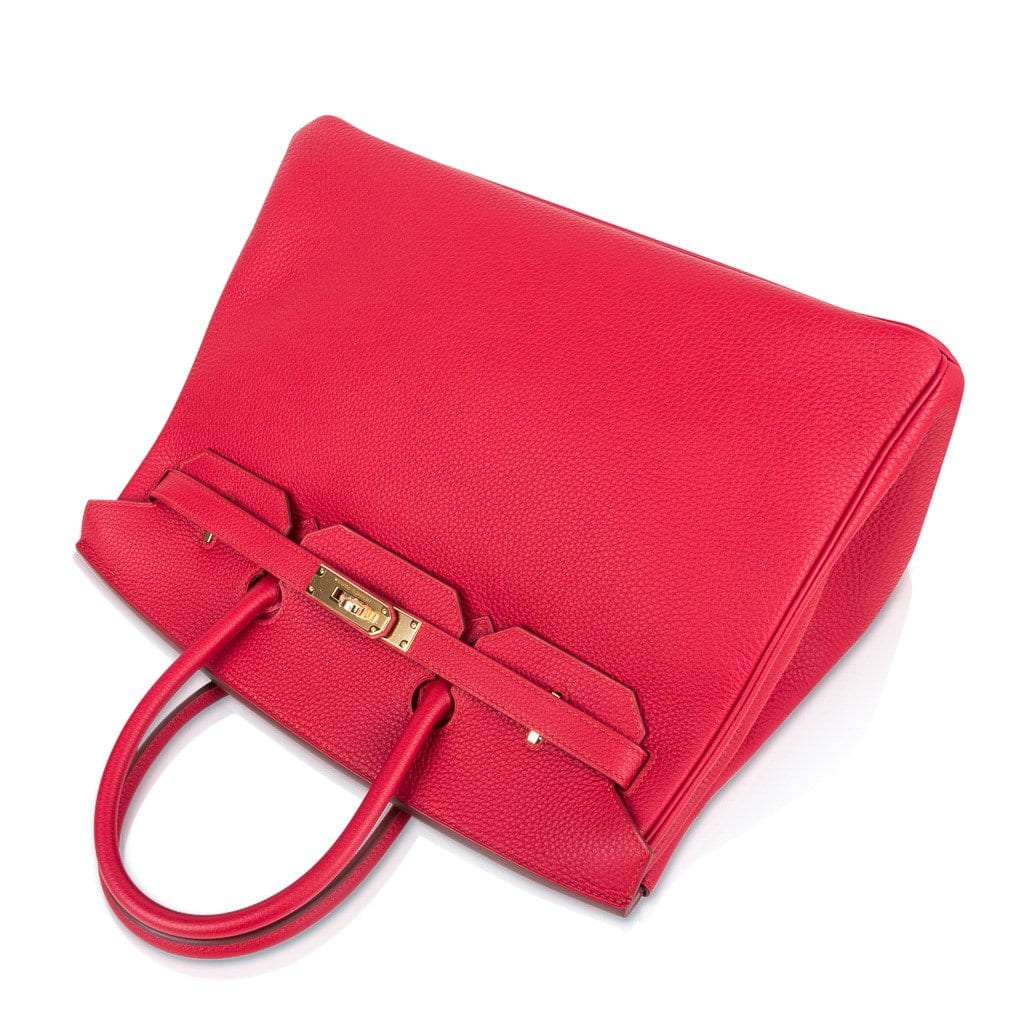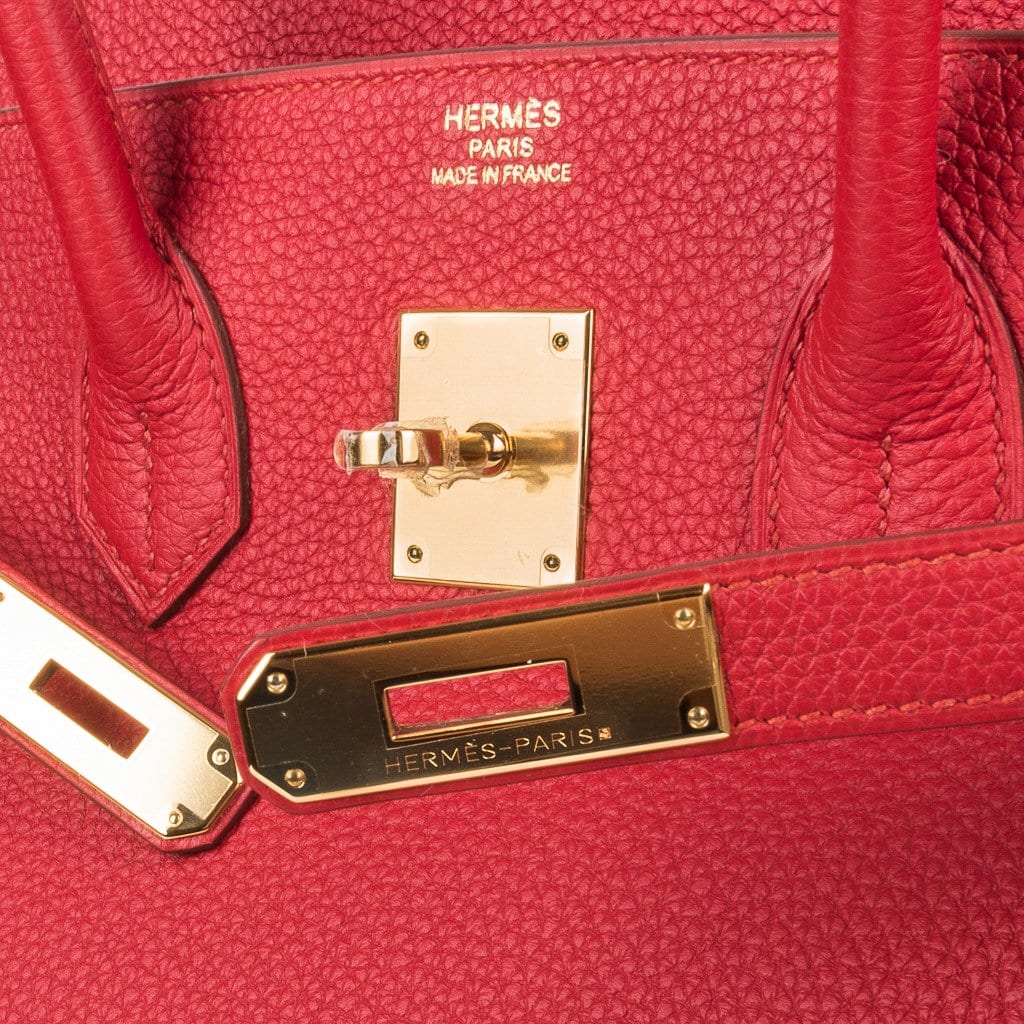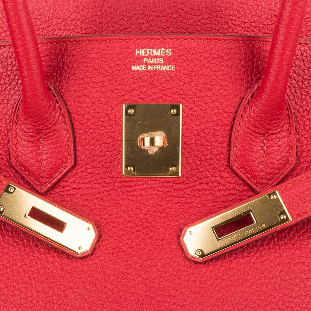 Guaranteed authentic Hermes Birkin 35 bag features Vermillion Red in togo leather.