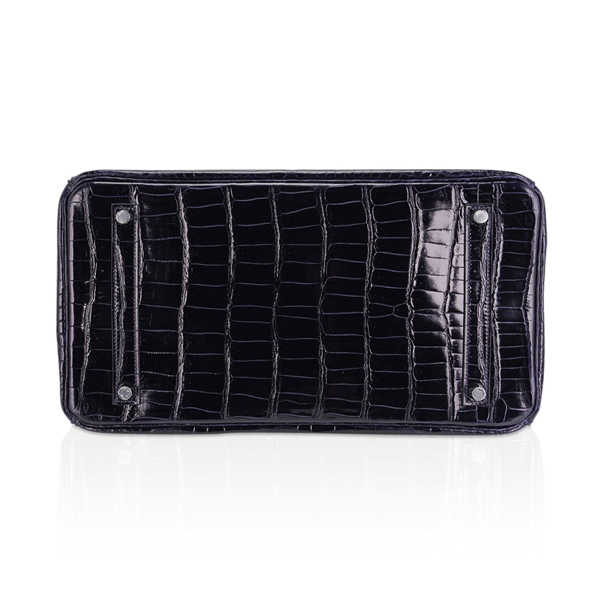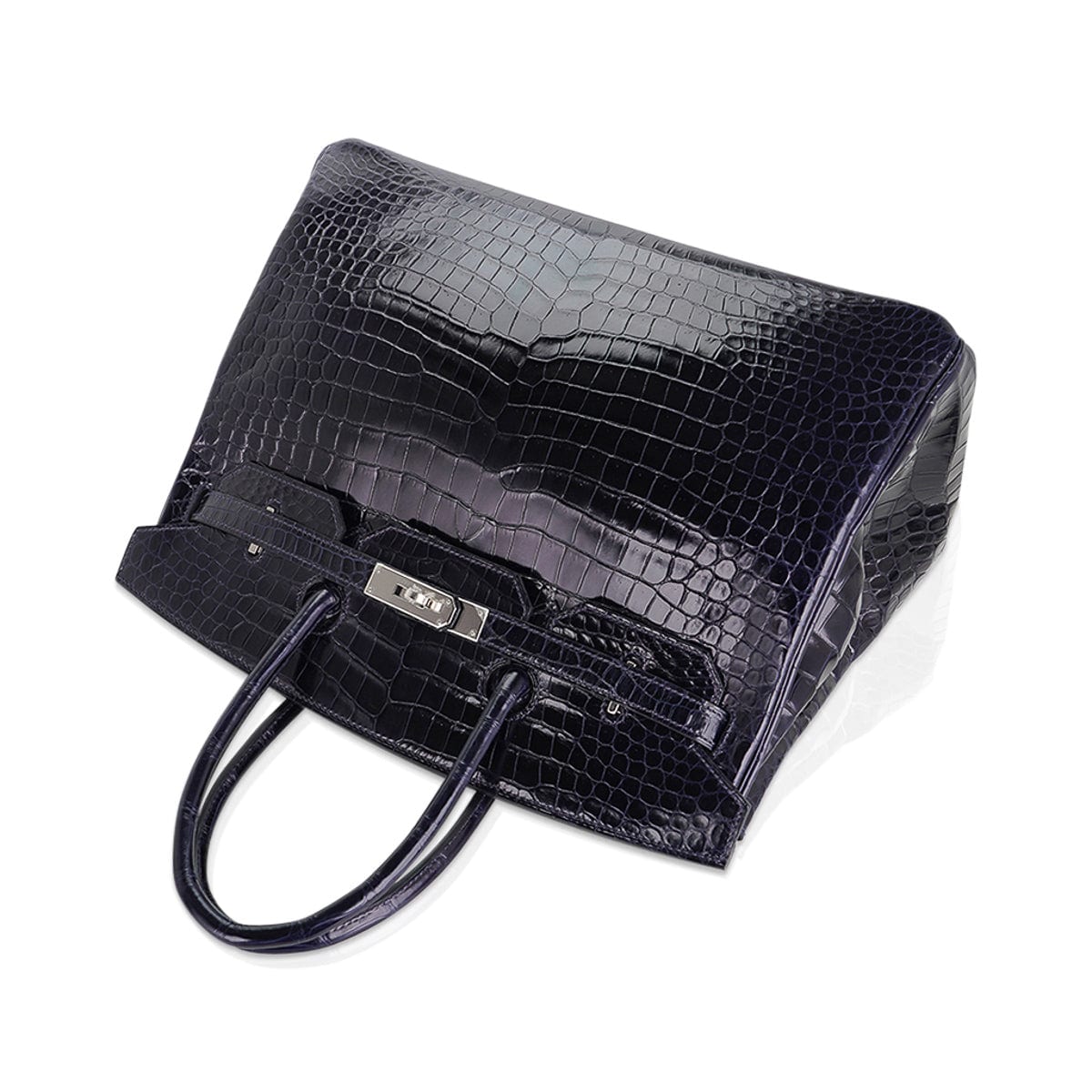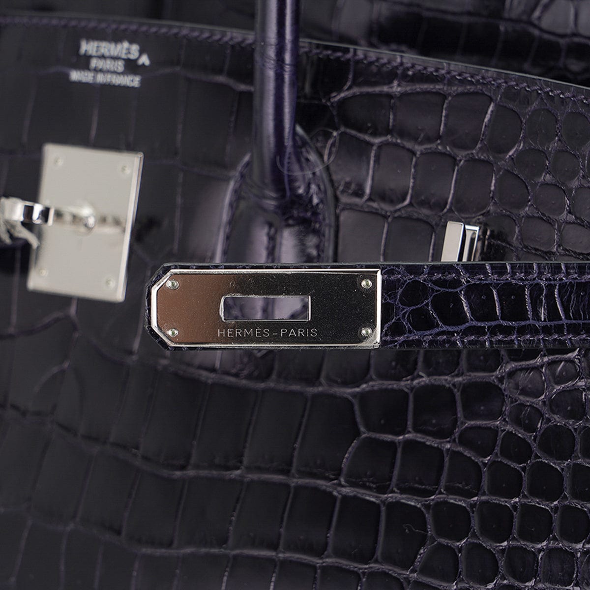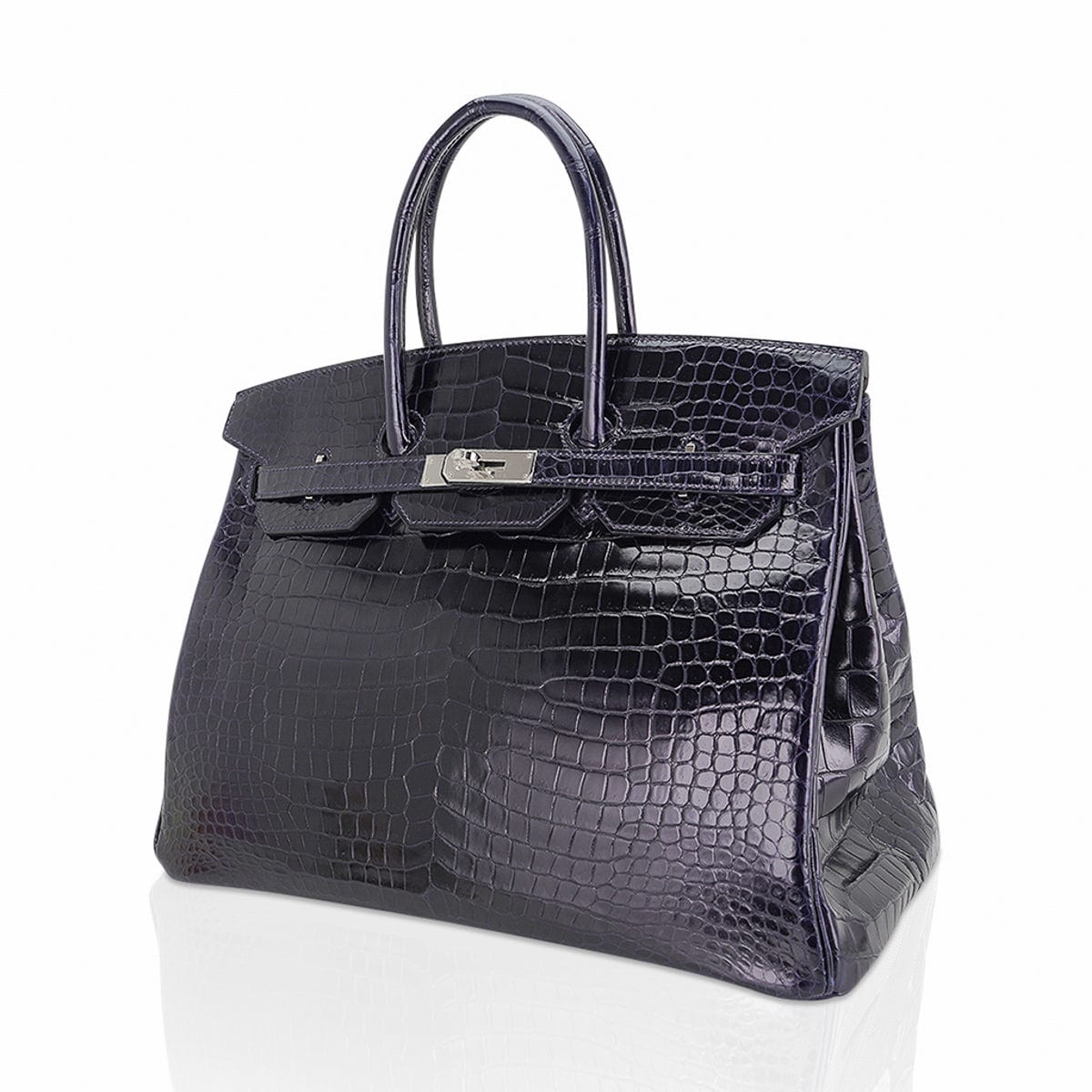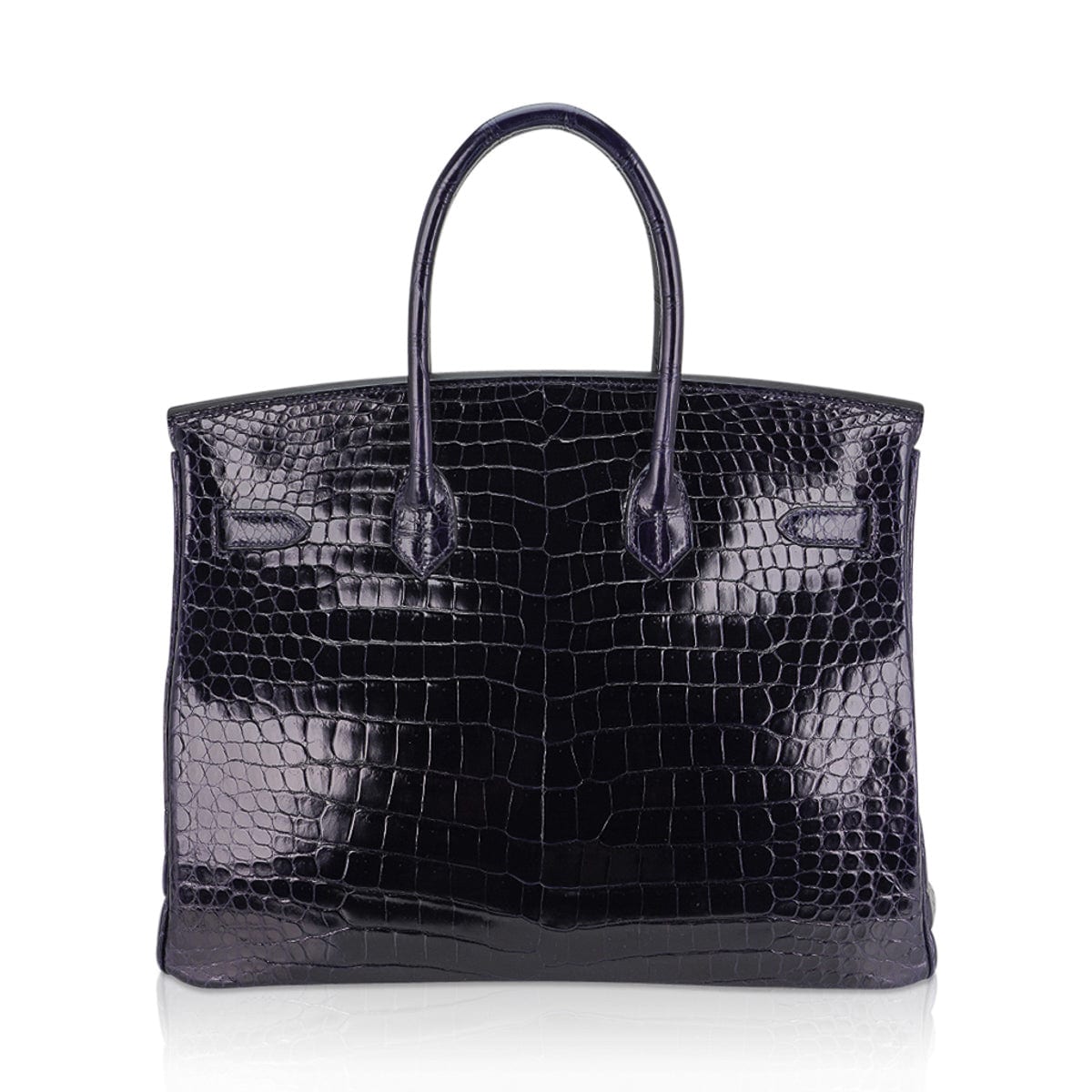 Guaranteed authentic Hermes Birkin 35 bag featured in rich dark Blue Marine Porosus Crocodile.