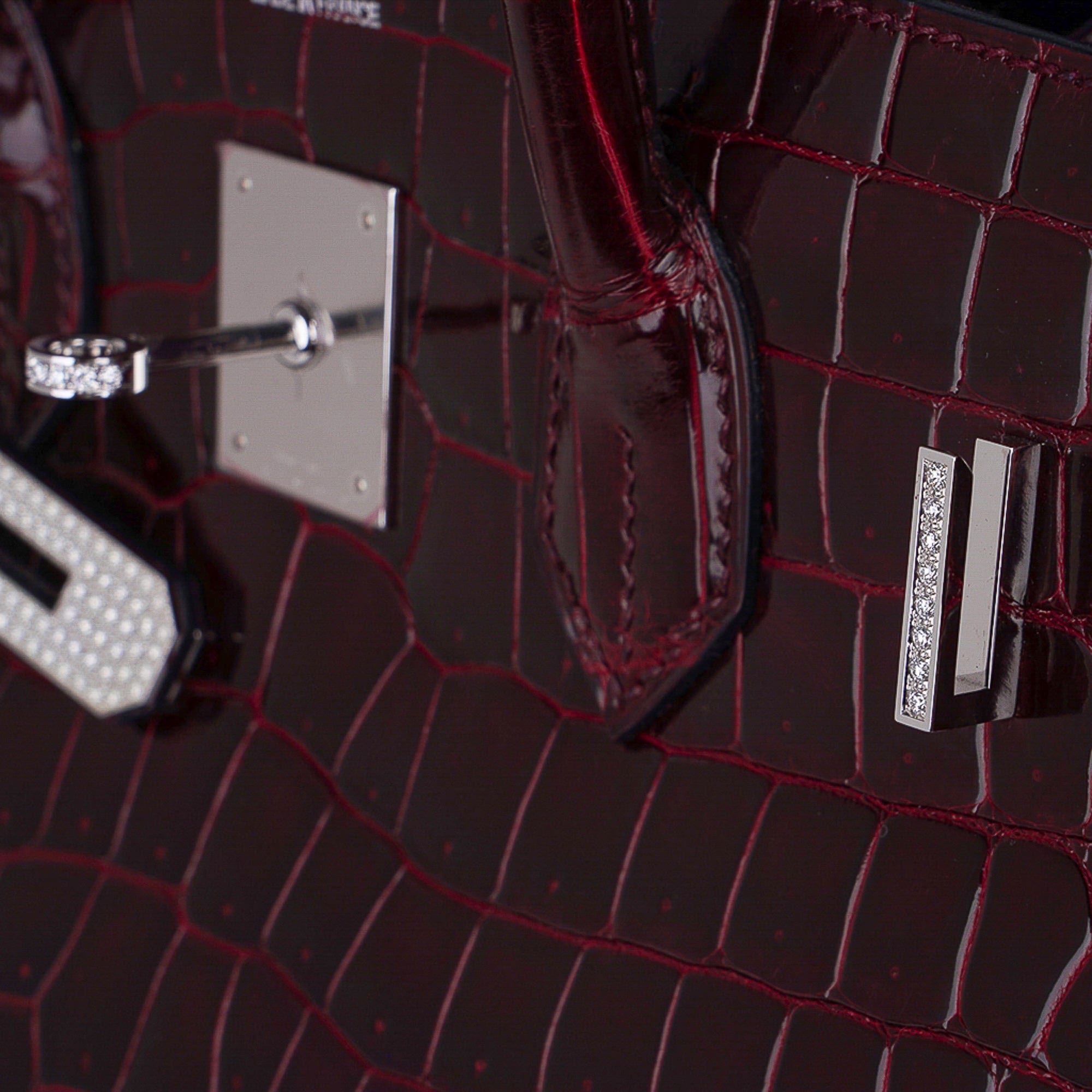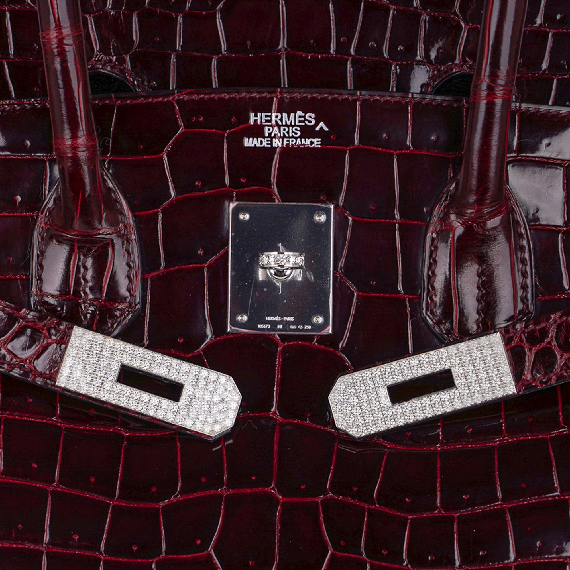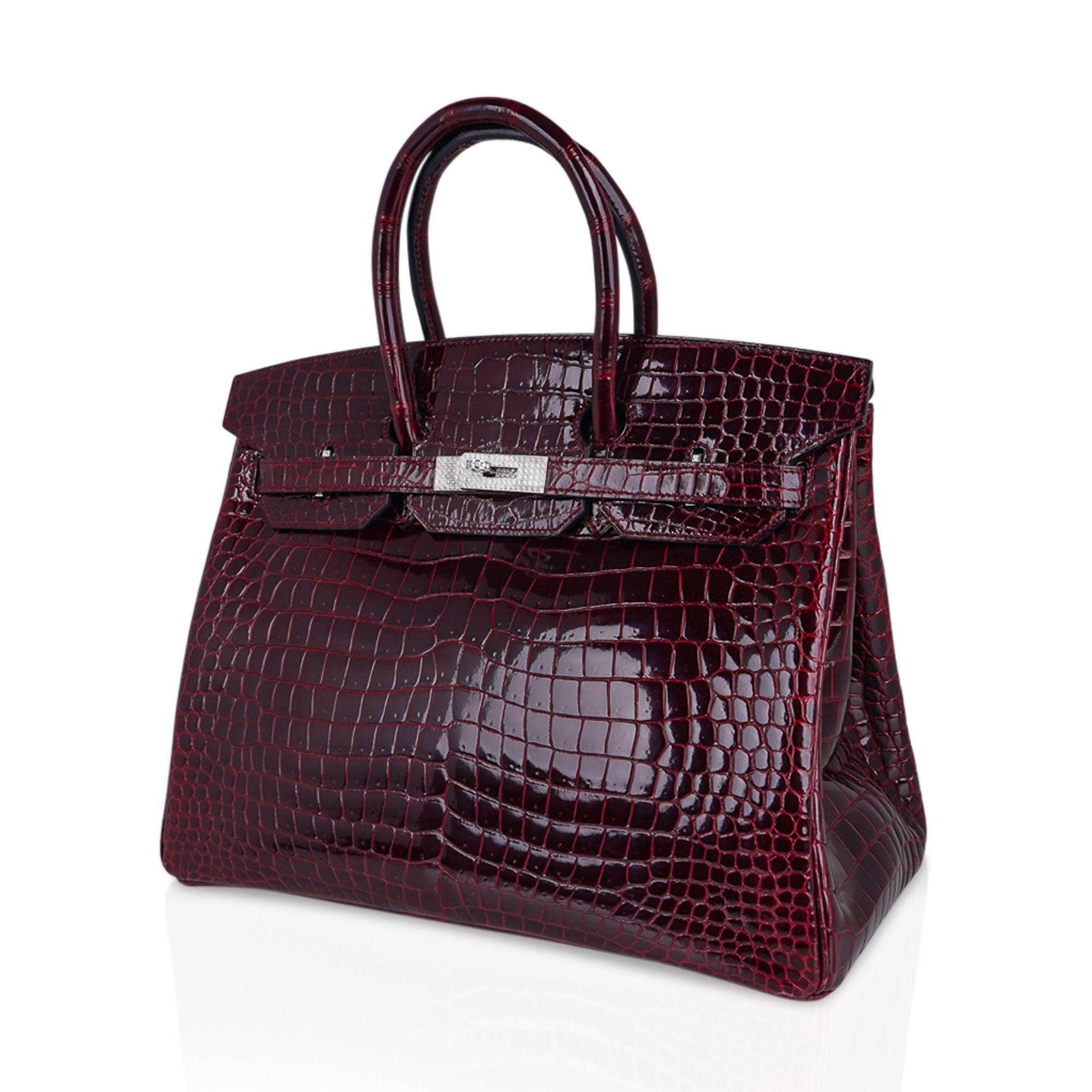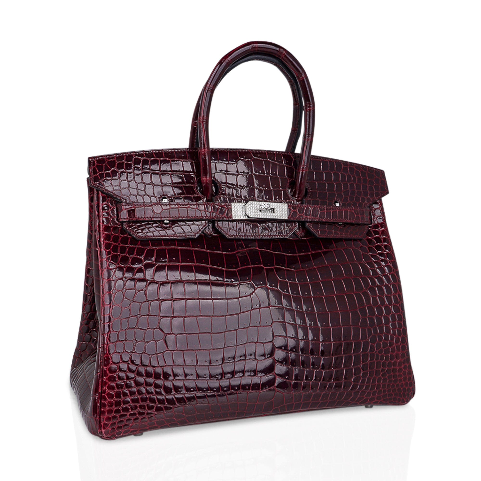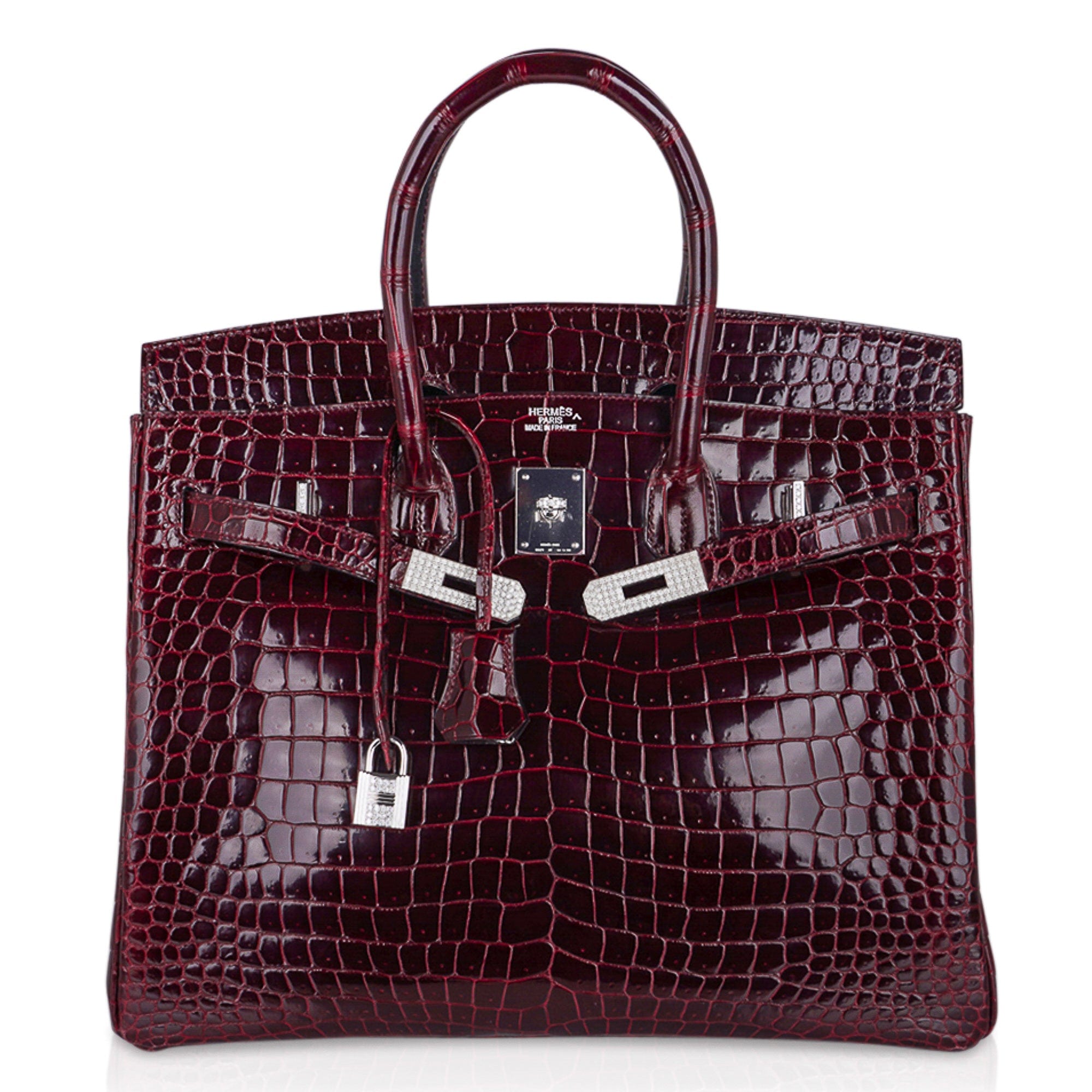 Hermes Birkin 35 Diamond Bordeaux Porosus Crocodile Bag White Gold Hardware