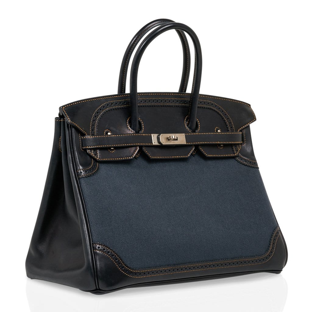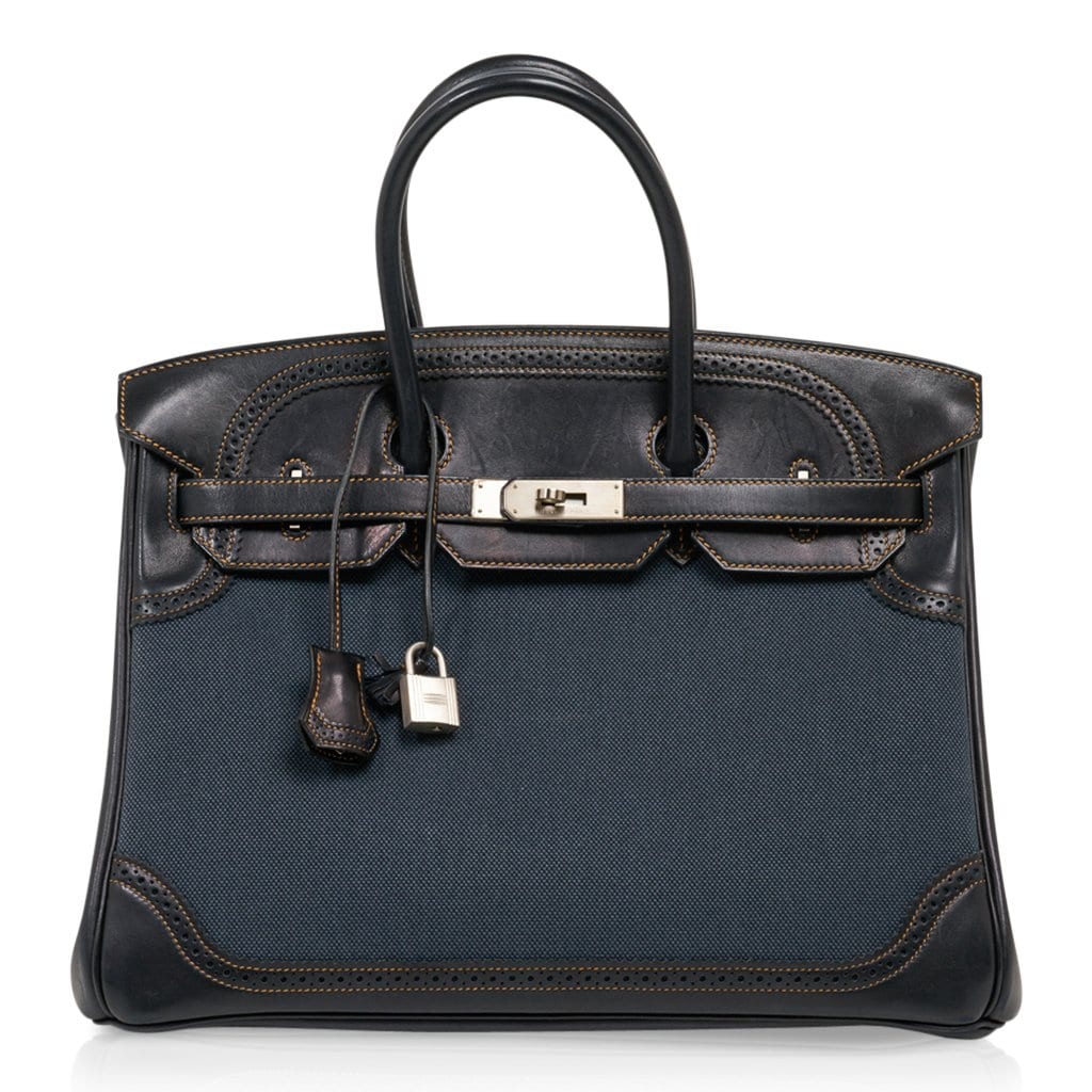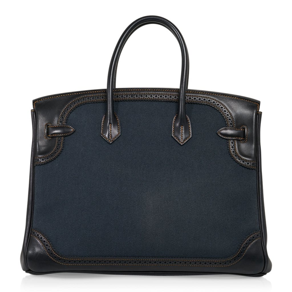 Guaranteed authentic Limited Edition Hermes Birkin 35 Denim Ghillies bag.