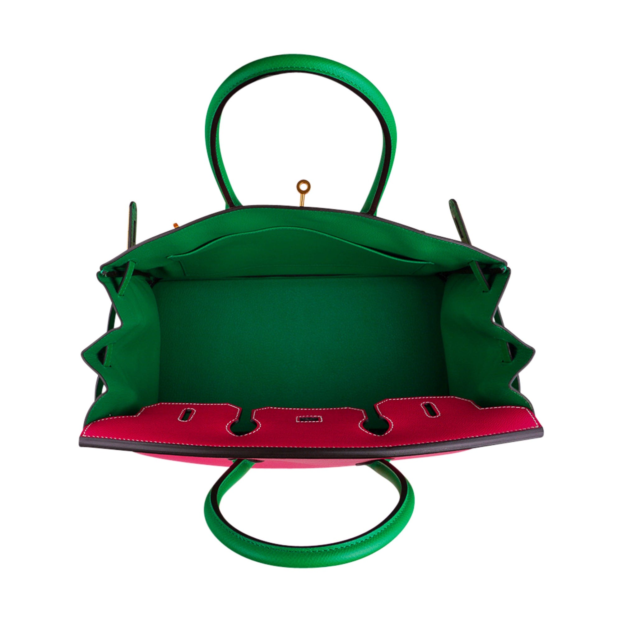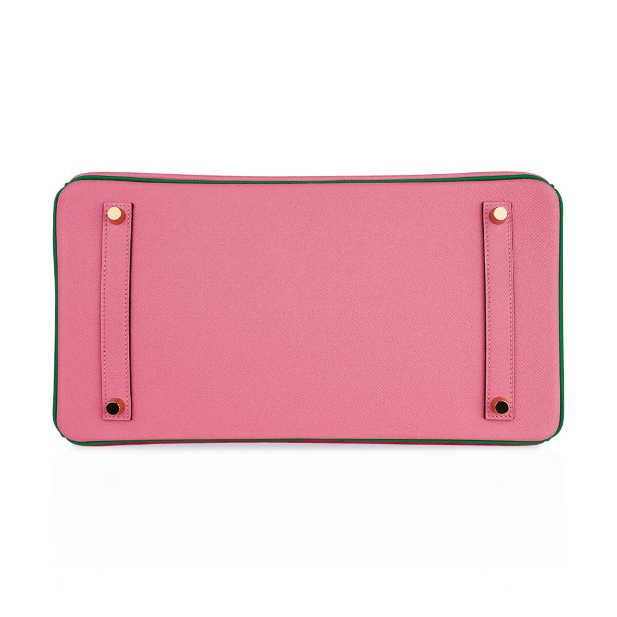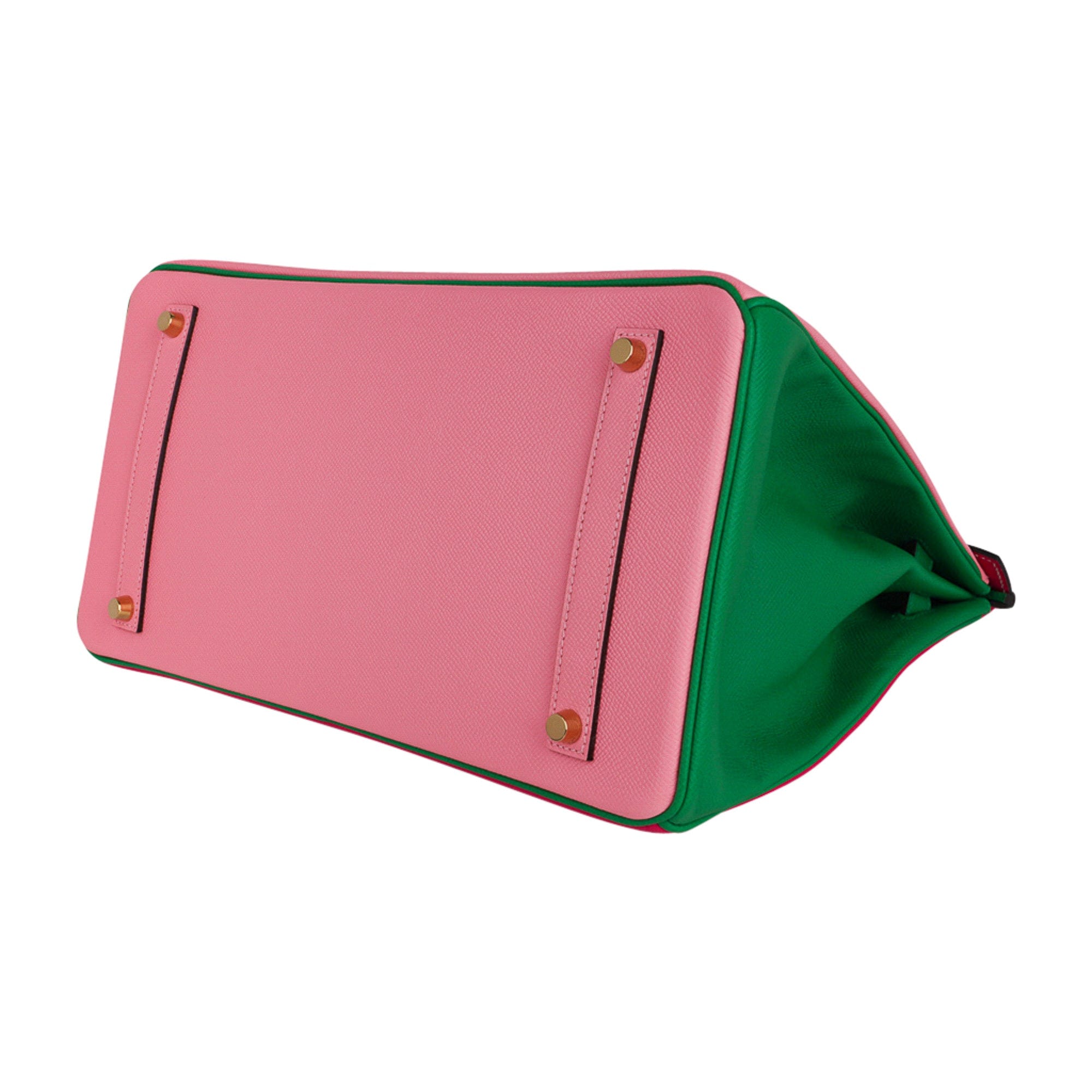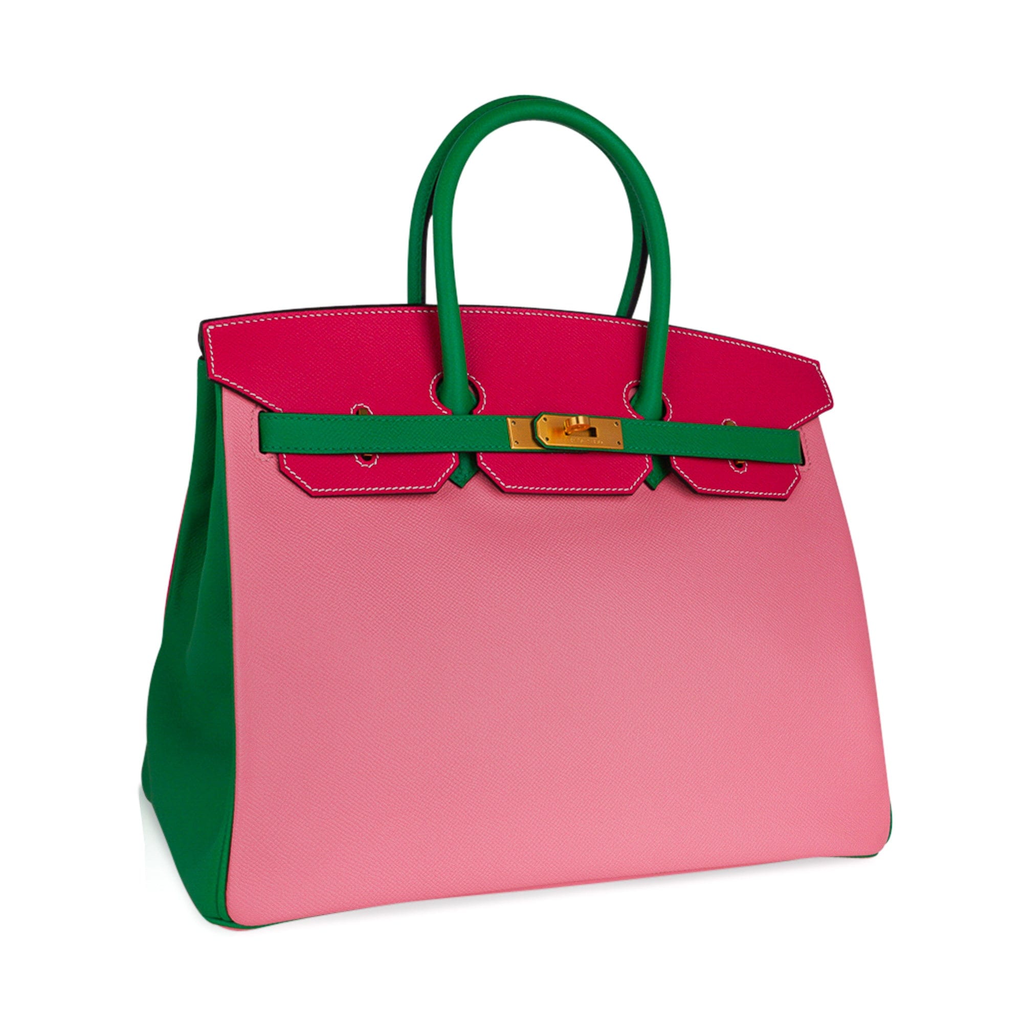 This special order Birkin bag is a beautiful combination of Rose Confetti, Rose Tyrien and Bamboo in Epsom leather.