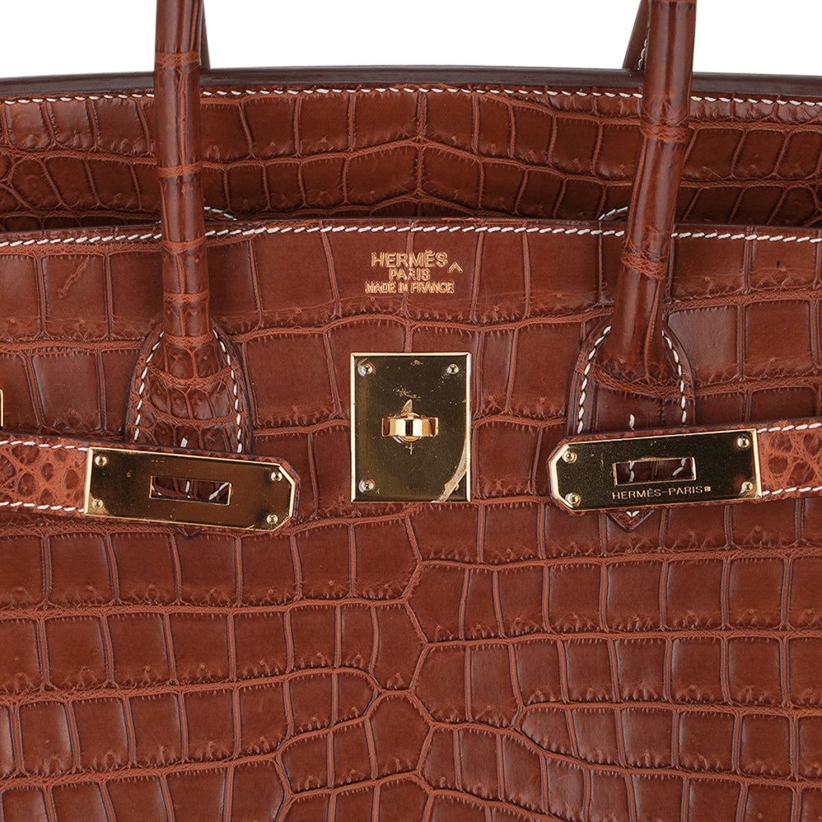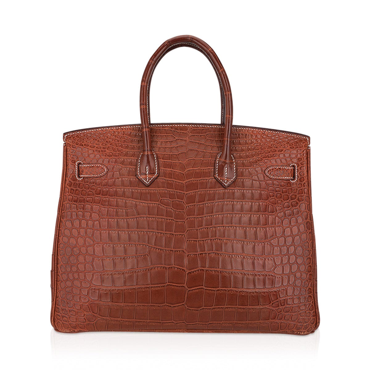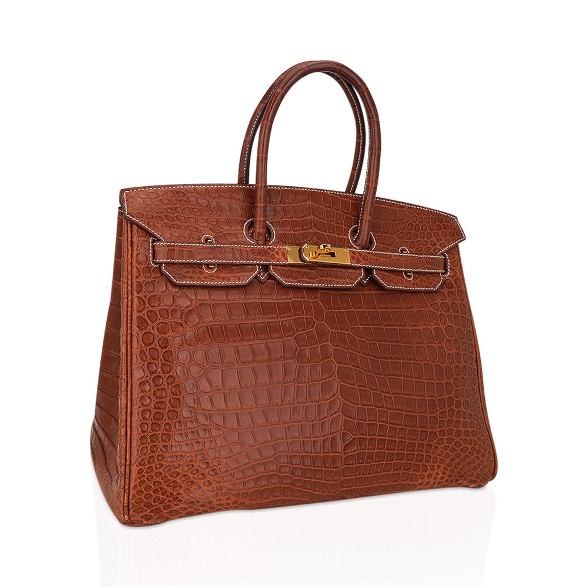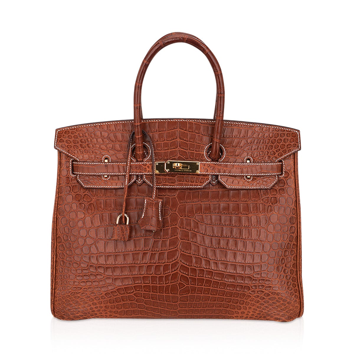 Guaranteed authentic Hermes Birkin 35 bag featured in matte Fauve Porosus Crocodile.