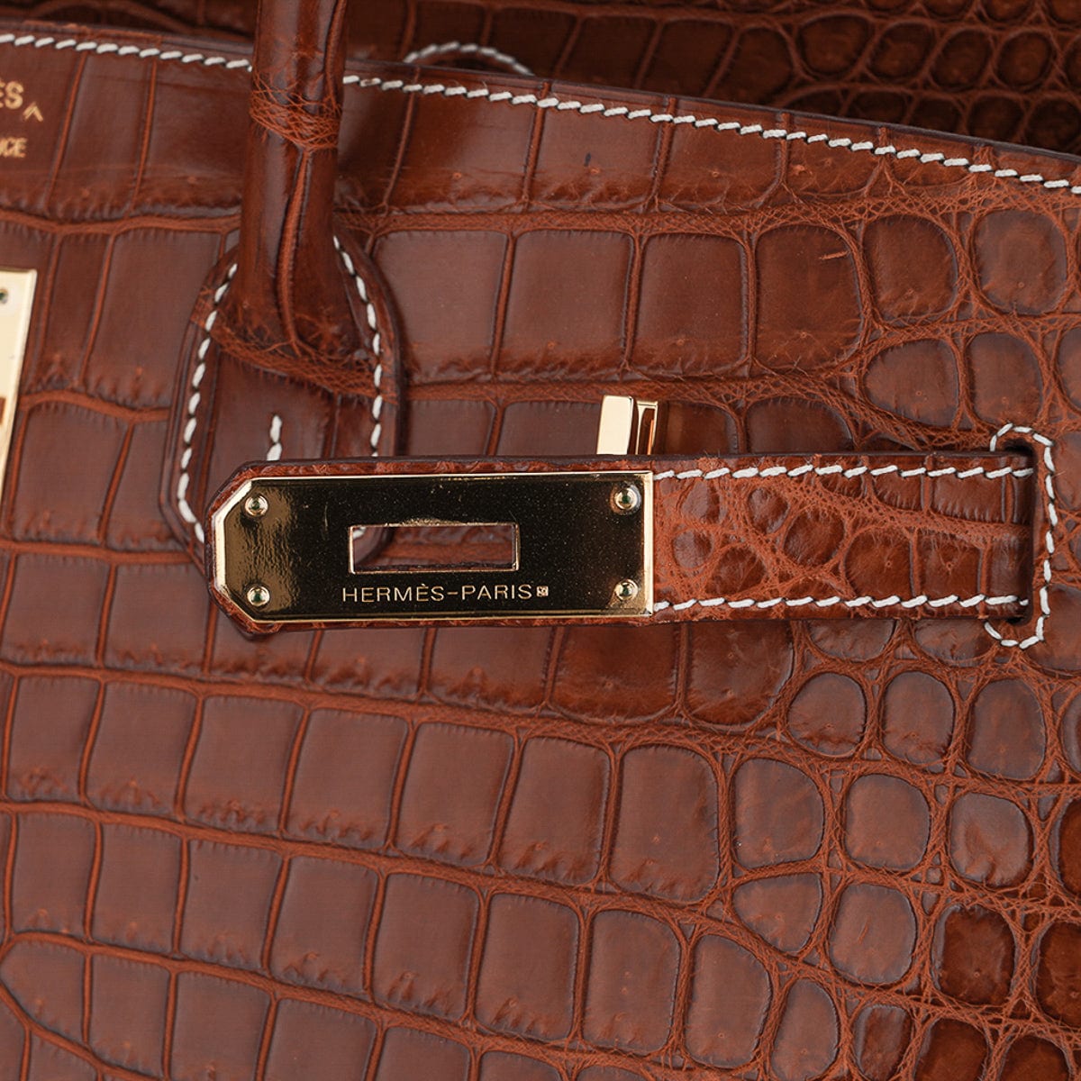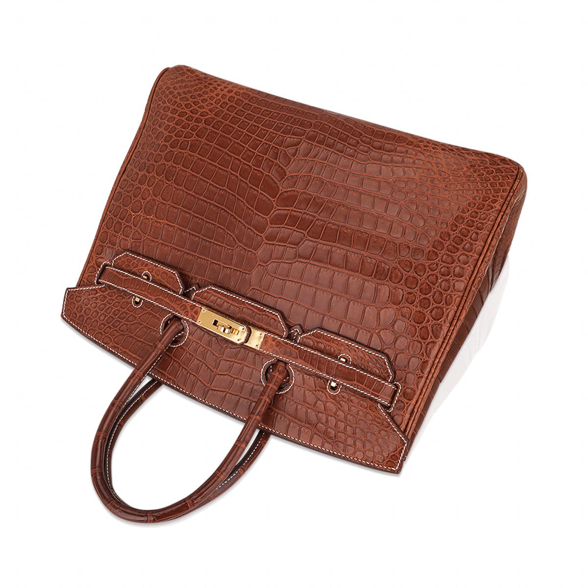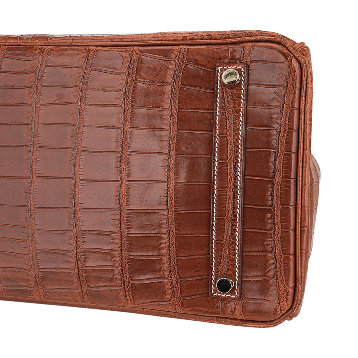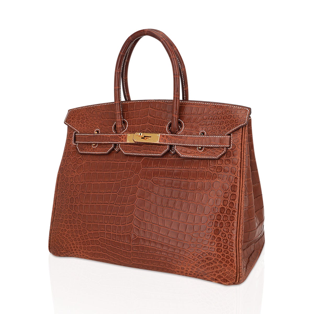 Guaranteed authentic Hermes Birkin 35 bag featured in matte Fauve Porosus Crocodile.