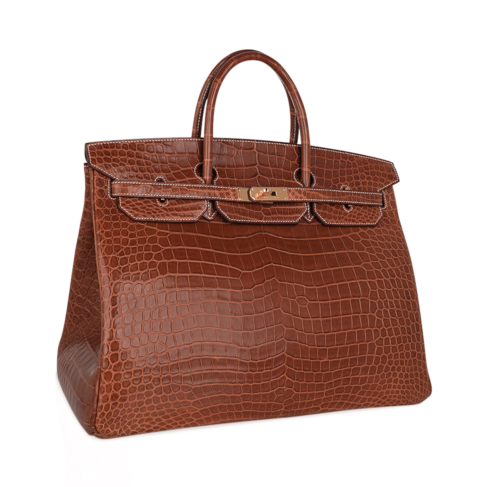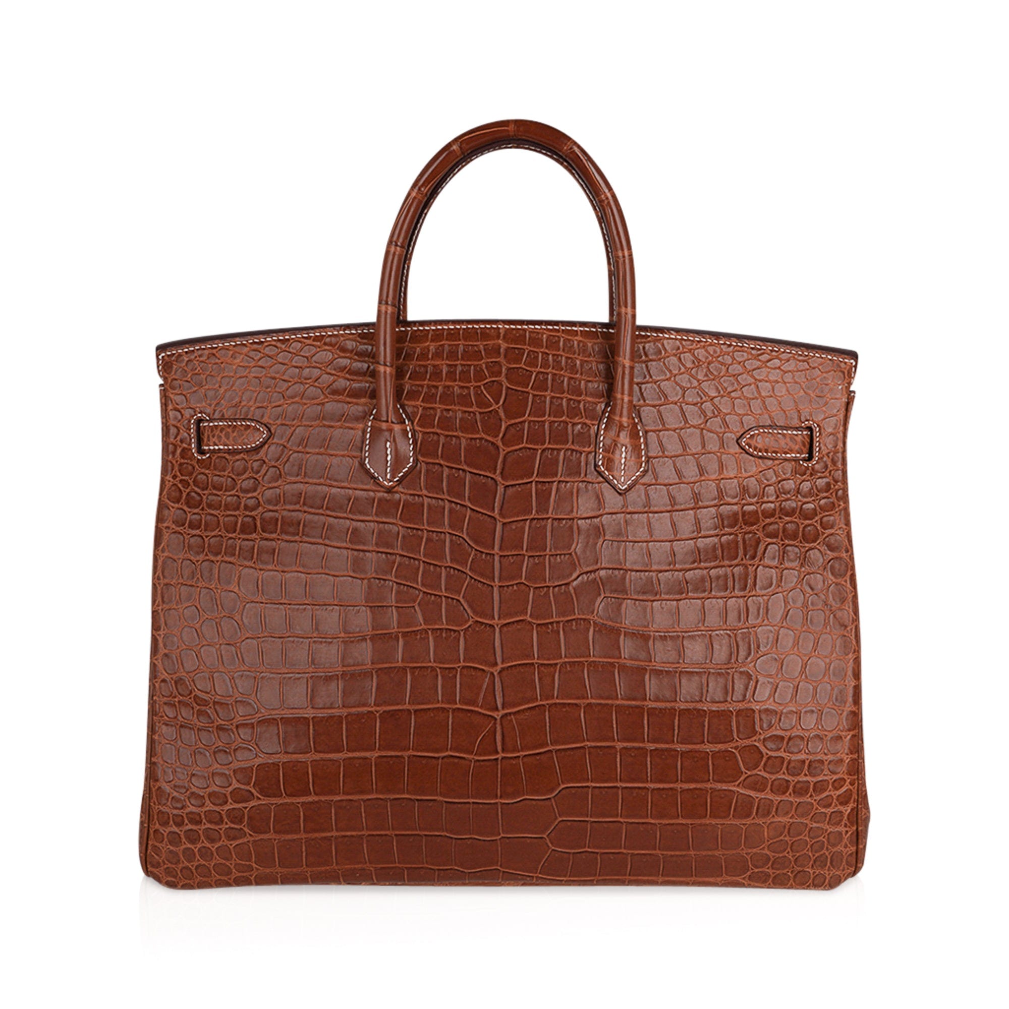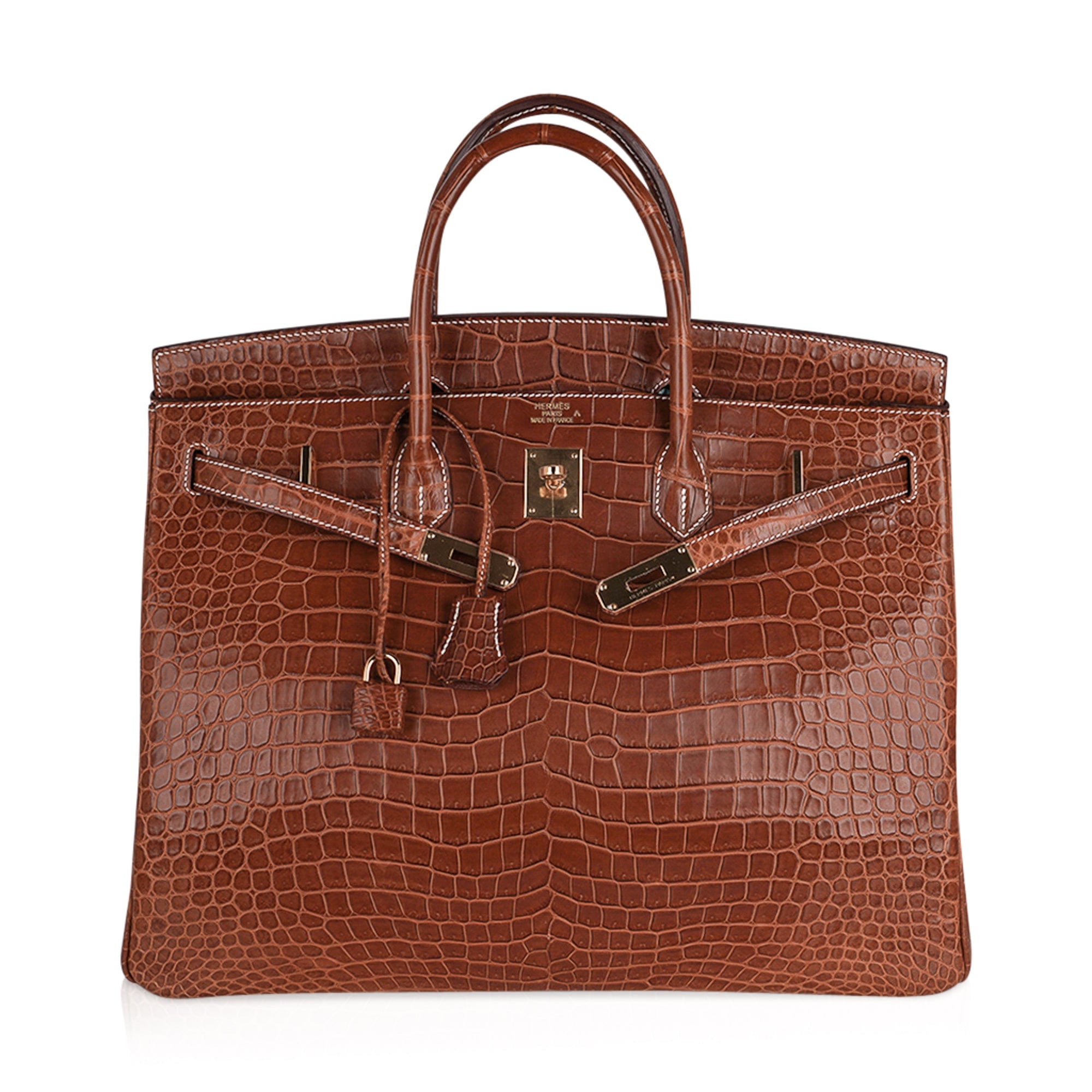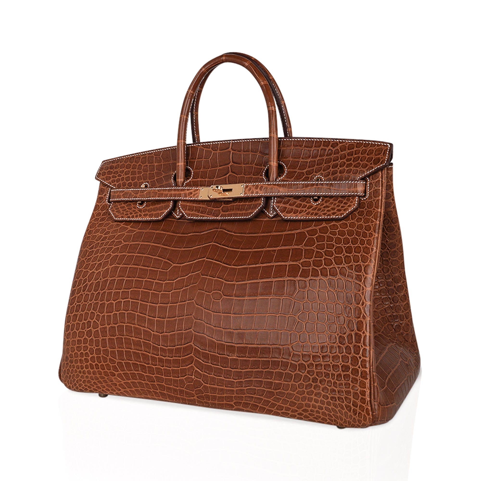 Rare Crocodile Hermes Birkin 40 bag in Fauve matte Porosus Crocodile.