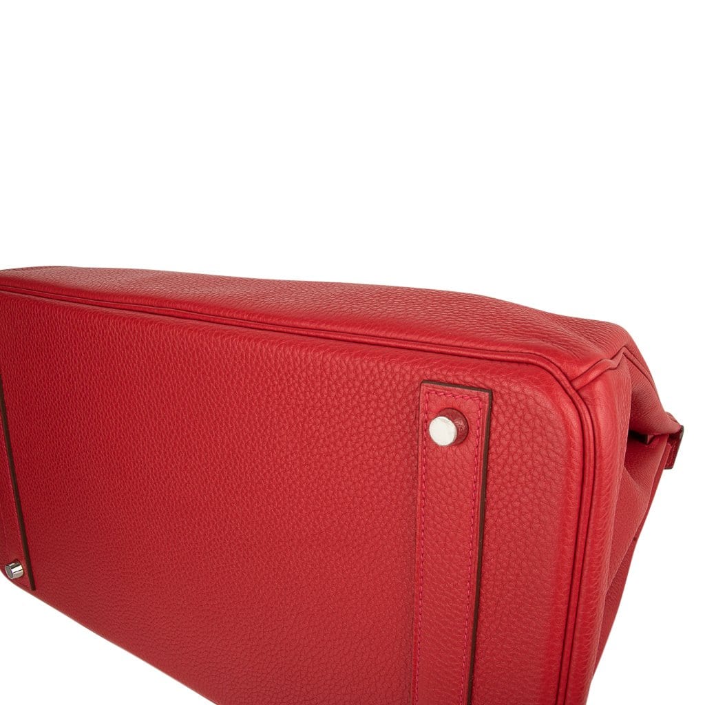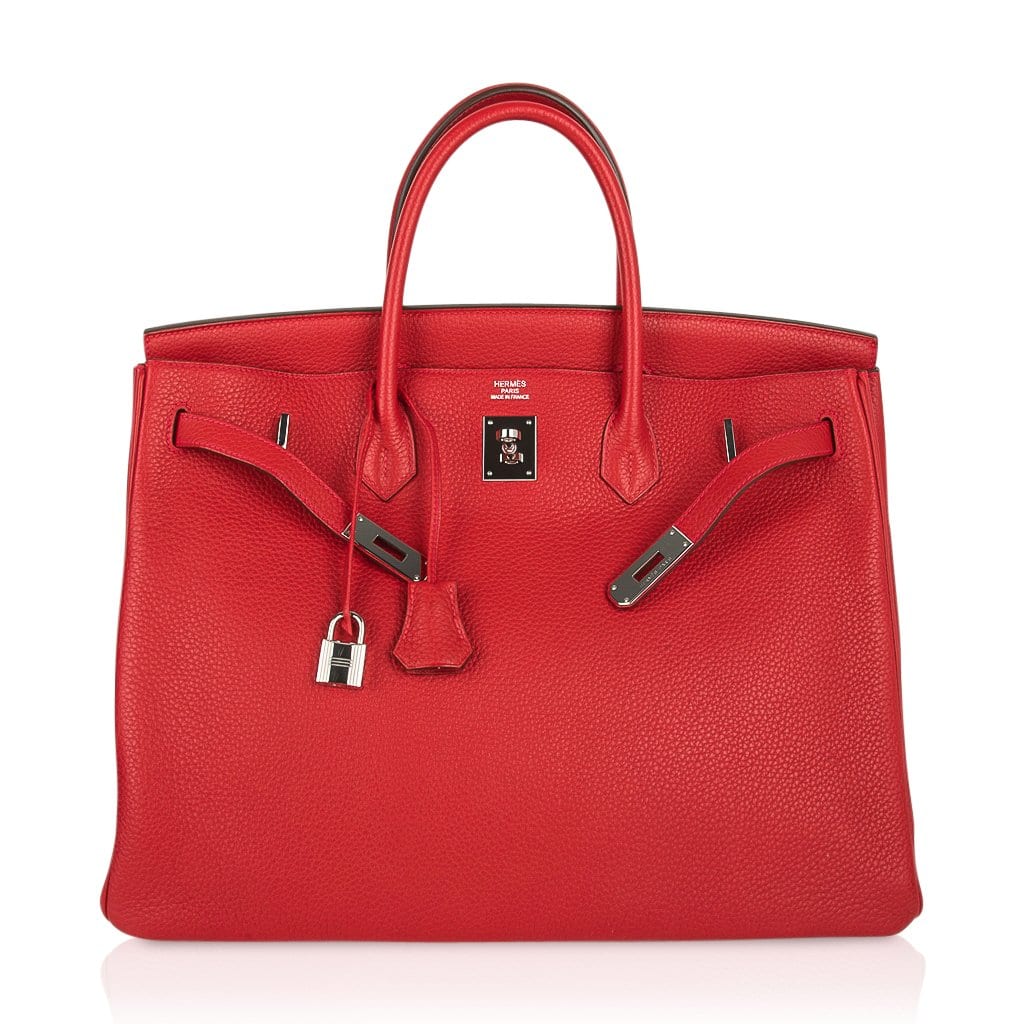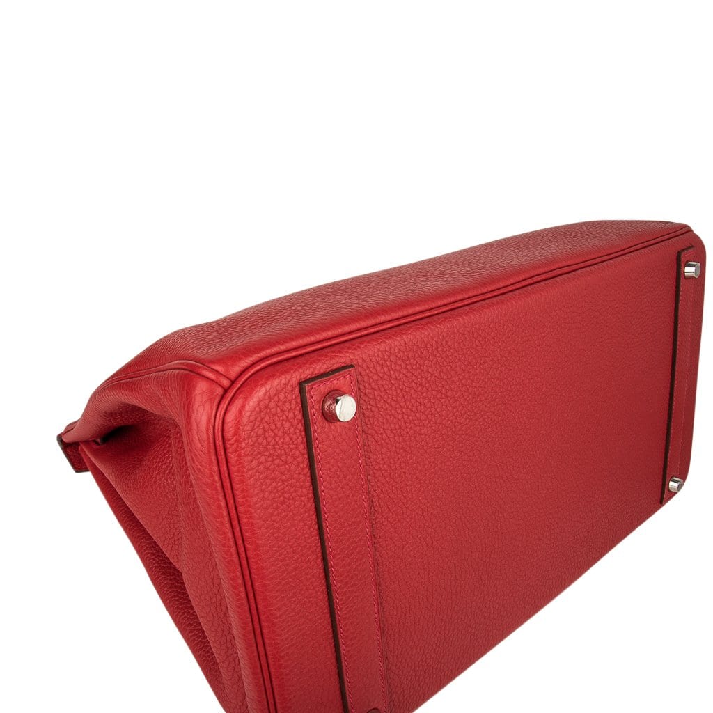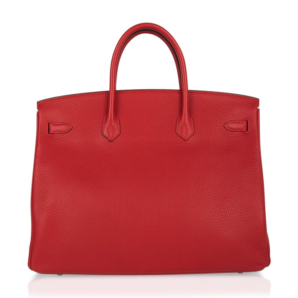 Guaranteed authentic Hermes Birkin 40 in classic Rouge Casaque and Togo leather.