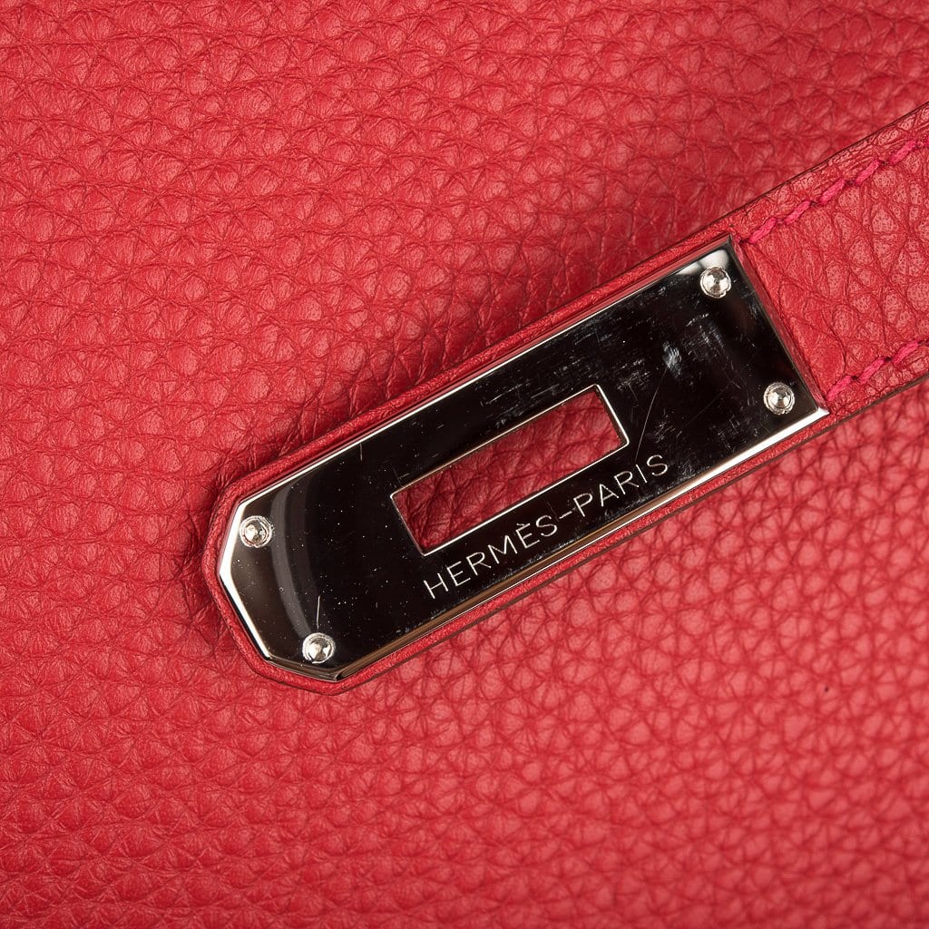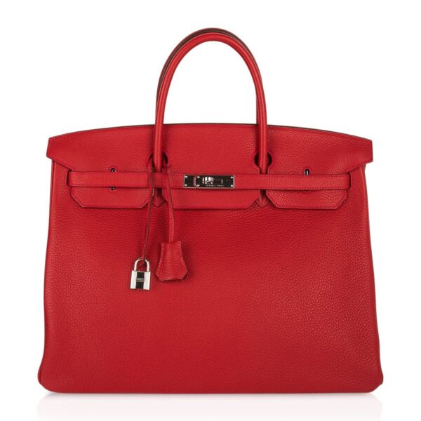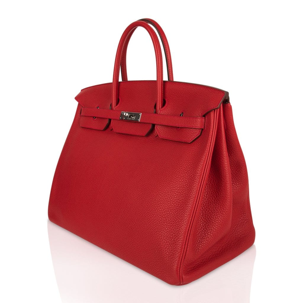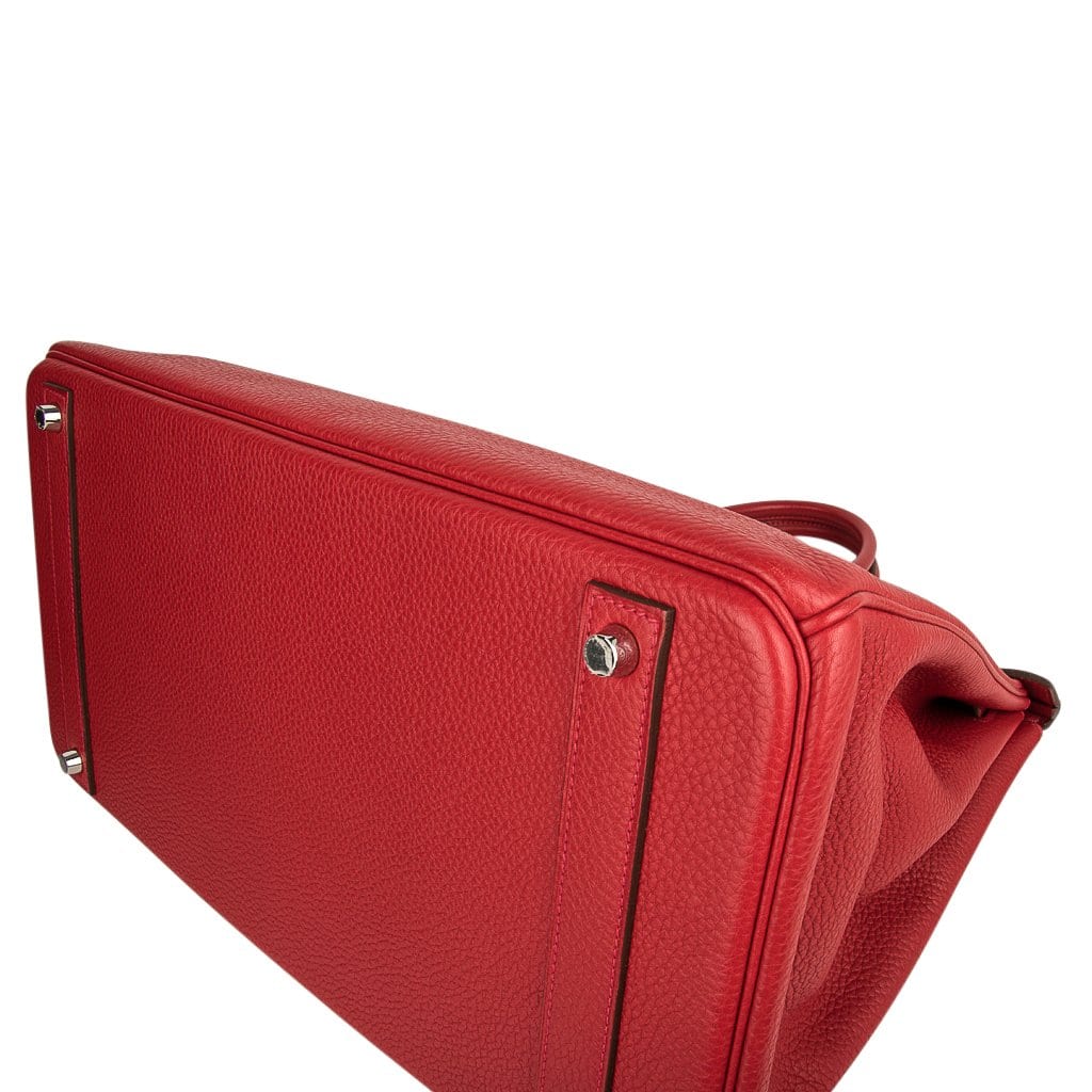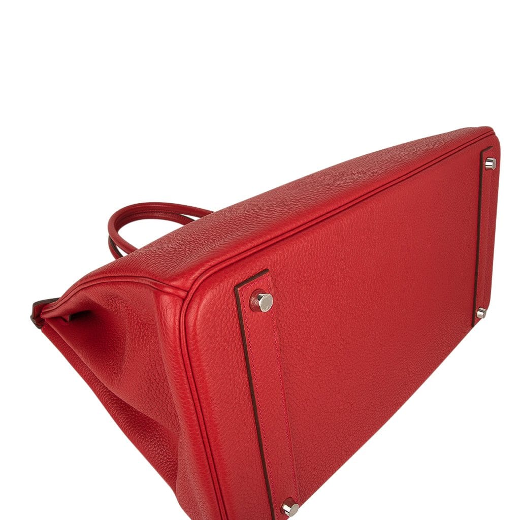 Guaranteed authentic Hermes Birkin 40 in classic Rouge Casaque and Togo leather.