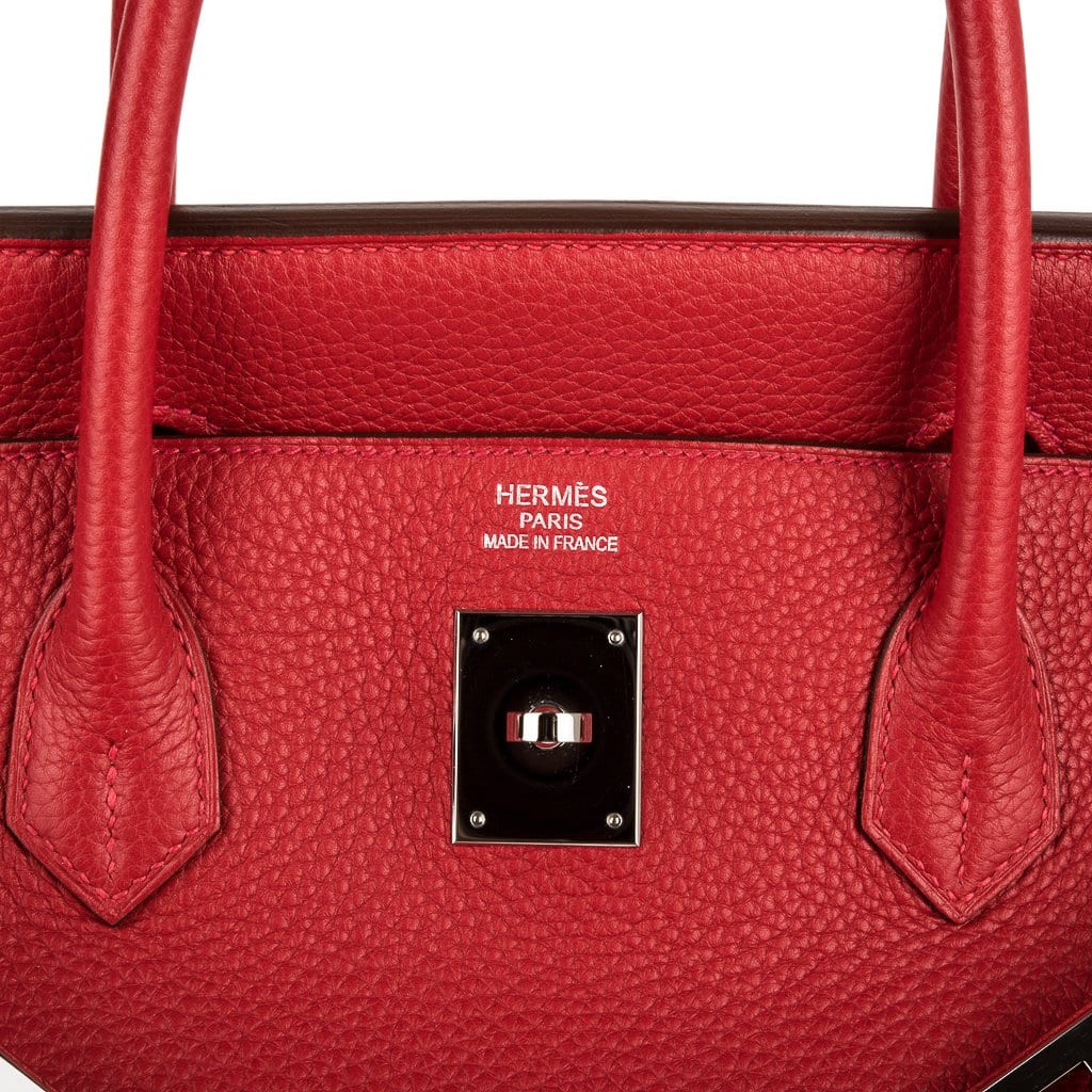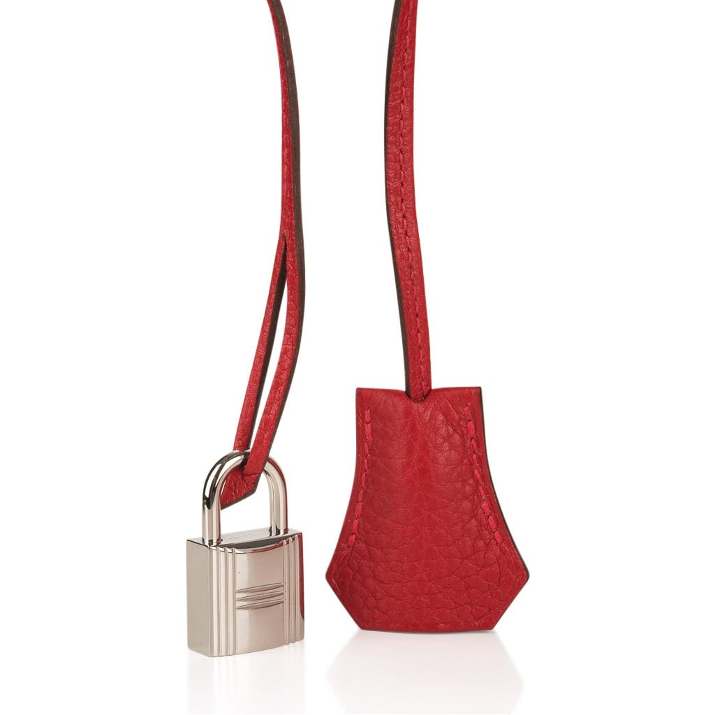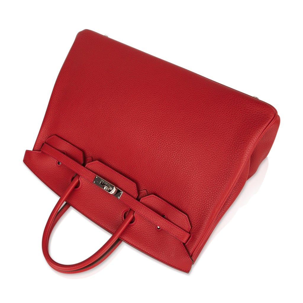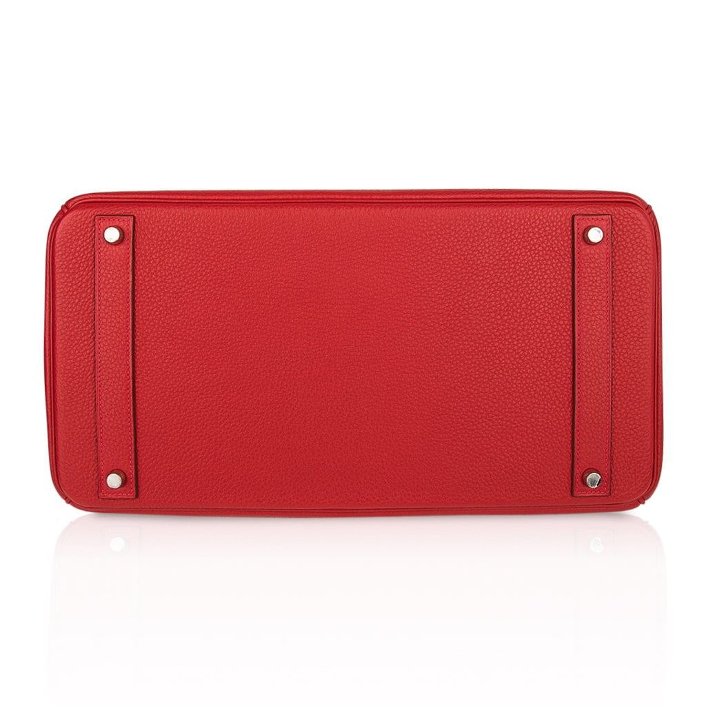 Guaranteed authentic Hermes Birkin 40 in classic Rouge Casaque and Togo leather.
