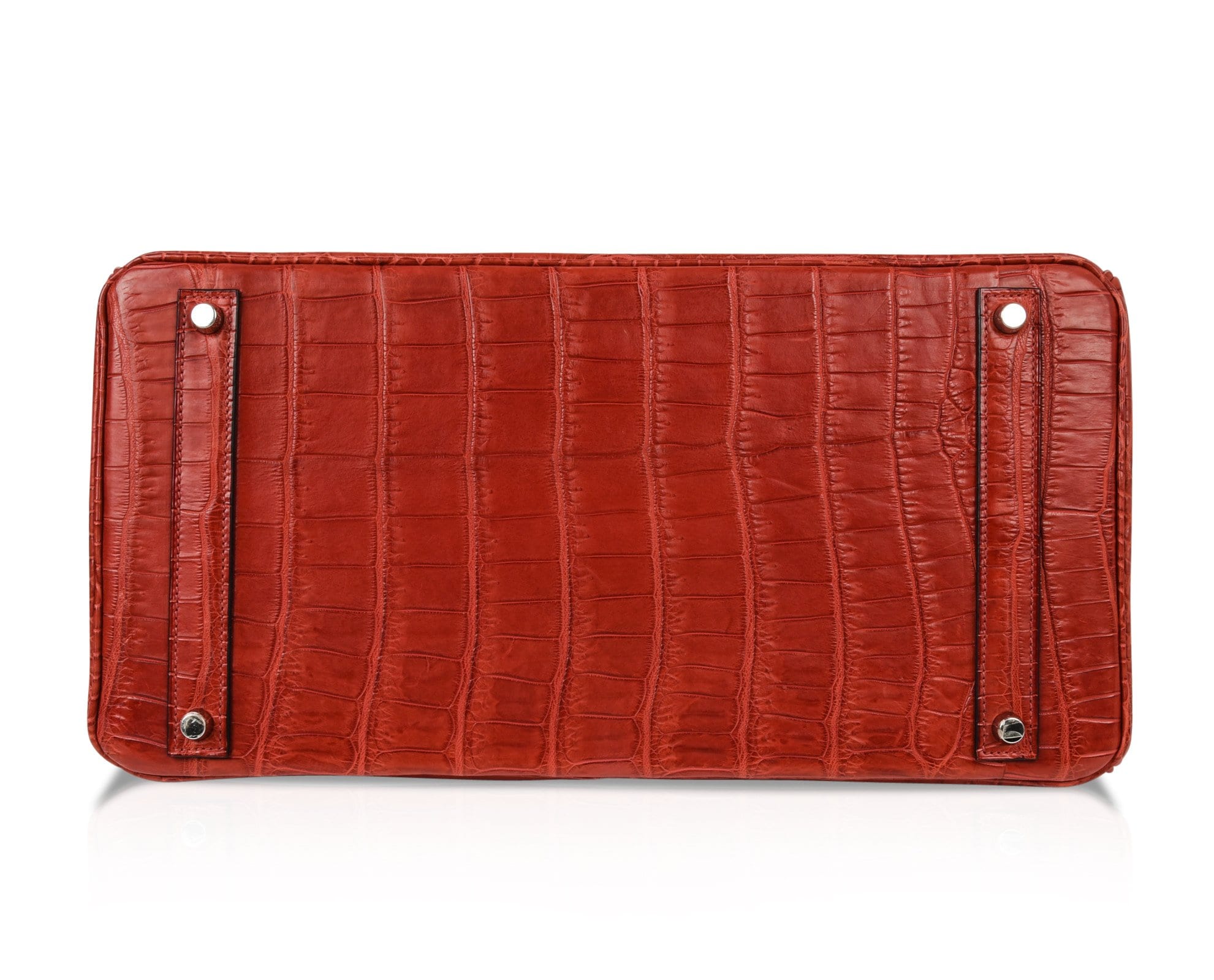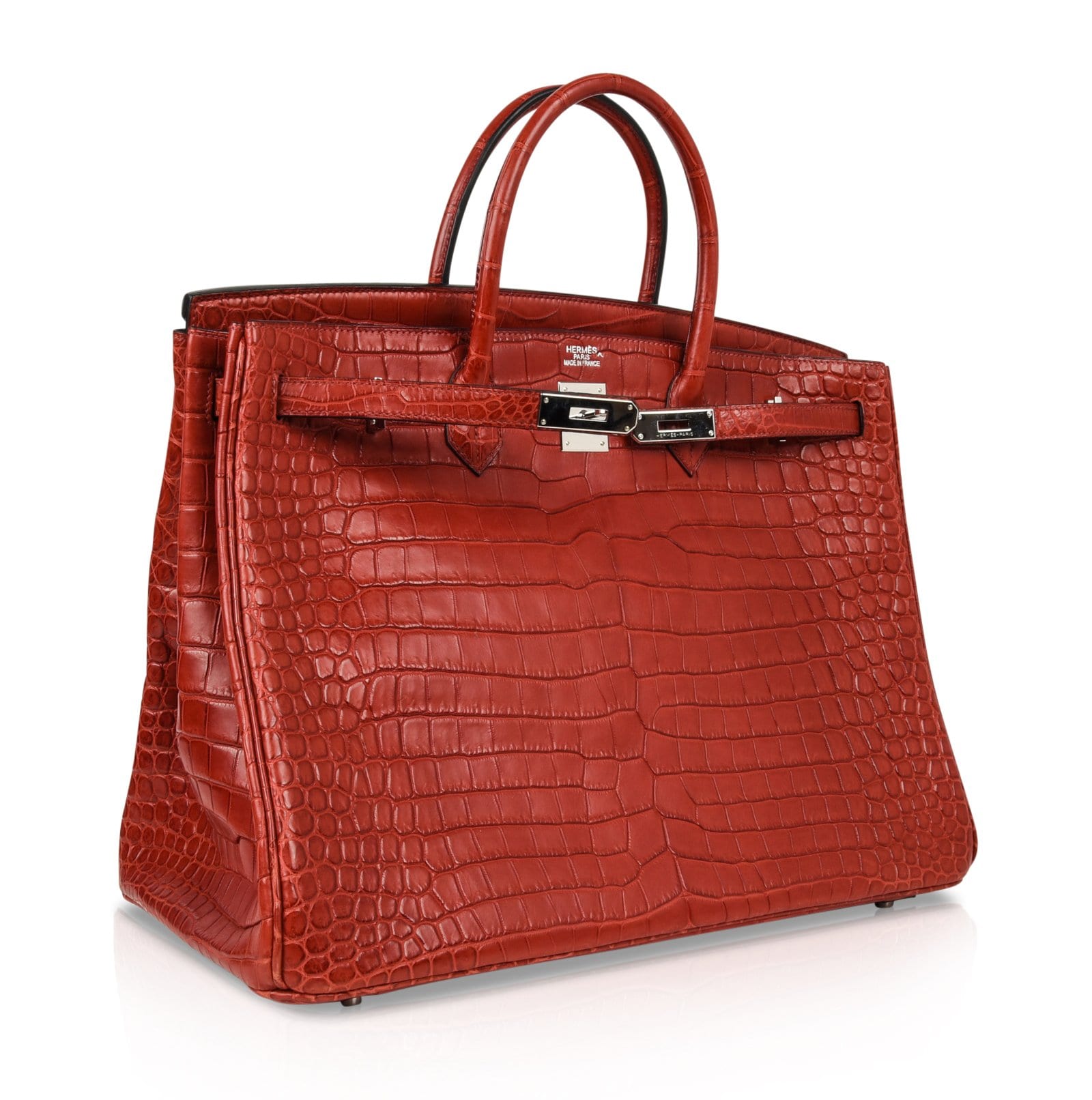 Guaranteed authentic Hermes Birkin 40 in Rouge Red Matte Porosus Crocodile.