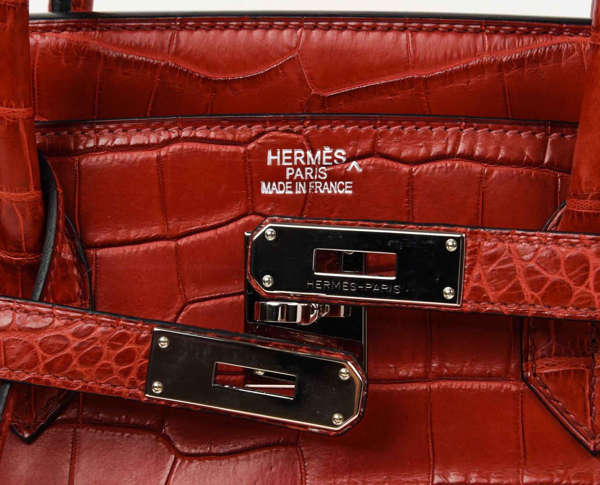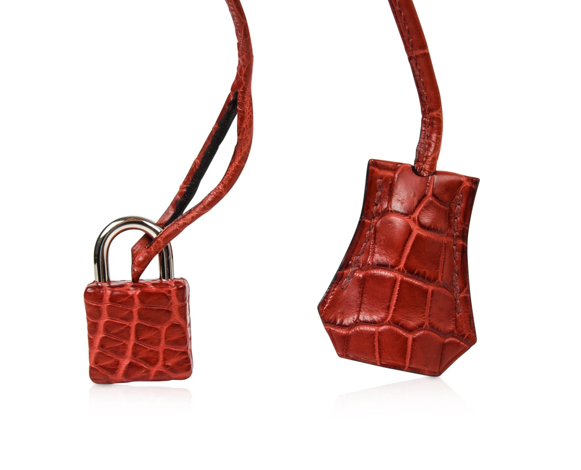 Coveted rare Hermes red crocodile Birkin bag with fresh palladium hardware.