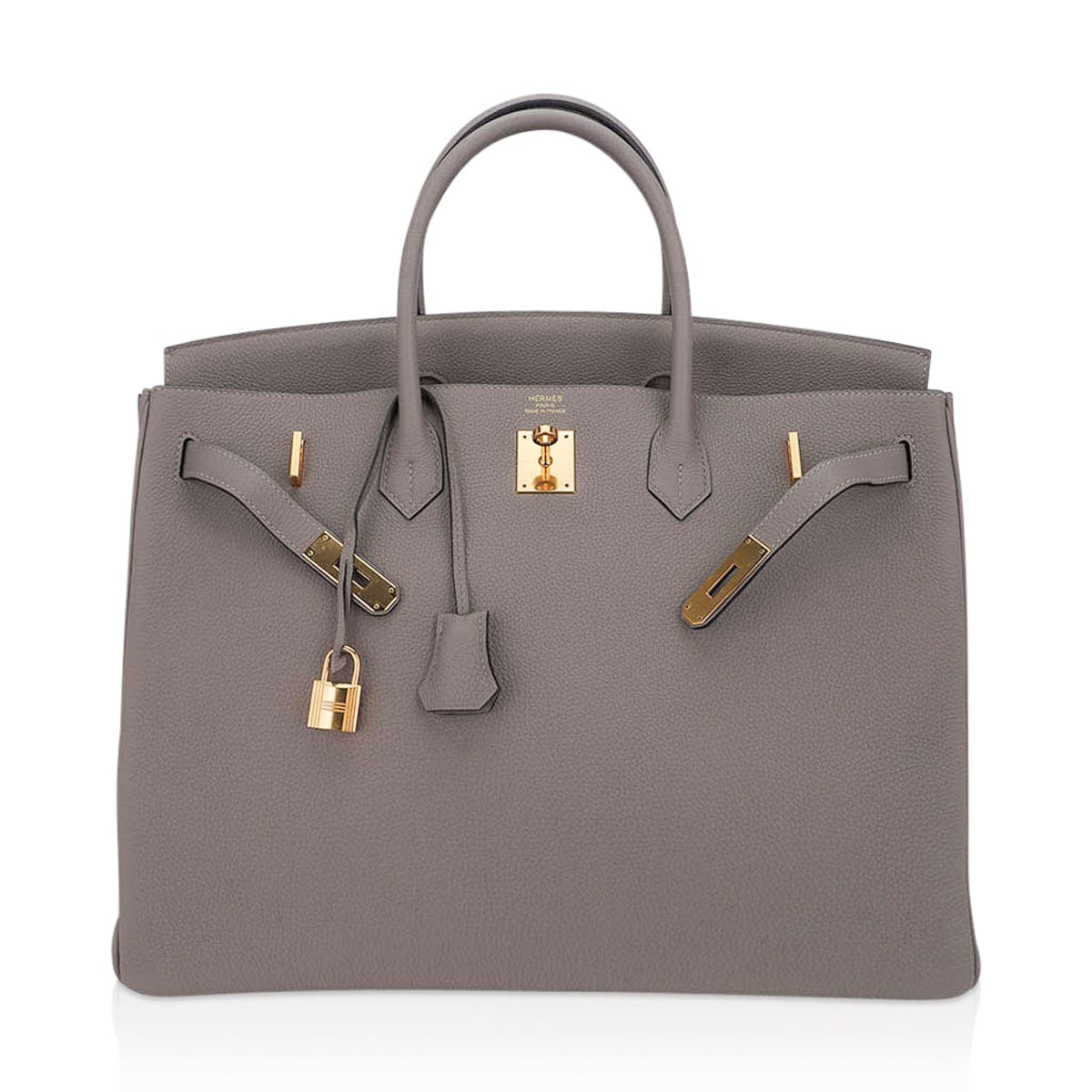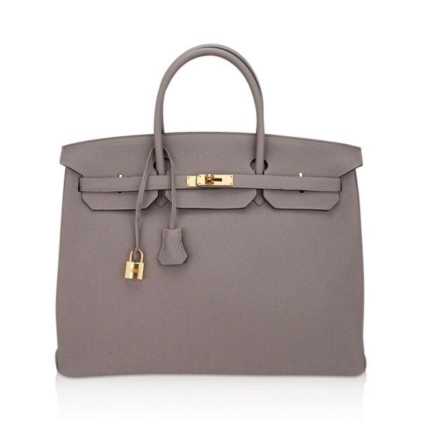 This gray Birkin bag is a classic addition to any Hermes handbag collection.