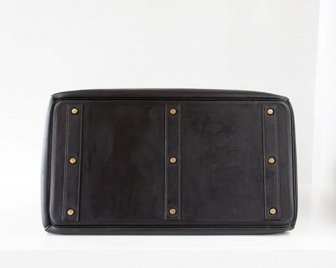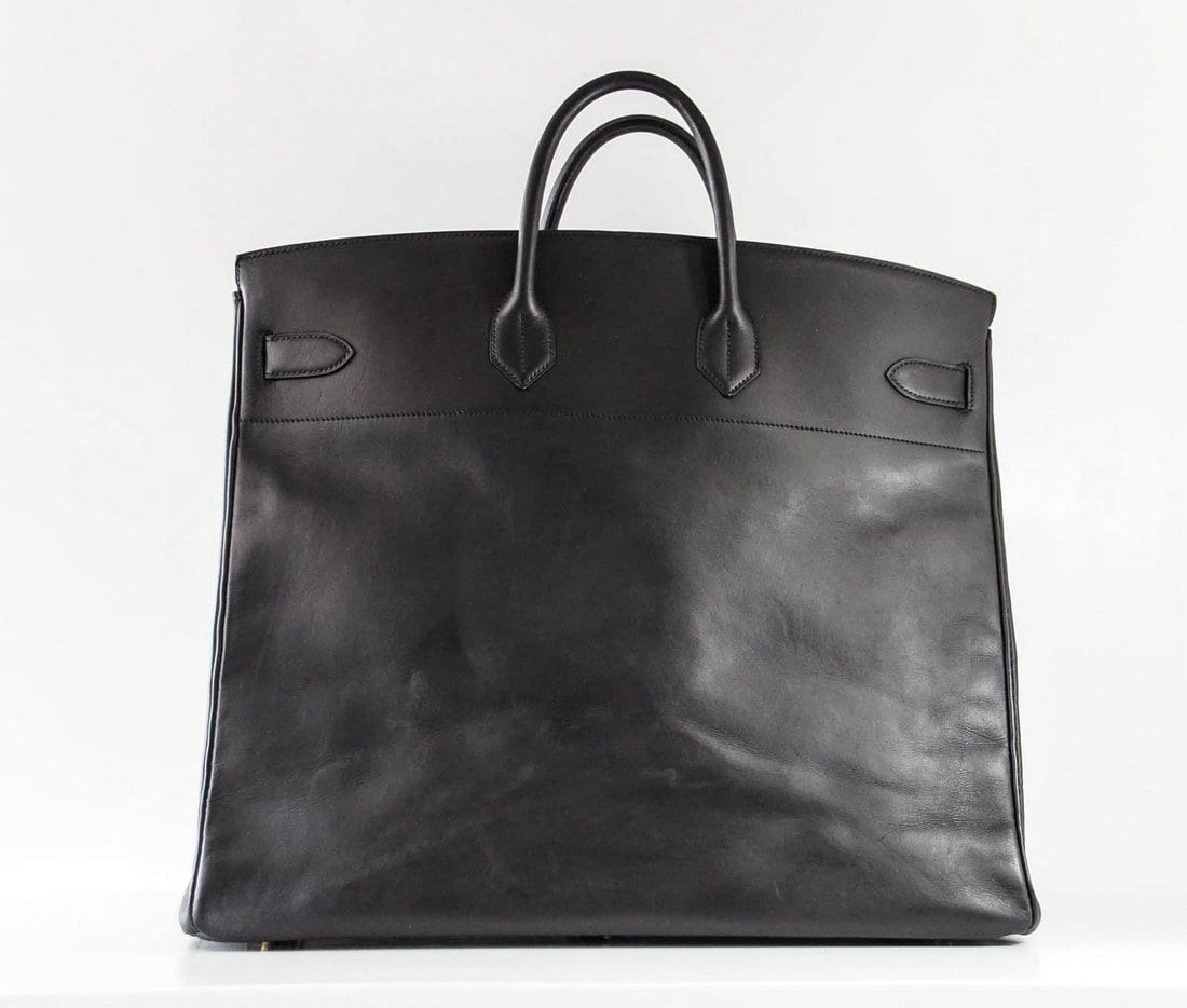 Guaranteed authentic uber rare Vintage 50 Hermes Hac in Black in rare Vache Noir leather.