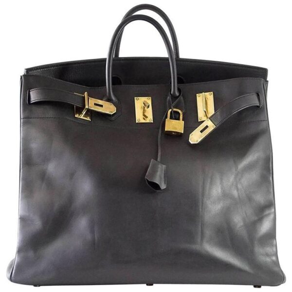 Guaranteed authentic uber rare Vintage 50 Hermes Hac in Black in rare Vache Noir leather.