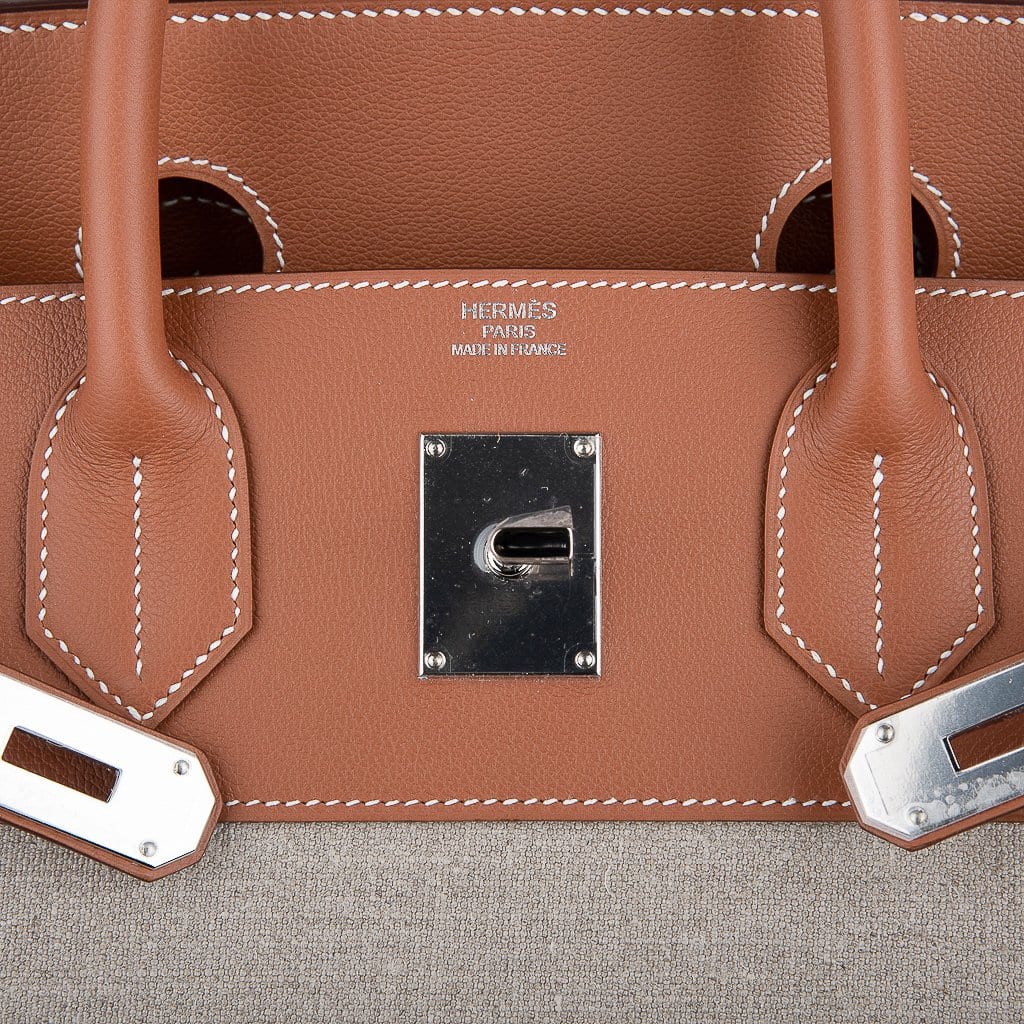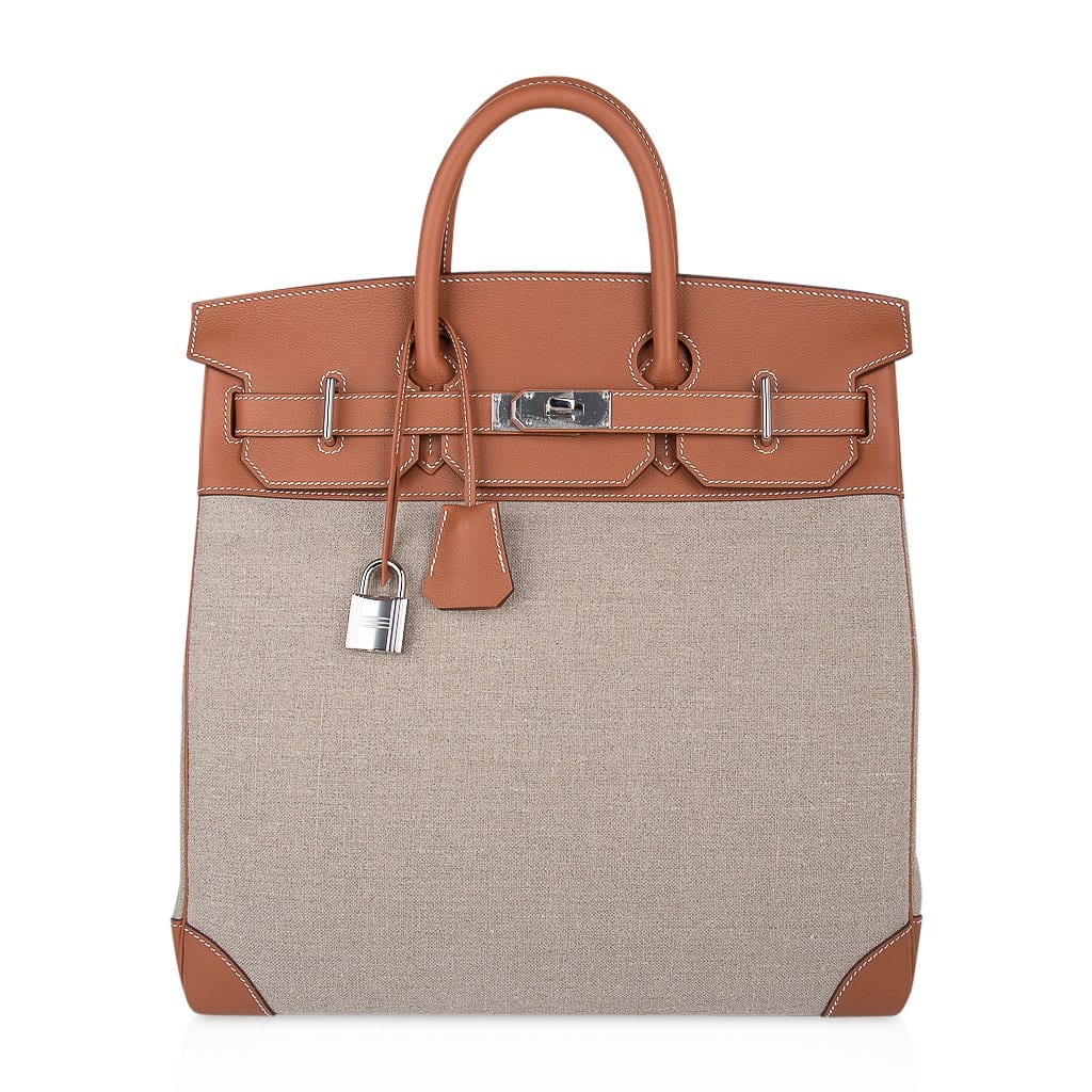 Hermes HAC 40 (Haut a Courroies) bag featured in Gold Evercolor leather with Ficelle Toile.