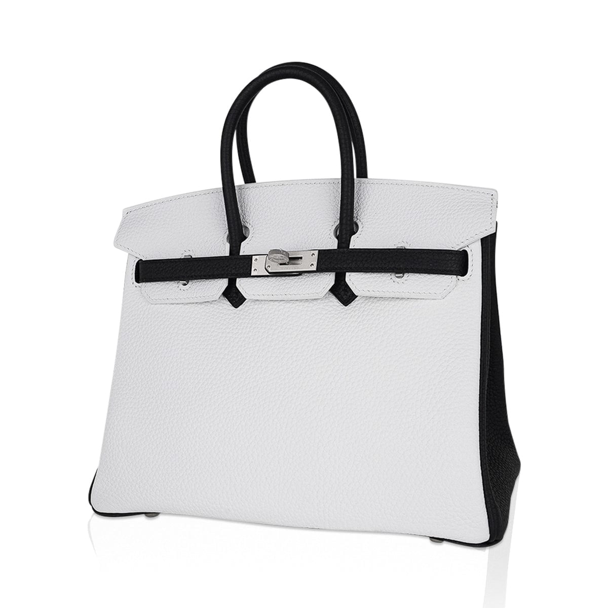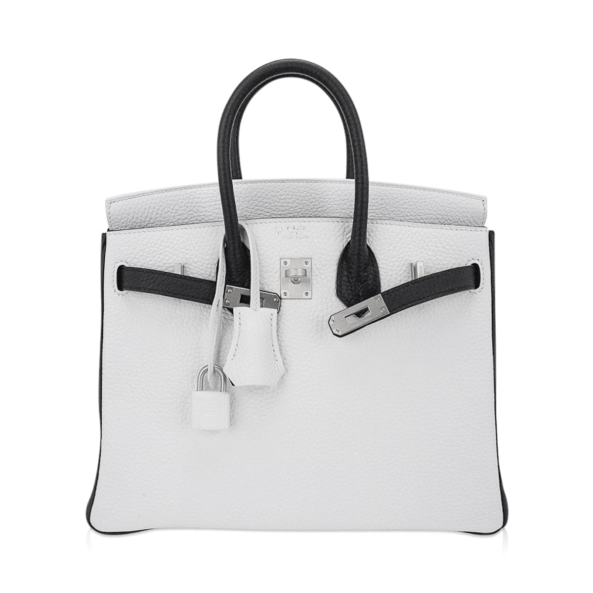 Guaranteed authentic Hermes Birkin HSS 25 bag featured striking White and Black.