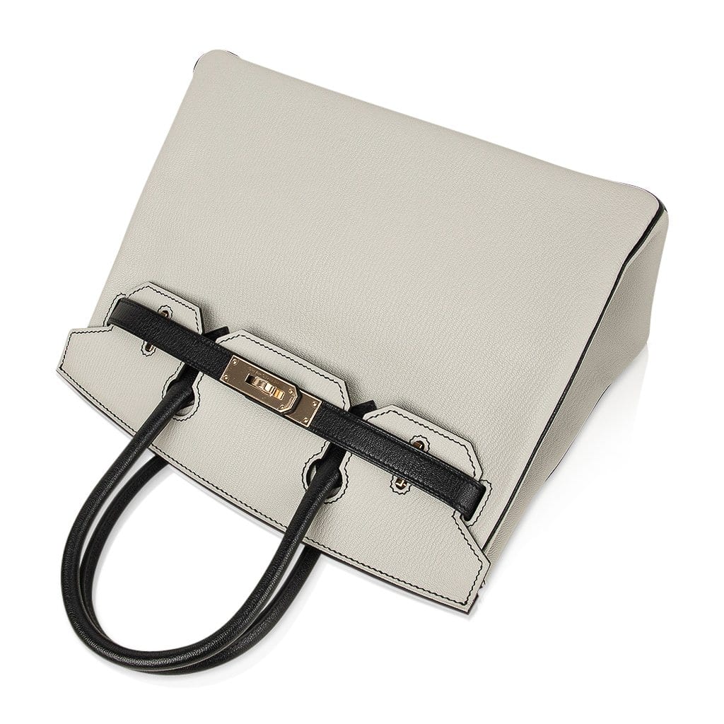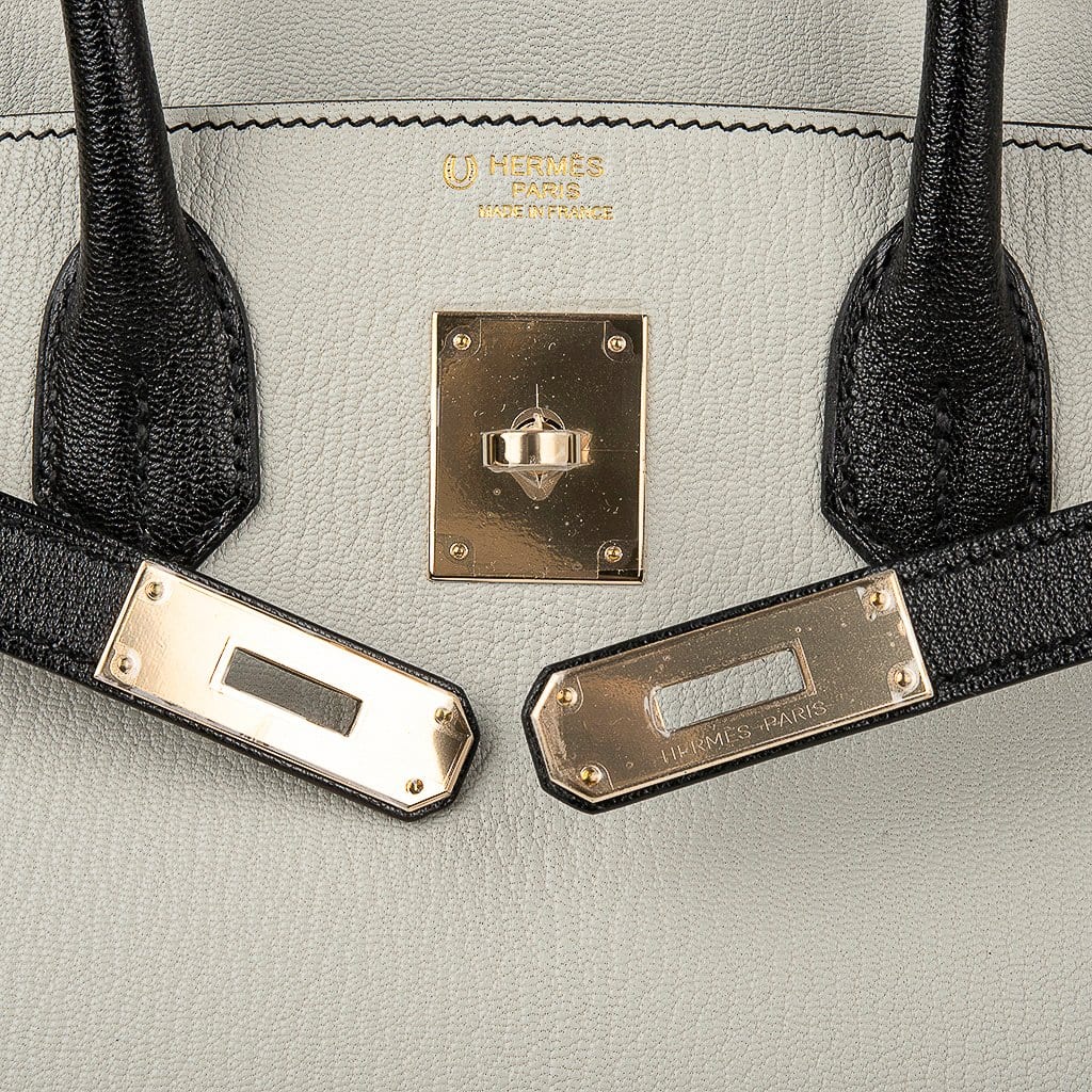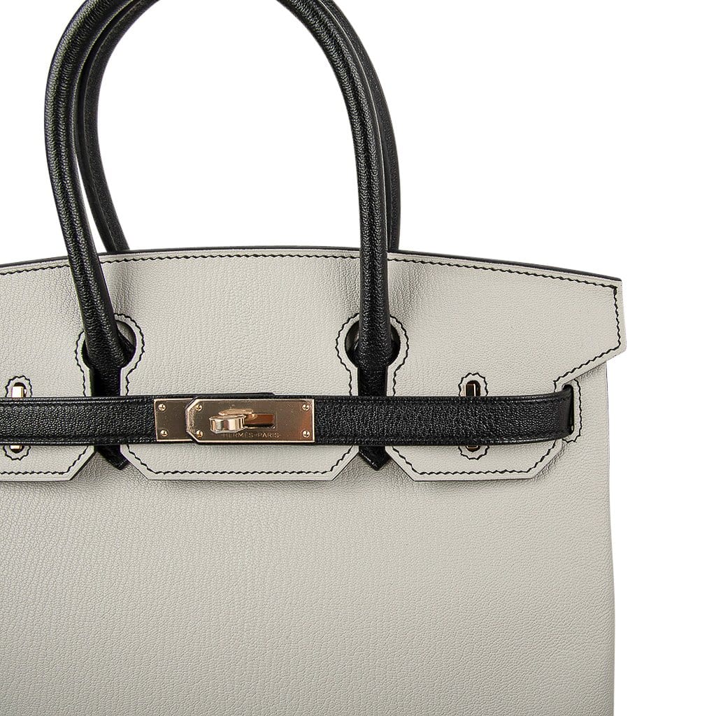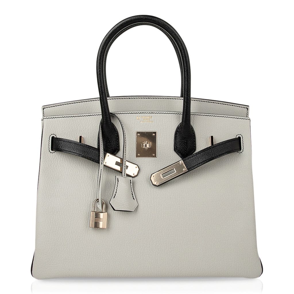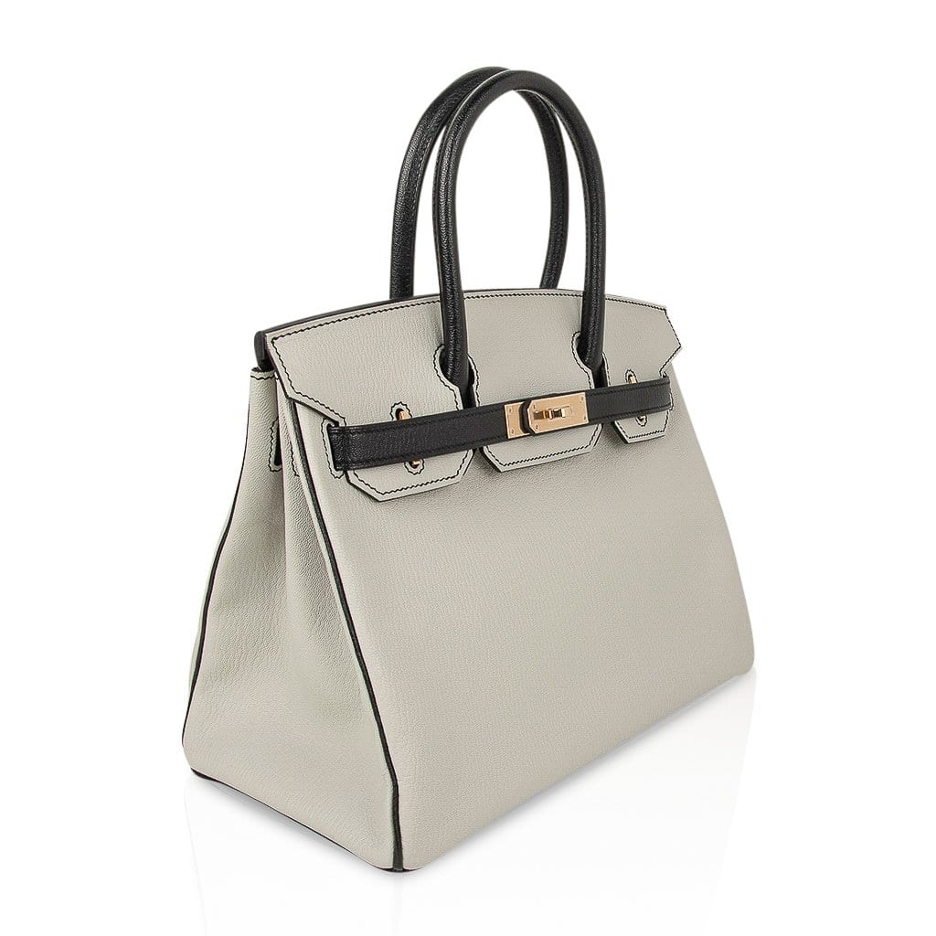 Guaranteed authentic Hermes Birkin 30 HSS bag features coveted Gris Perle and black in Chevre