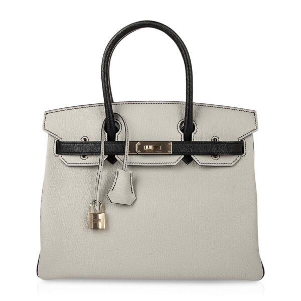 Guaranteed authentic Hermes Birkin 30 HSS bag features coveted Gris Perle and black in Chevre