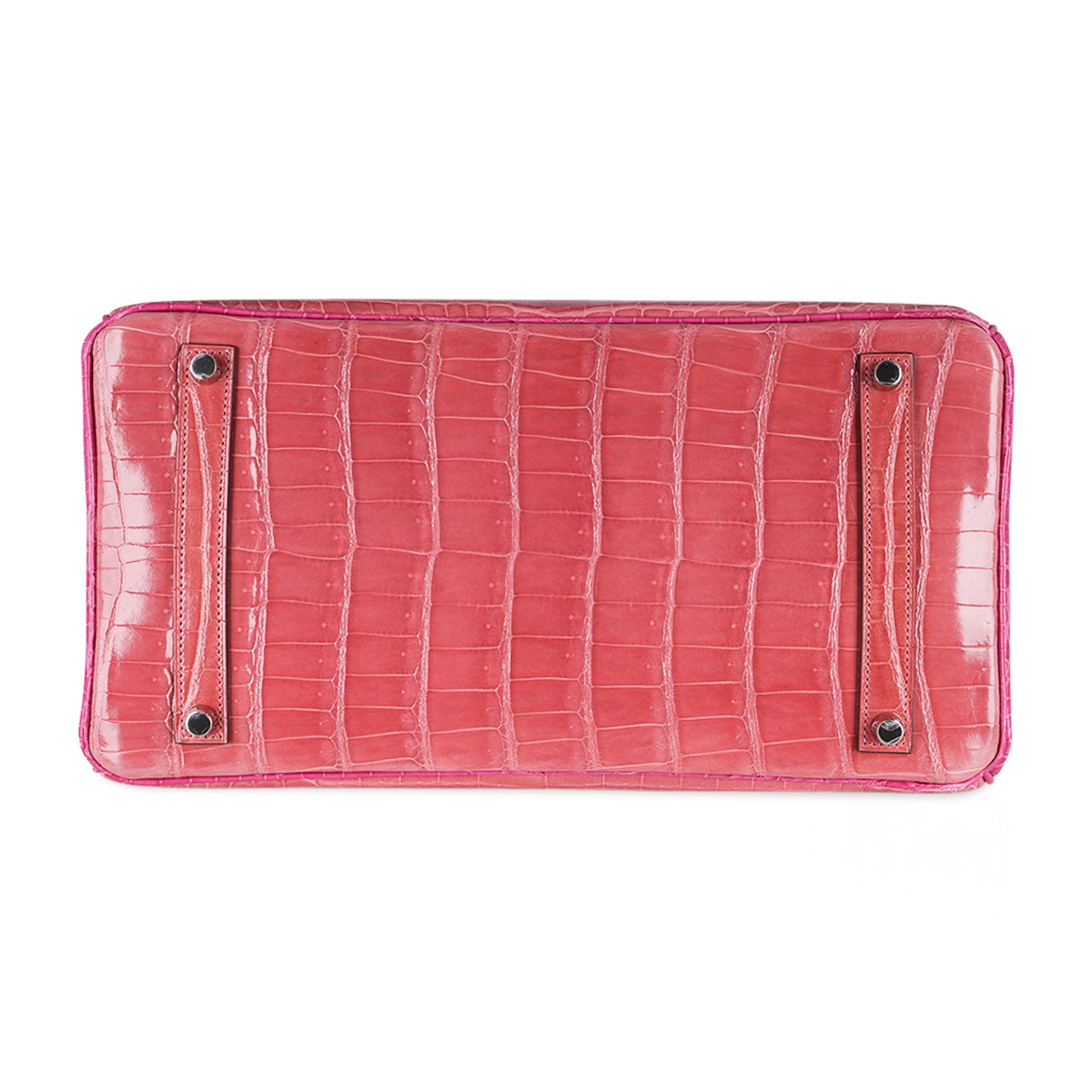 Guaranteed authentic Hermes Birkin HSS 35 bag featured in exquisite unicorn rare Rose Indien and Fuschia Porosus Crocodile.