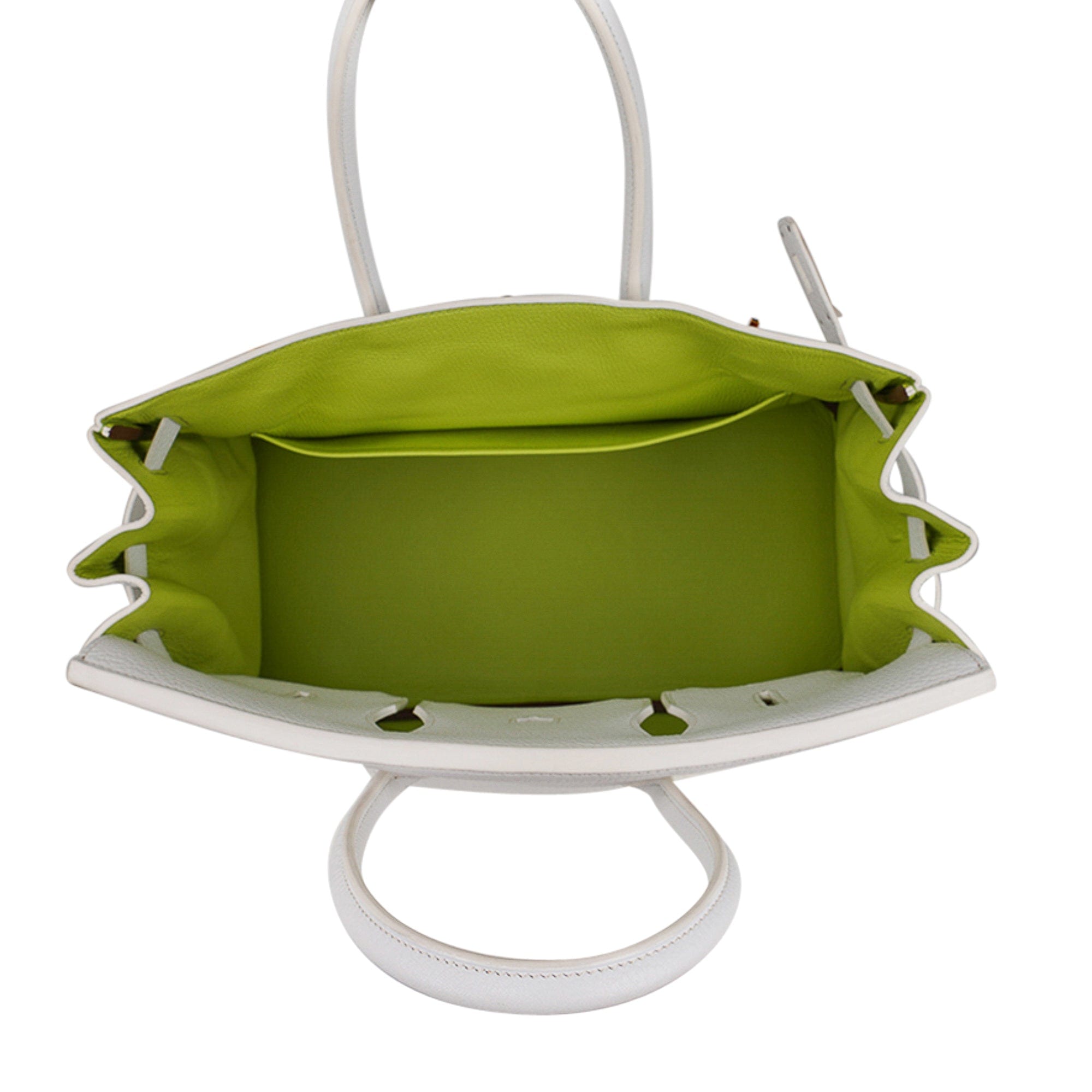 Hermes Birkin HSS 35 Bag White / Kiwi Gold Hardware Clemence Leather New