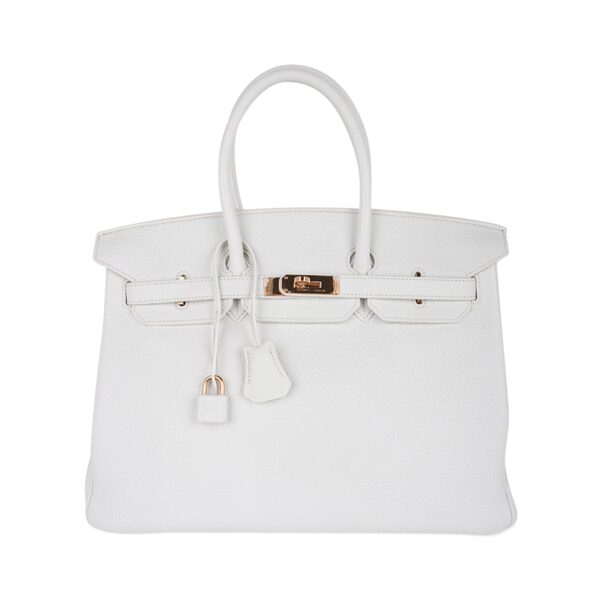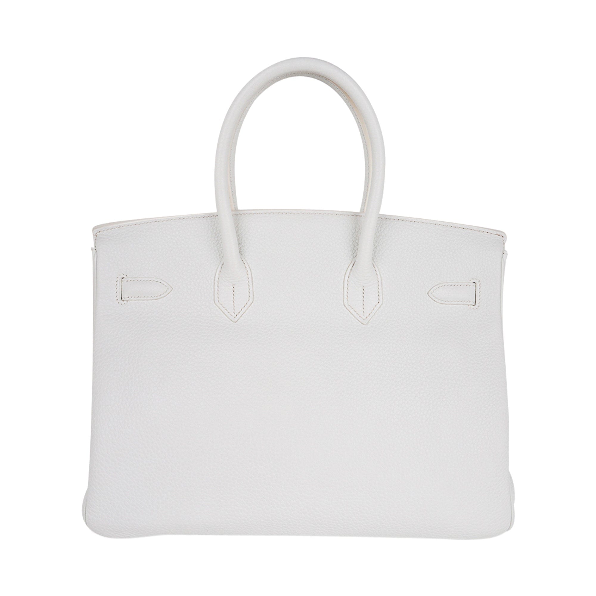 Guaranteed authentic Hermes Birkin HSS 35 bag featured in crisp White Clemence Leather.