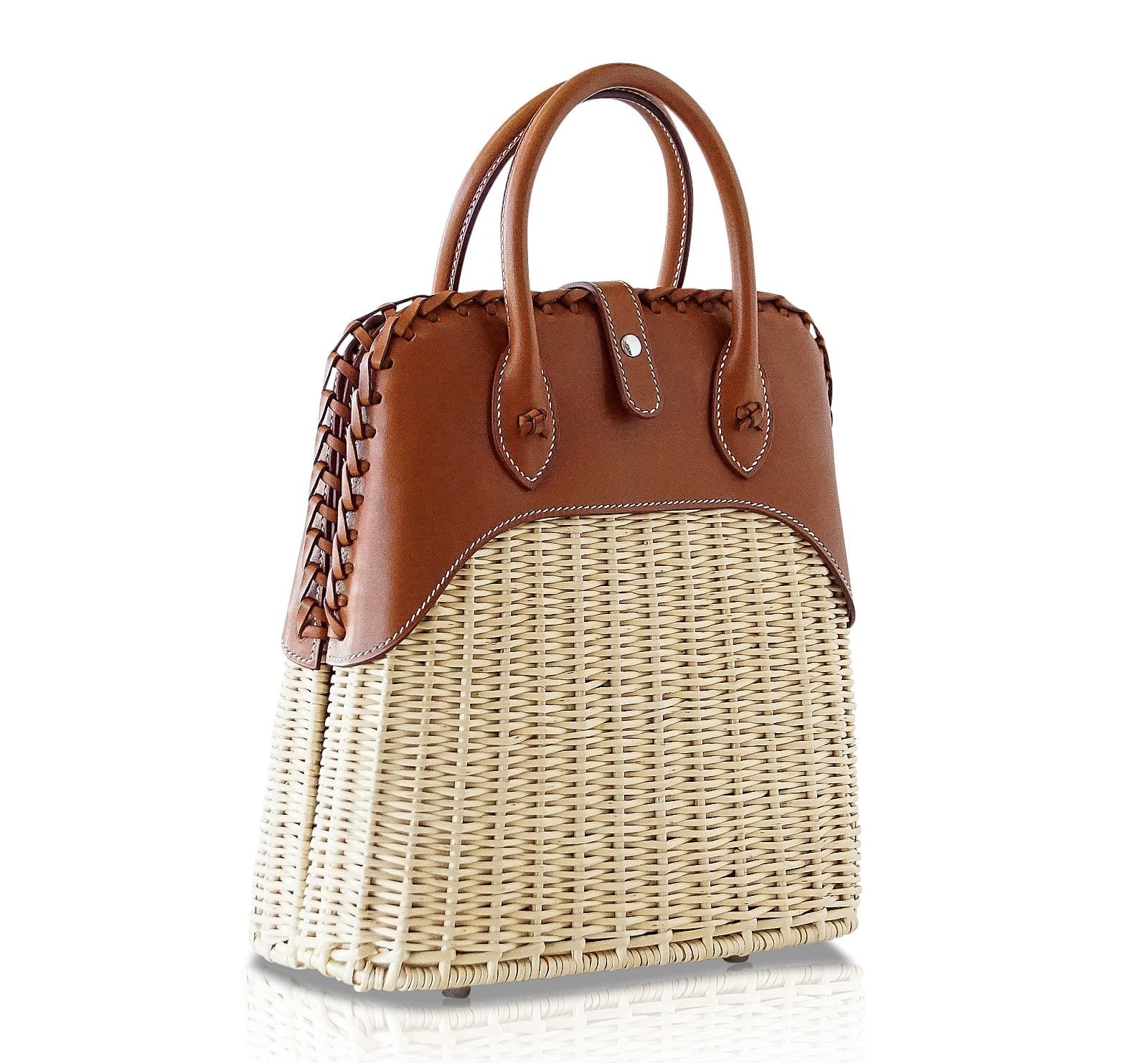 Light weight Osier wicker and warm Barenia leather.