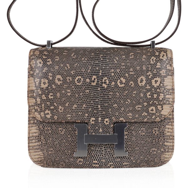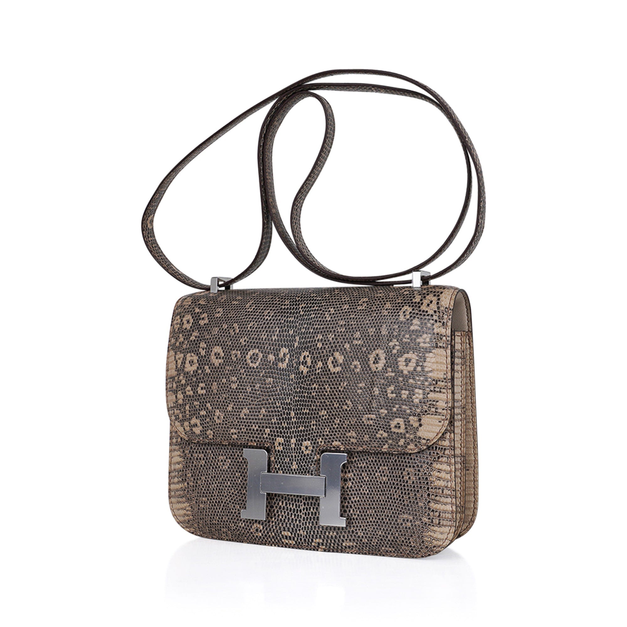 Guaranteed authentic Hermes Constance 18 bag featured limited edition Desert Lizard.