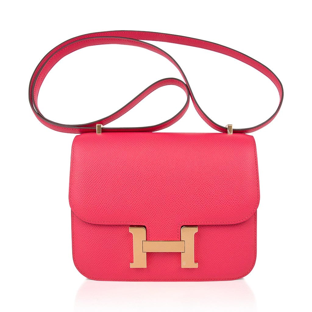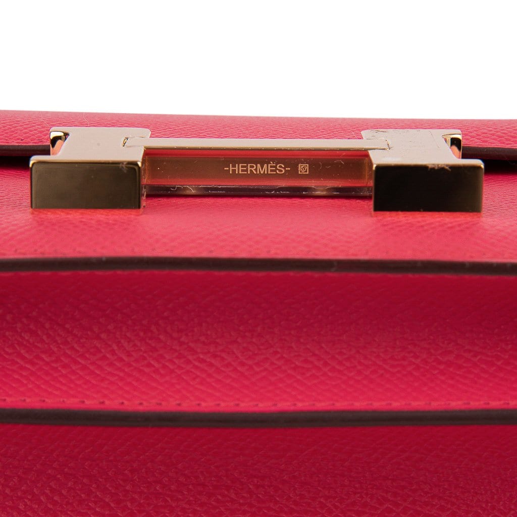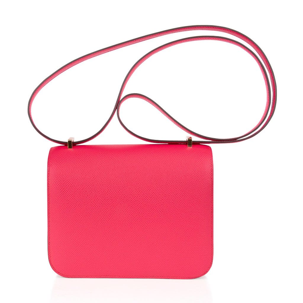 Guaranteed authentic Hermes Constance 18 bag featured in Rose Extreme Pink Epsom Gold Hardware