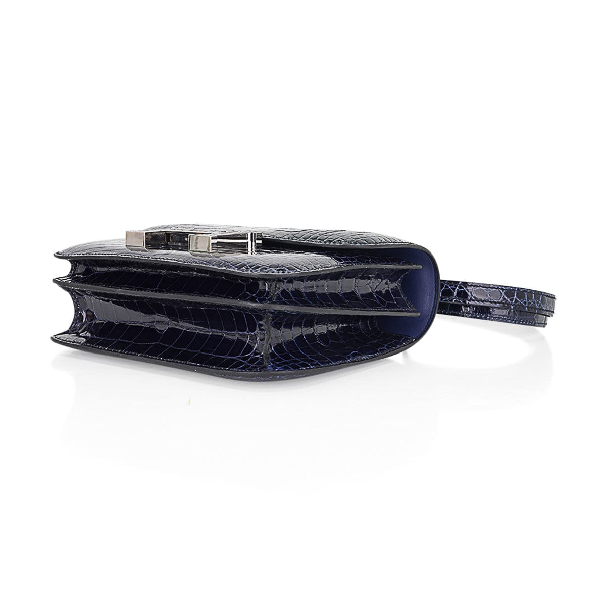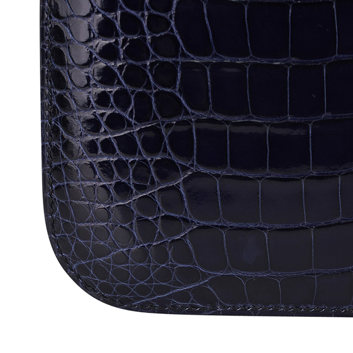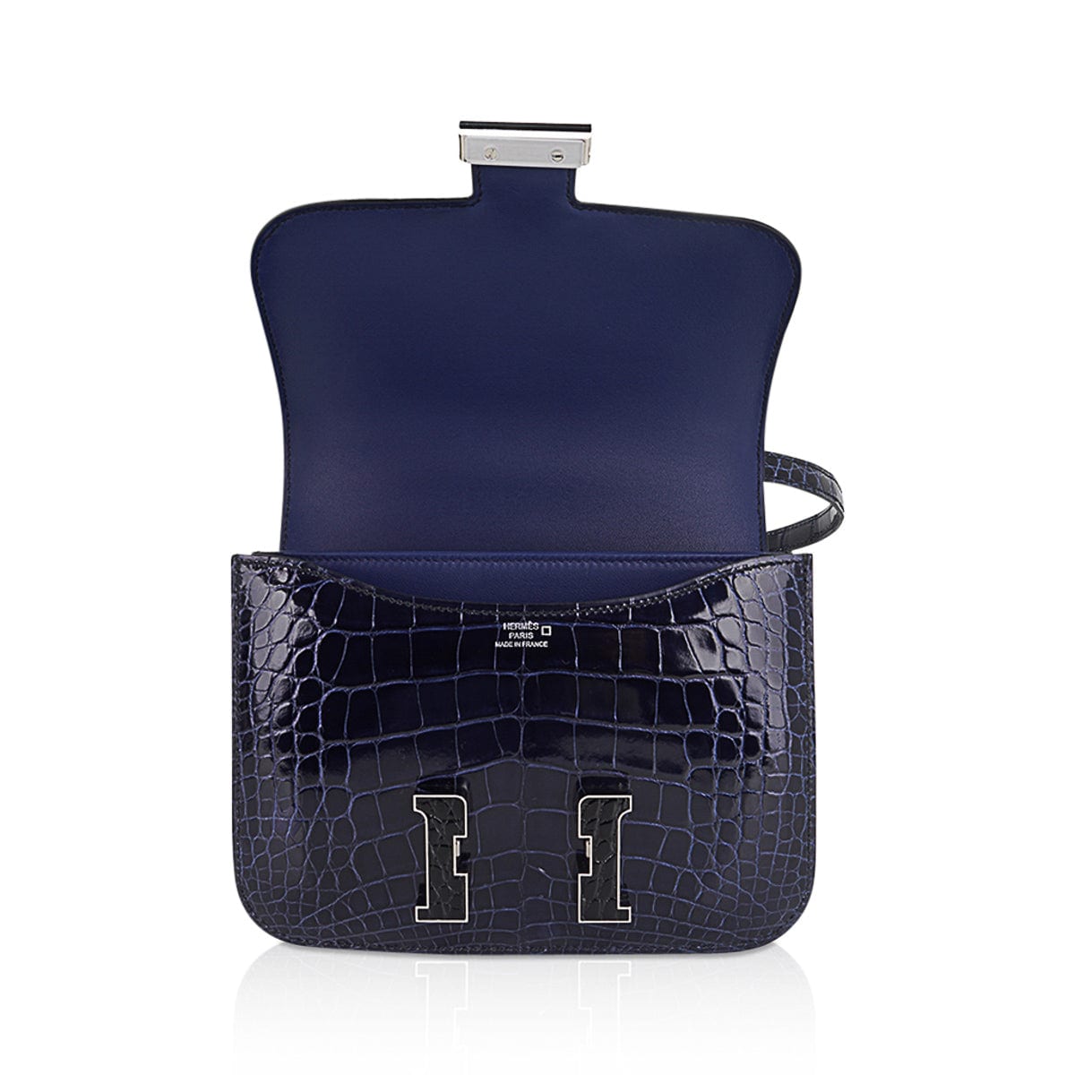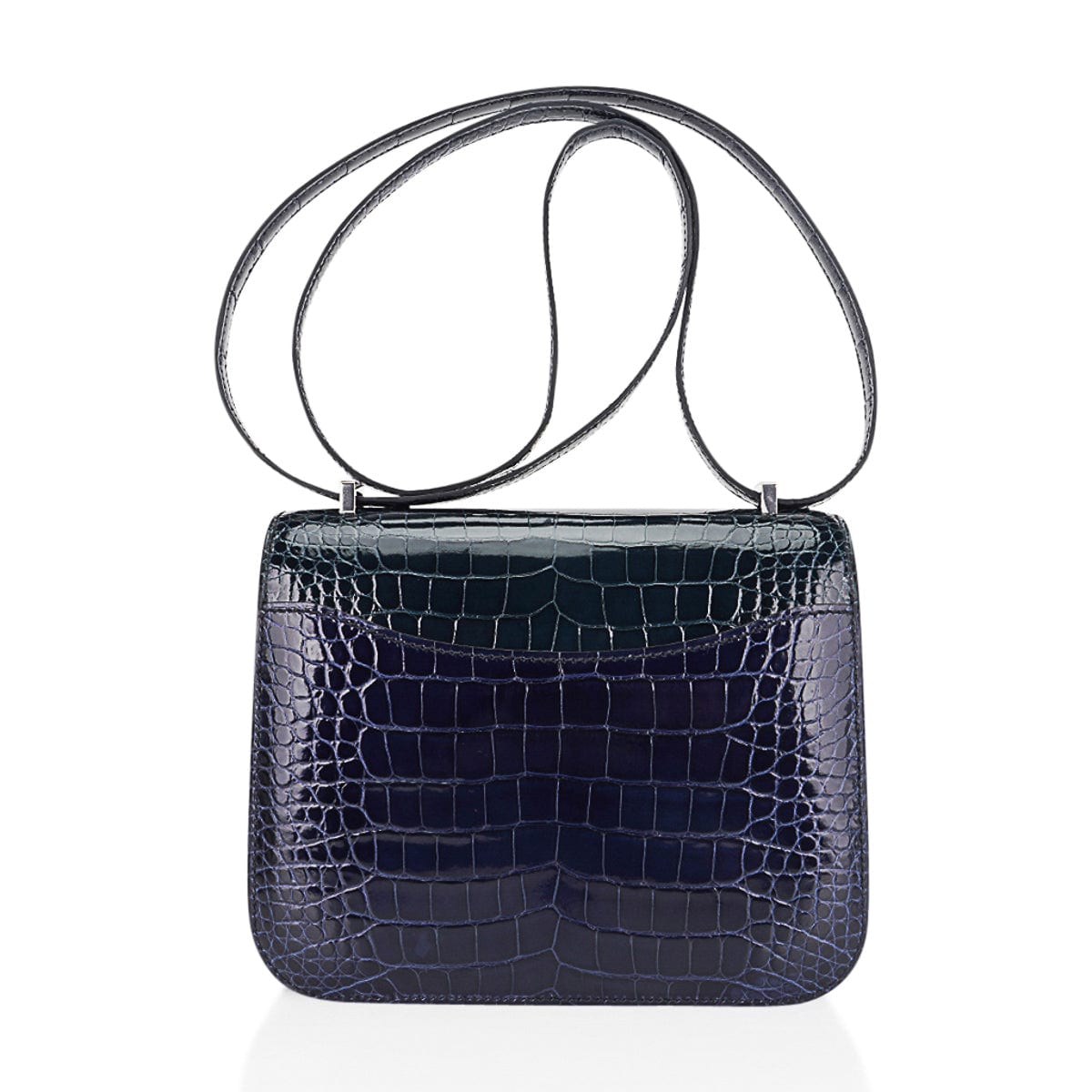 Coveted Hermes Constance 18 limited edition tri-color bag featured in Bleu Sapphire, Vert Rousseau lisse Alligator.
