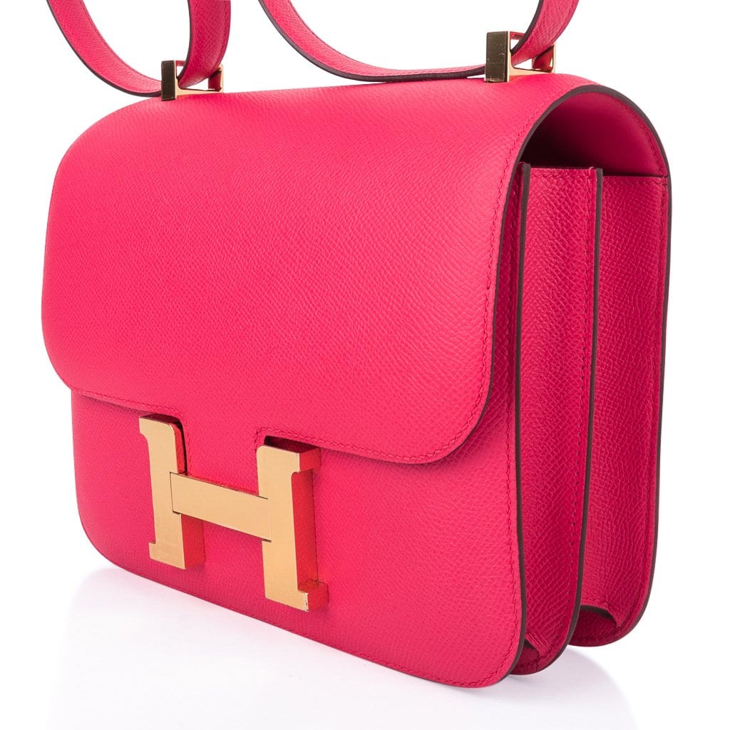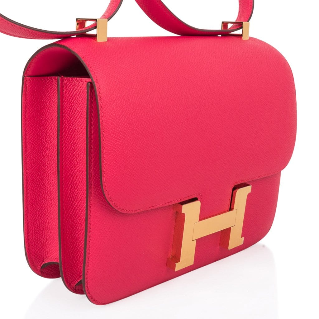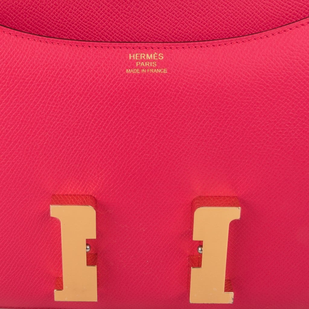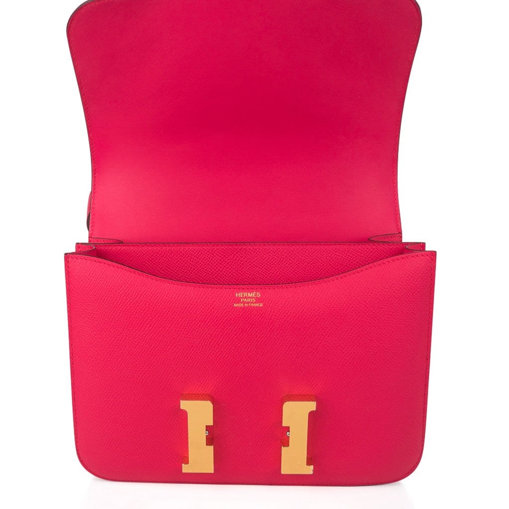 Guaranteed authentic Hermes Constance 24 bag features rich Rose Extreme in Epsom leather.