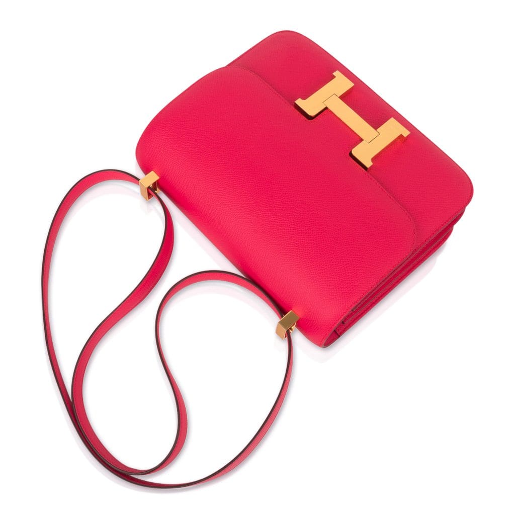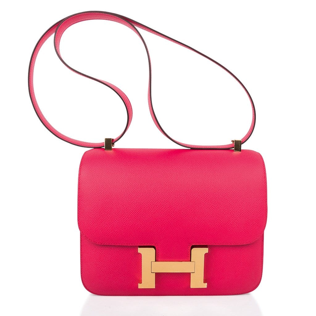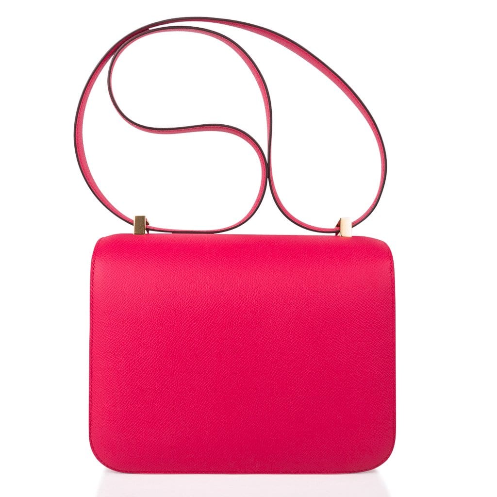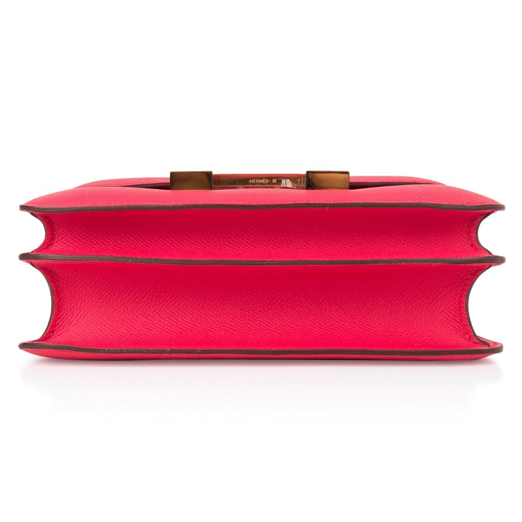 Guaranteed authentic Hermes Constance 24 bag features rich Rose Extreme in Epsom leather.