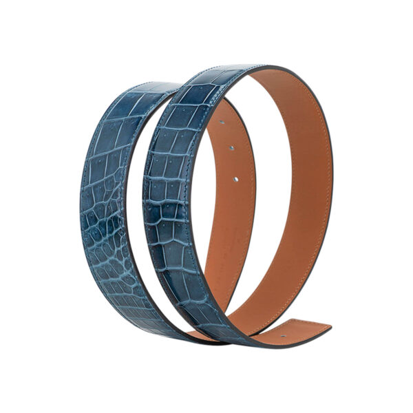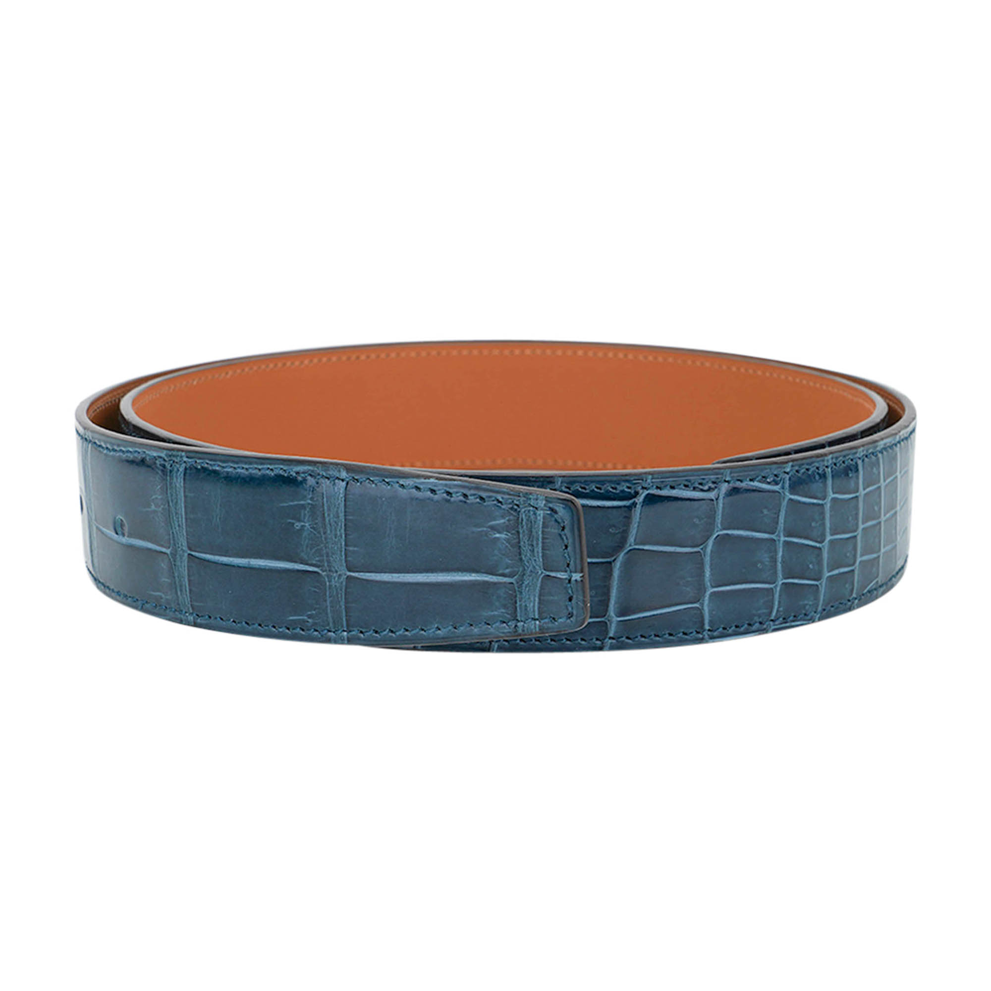 The Hermès Constance 32 mm belt strap in Blue Colvert Porosus Crocodile is both chic and versatile.