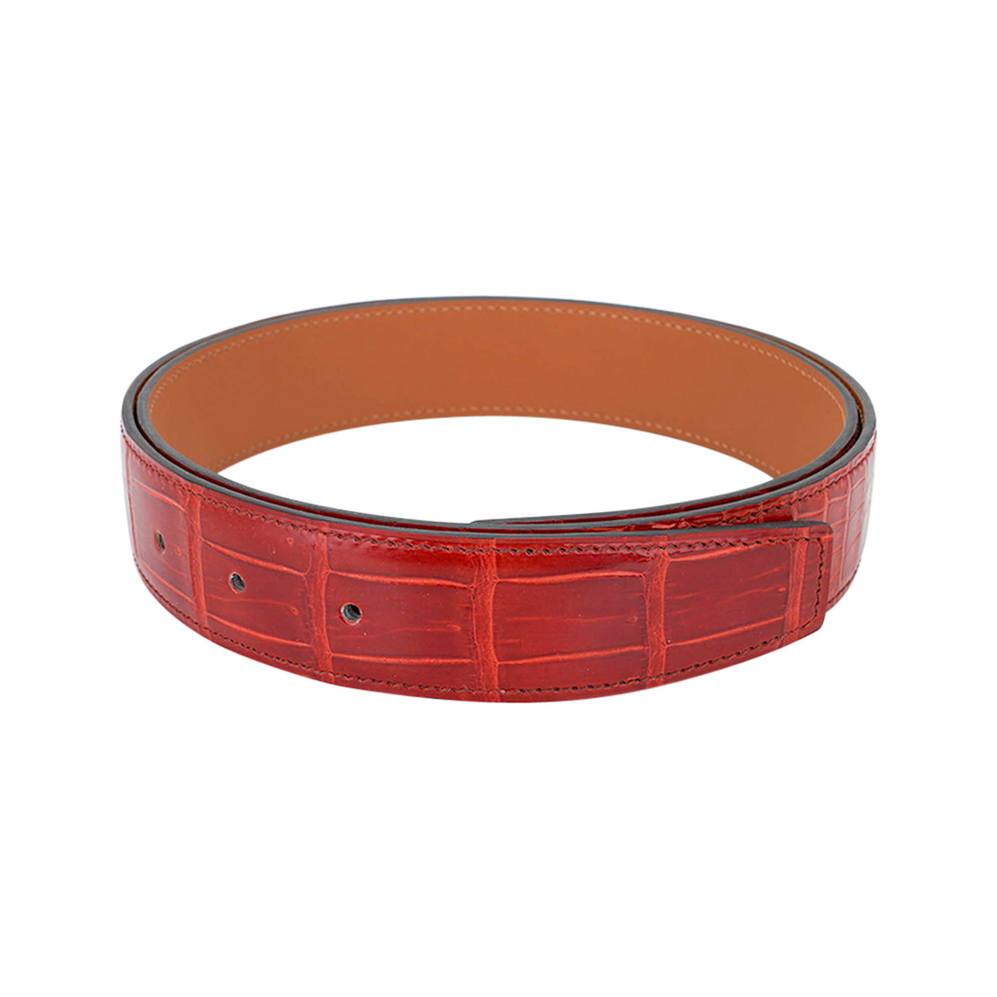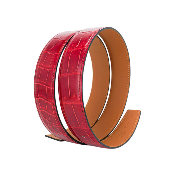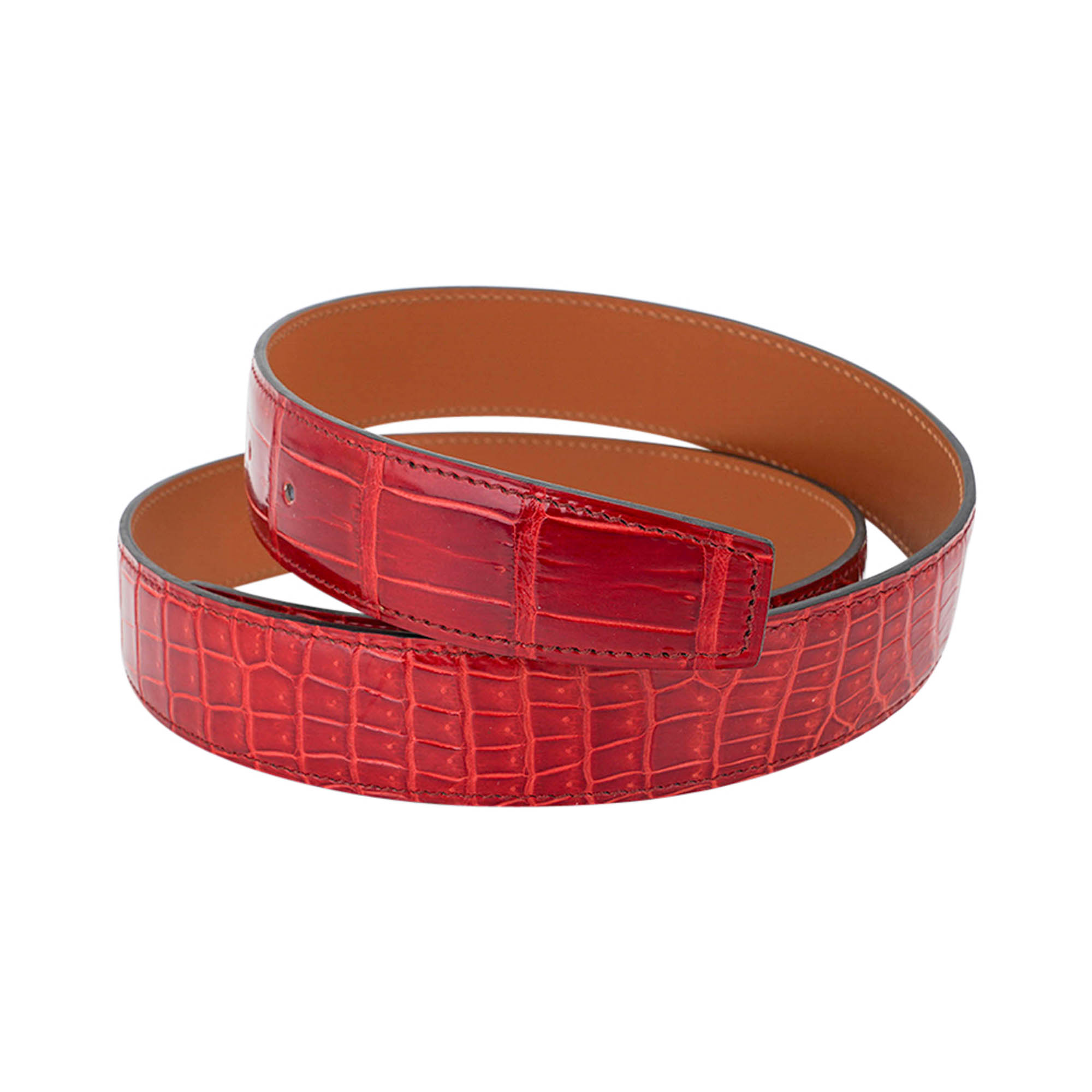 The Hermès Constance 32 mm belt strap in Sanguine Porosus Crocodile is a rare and collectible piece.