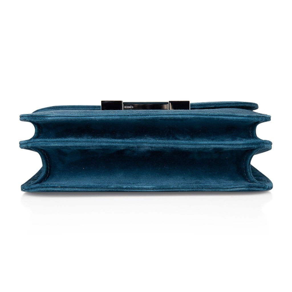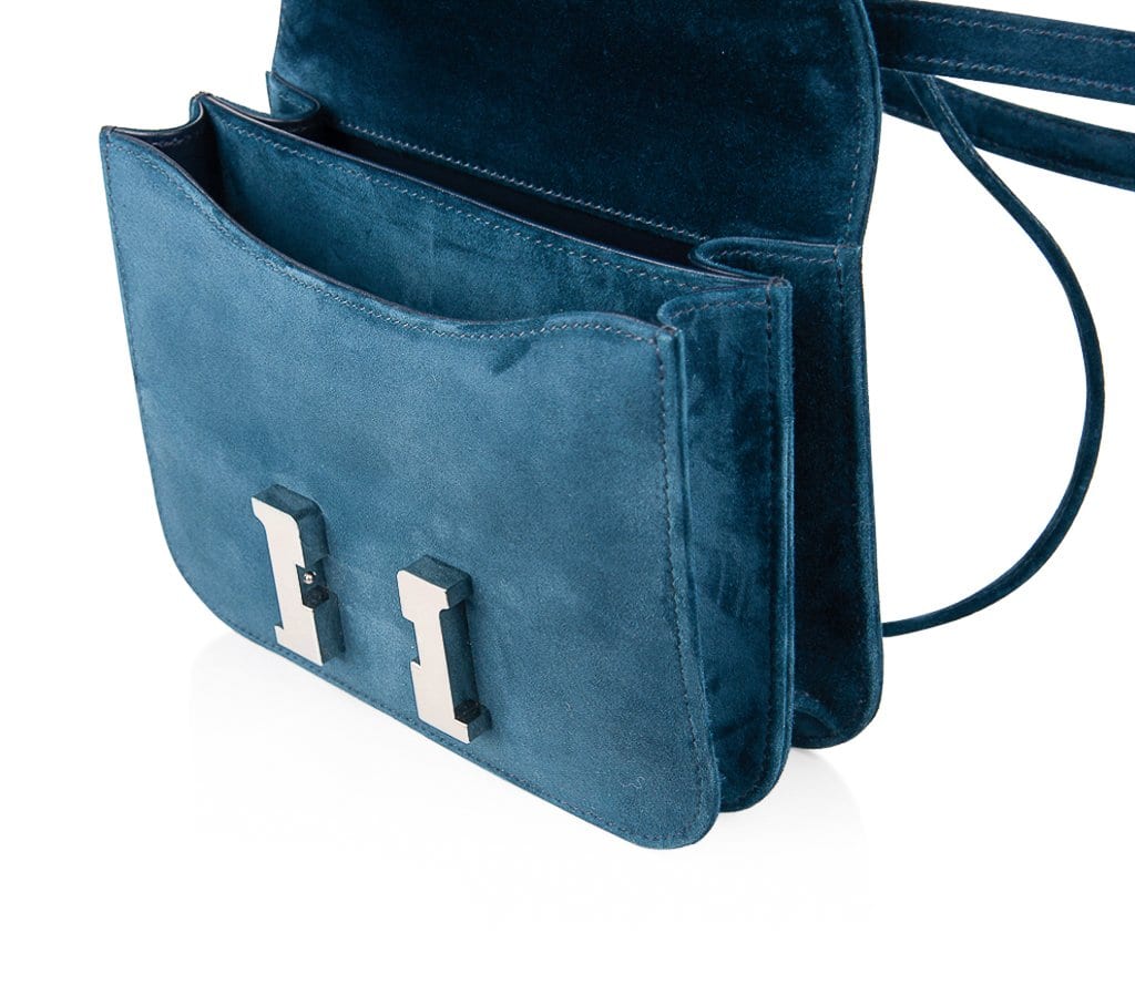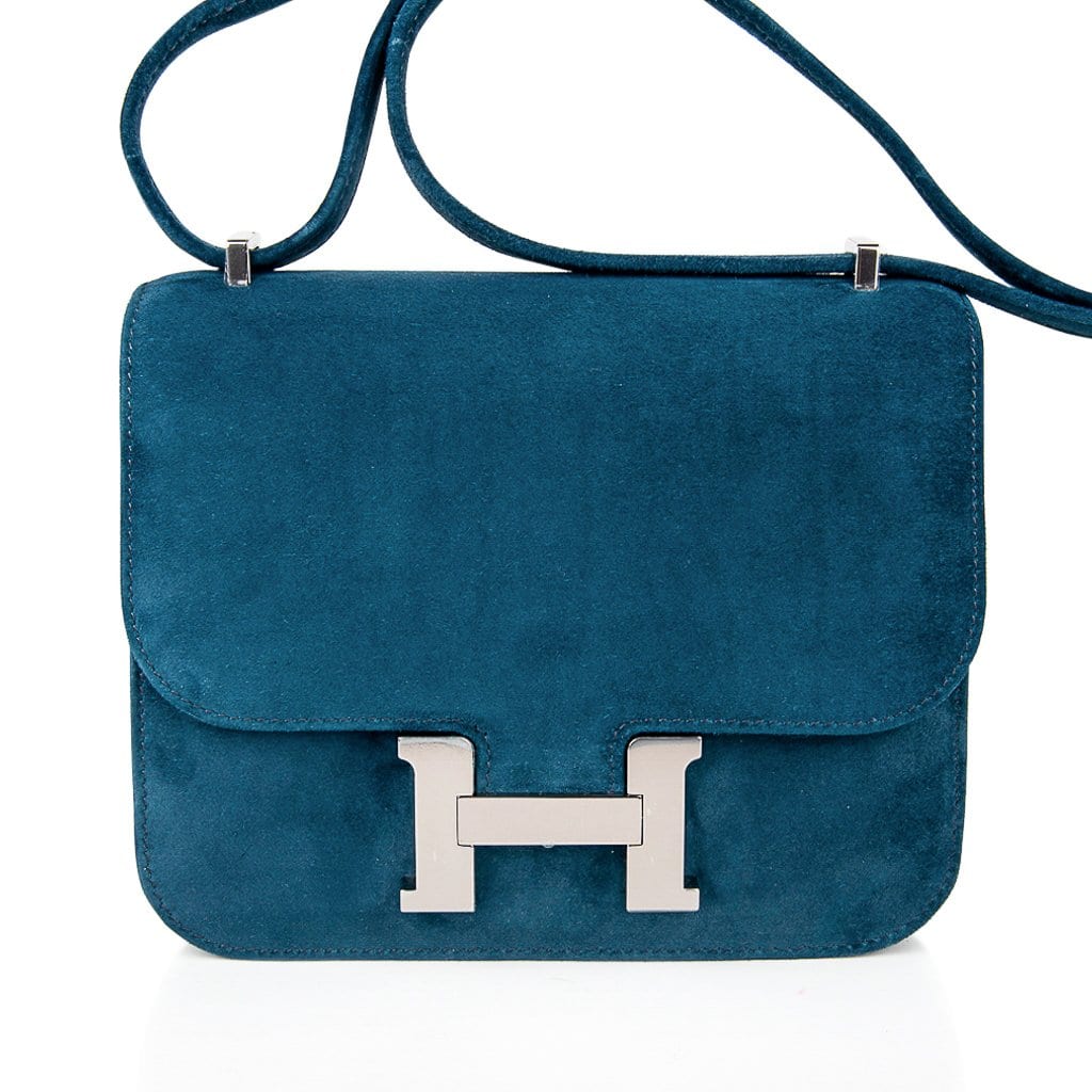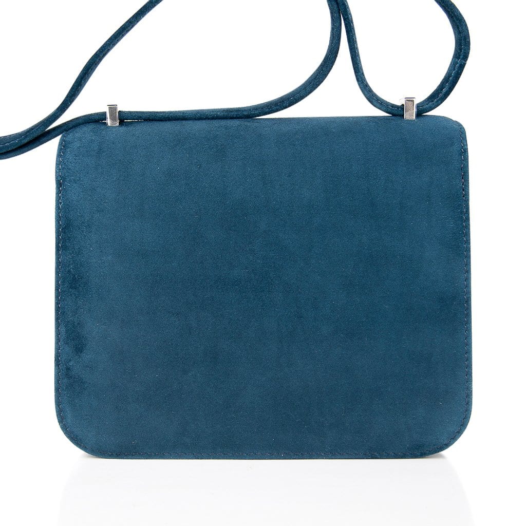 Guaranteed authentic exquisite limited edition Hermes coveted Doblis (suede) bag features the Constance Mini in Blue Ocean.