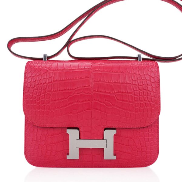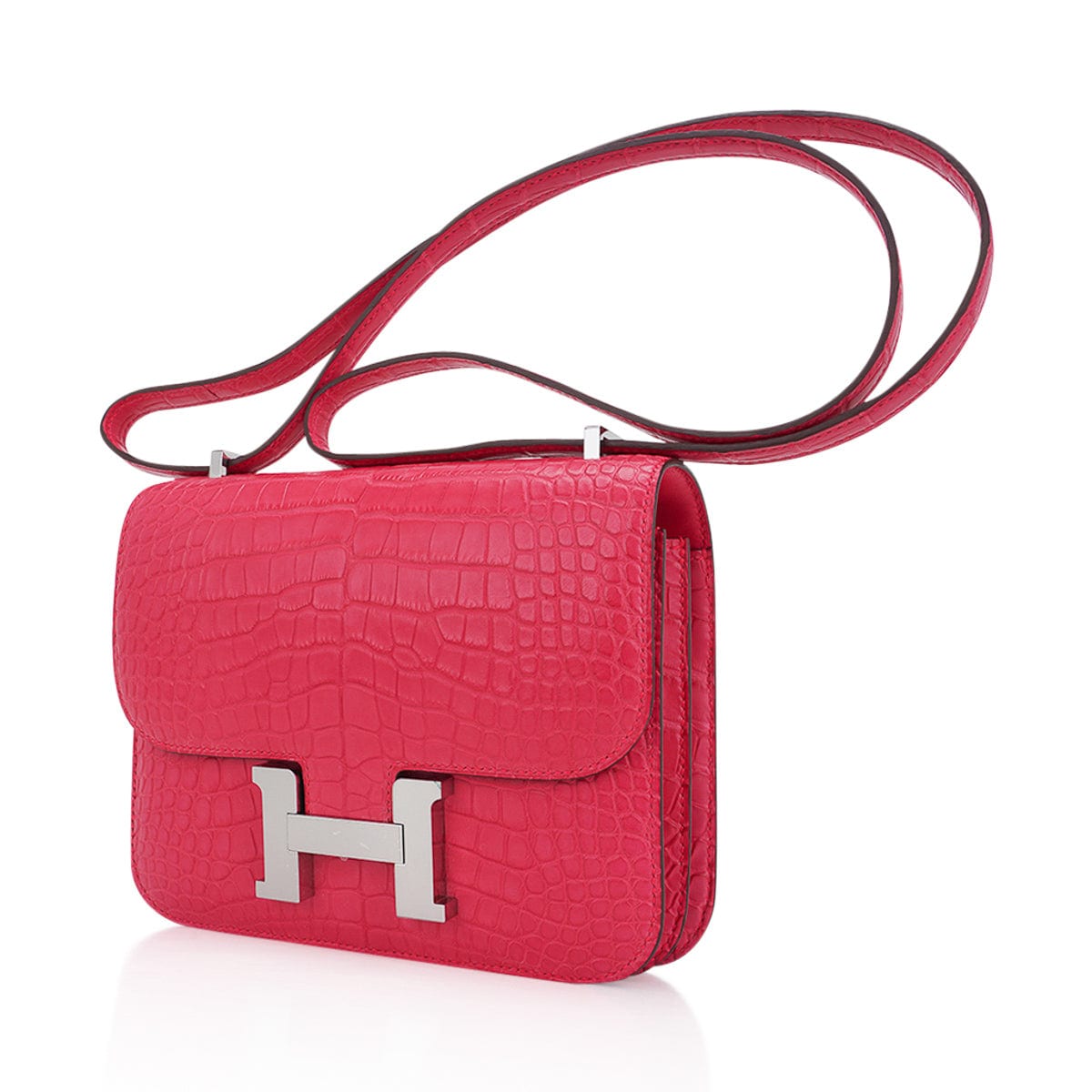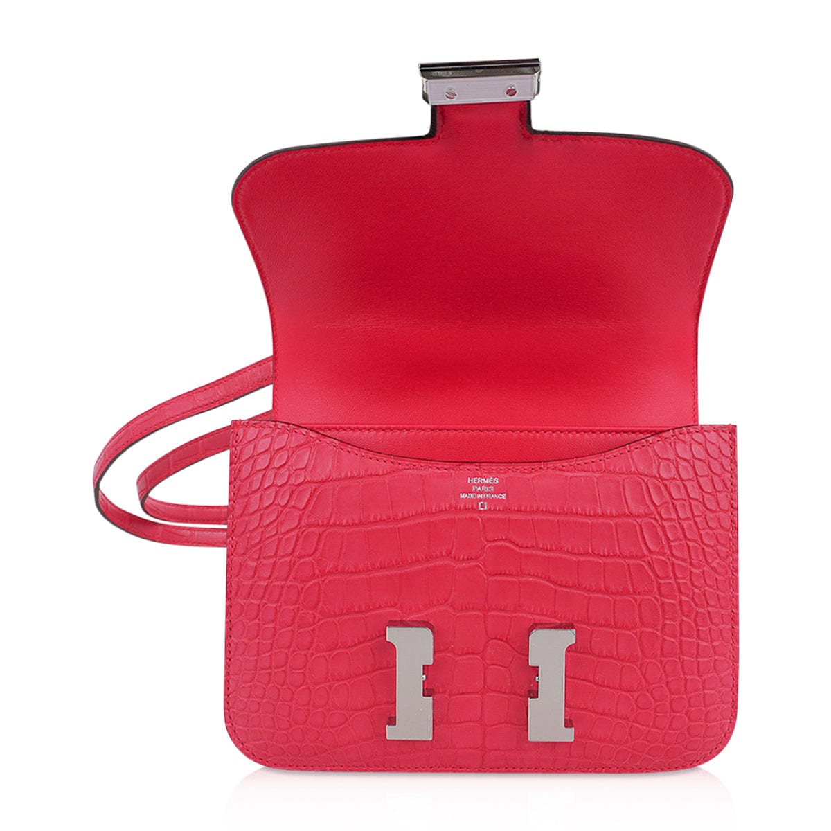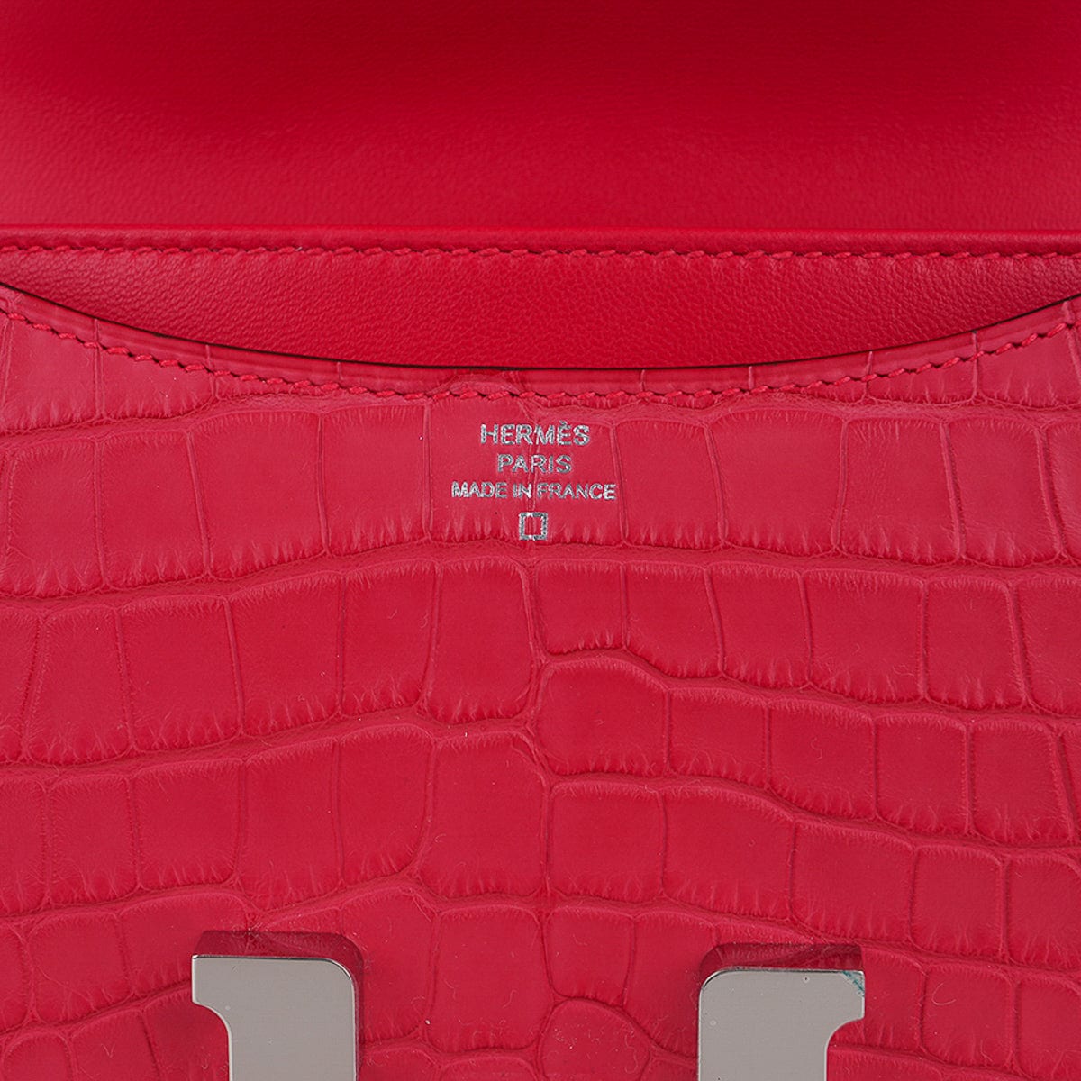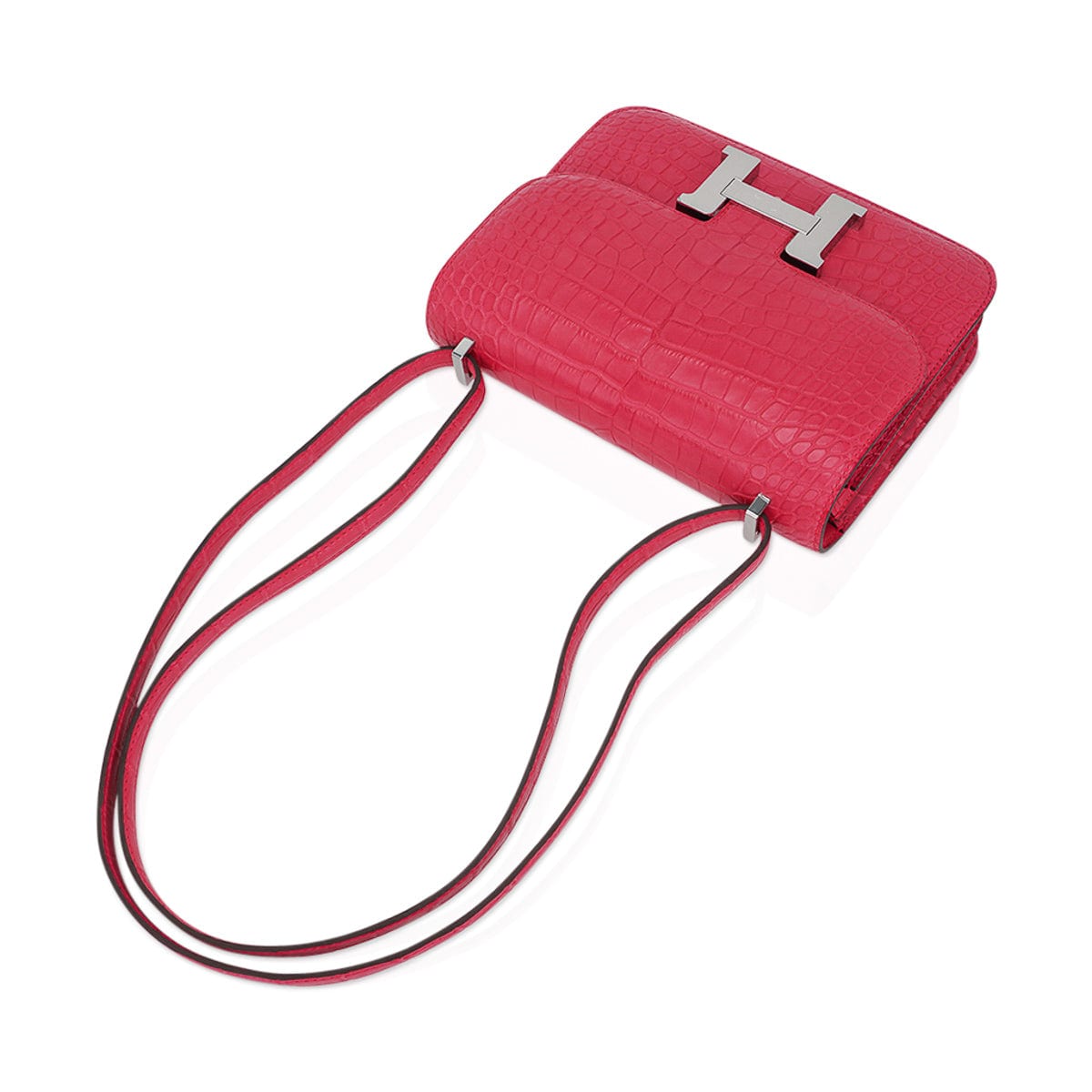 Guaranteed authentic Hermes 18 Constance in richly saturated Rose Extreme Matte Alligator.