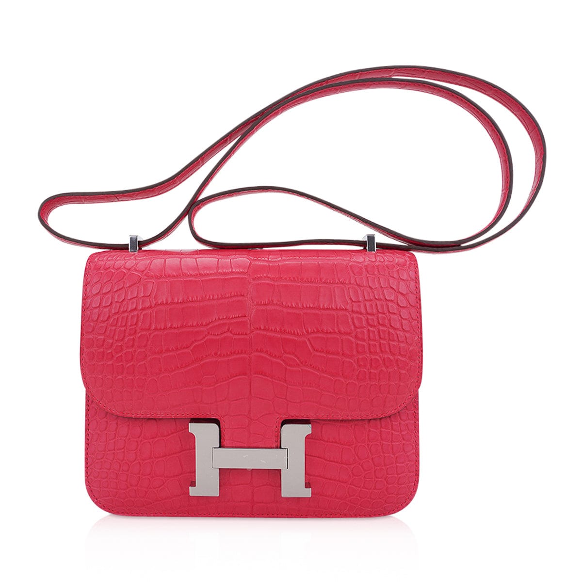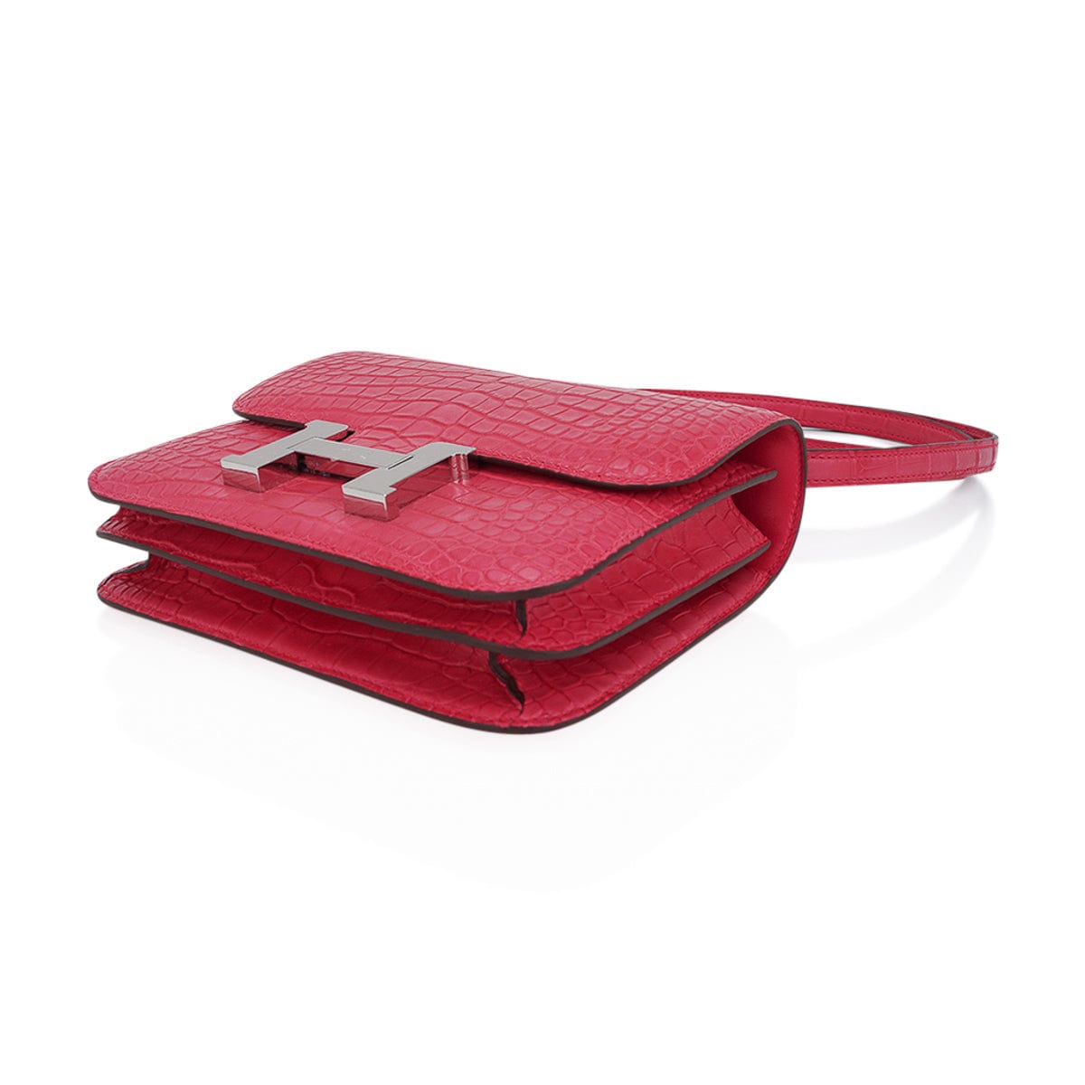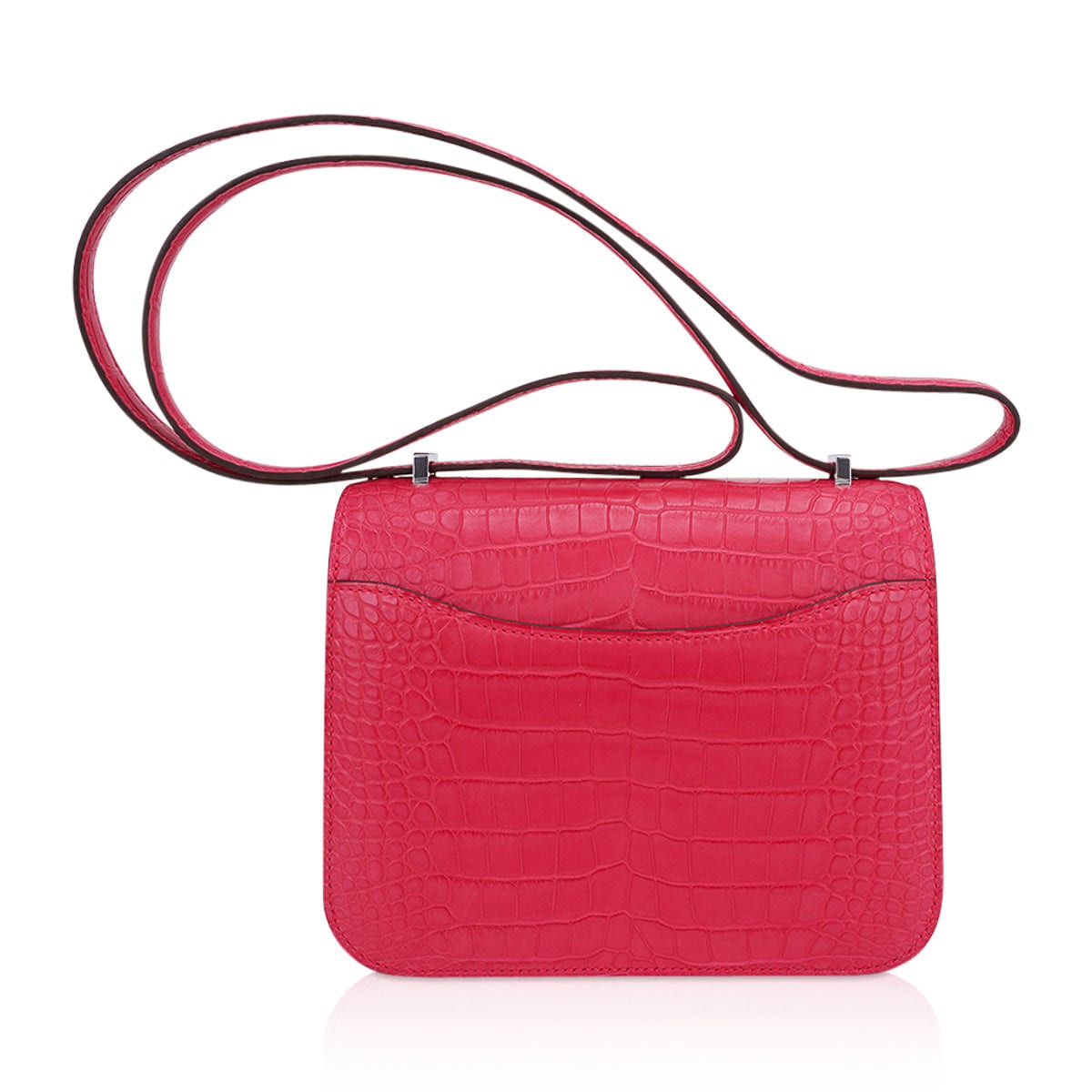Guaranteed authentic Hermes 18 Constance in richly saturated Rose Extreme Matte Alligator.