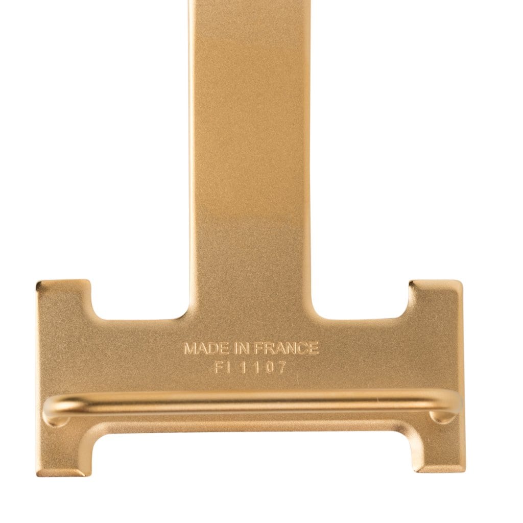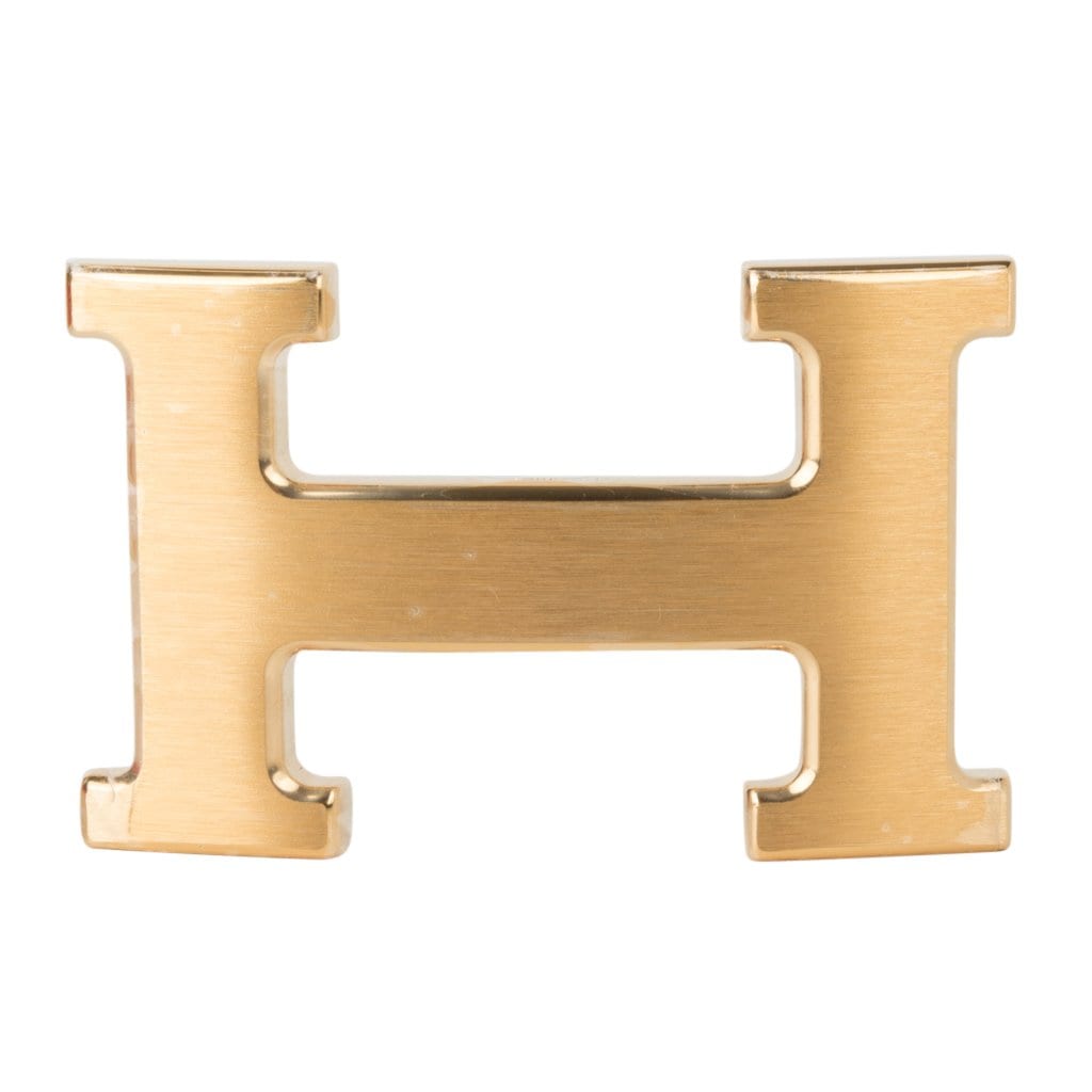 Rich with brushed gold signature H buckle.