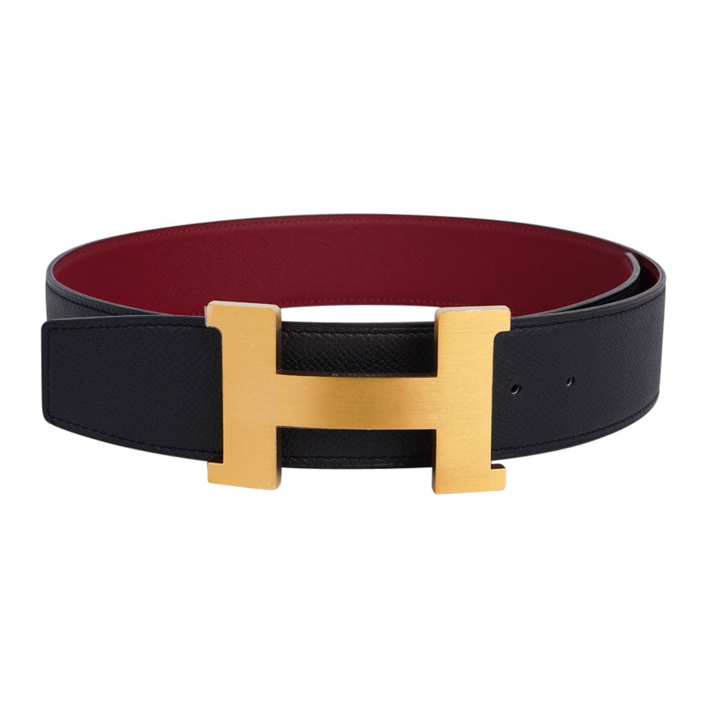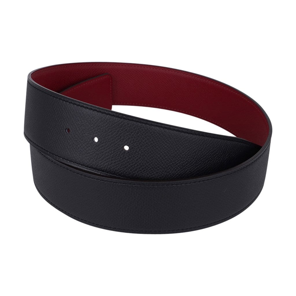 Guaranteed authentic Hermes Constance 42 mm belt featured in reversible Black to Red Epsom leather.
