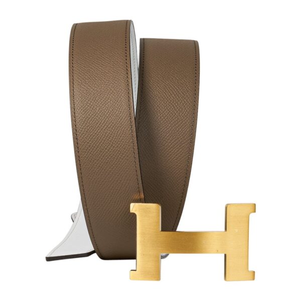 Hermes Constance Belt 42 MM Etoupe and White with Brushed Gold Buckle 105